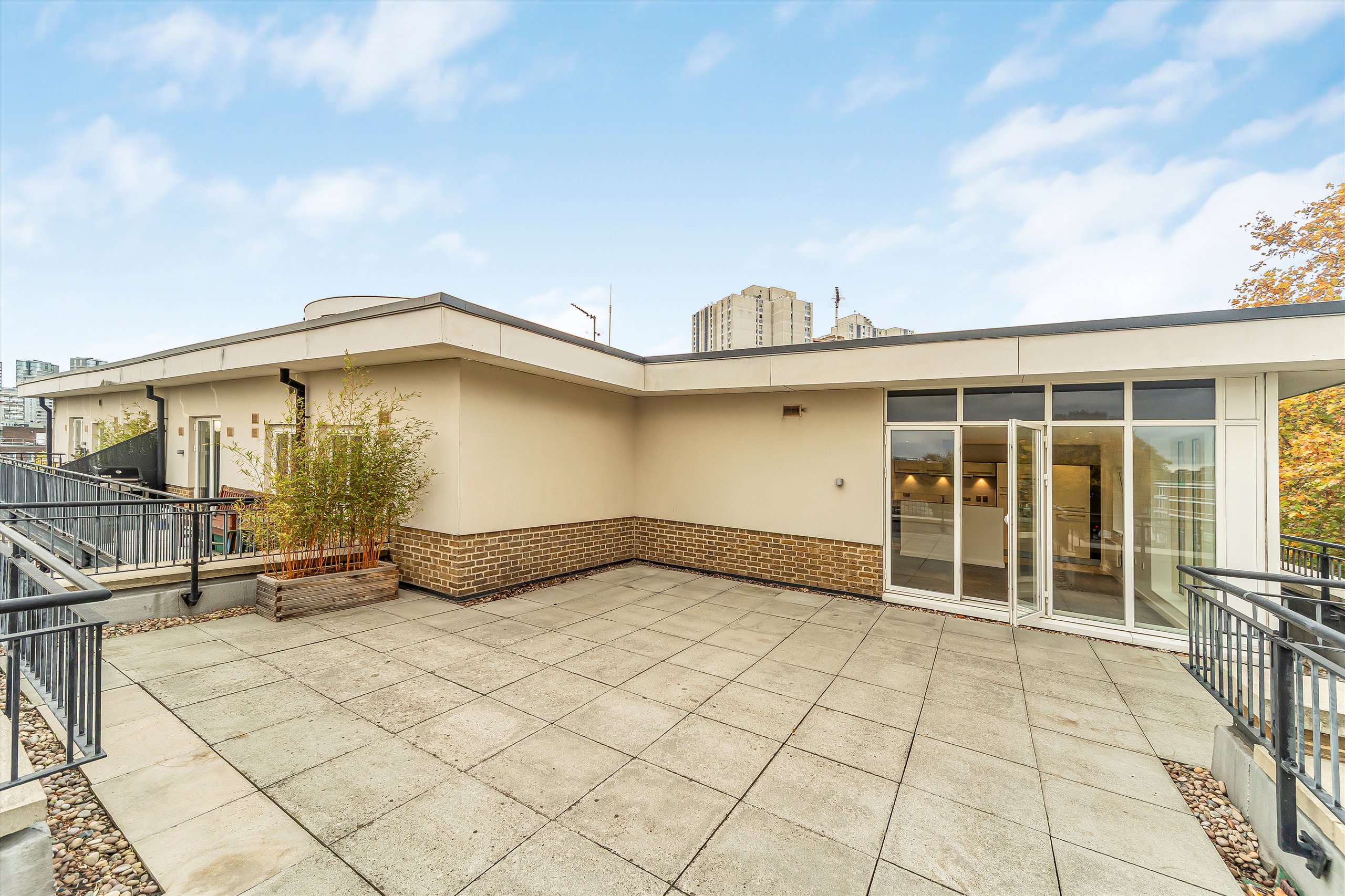 The property offers a spacious open plan reception room and kitchen that opens directly onto a large roof terrace, providing an ideal space for relaxing and entertaining.