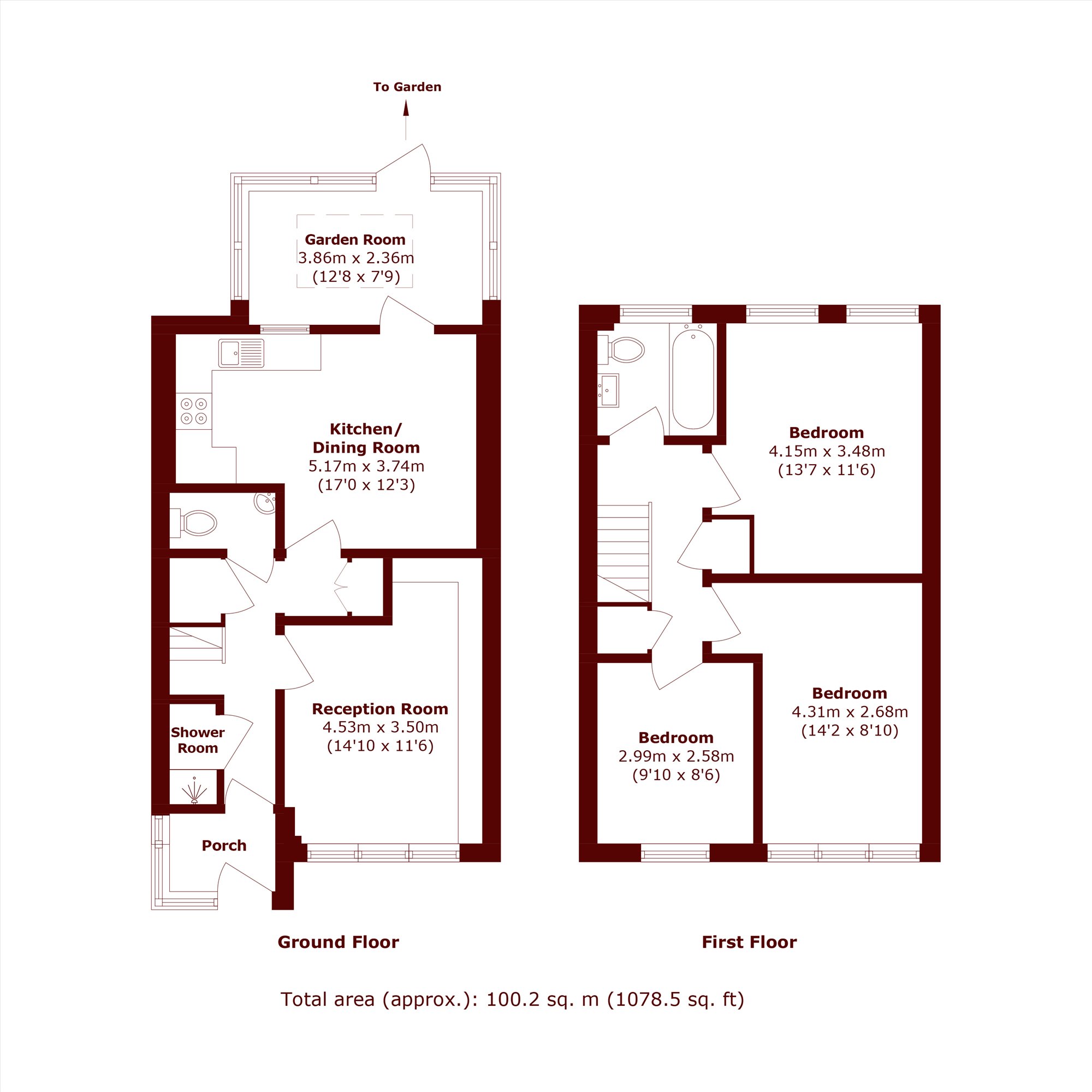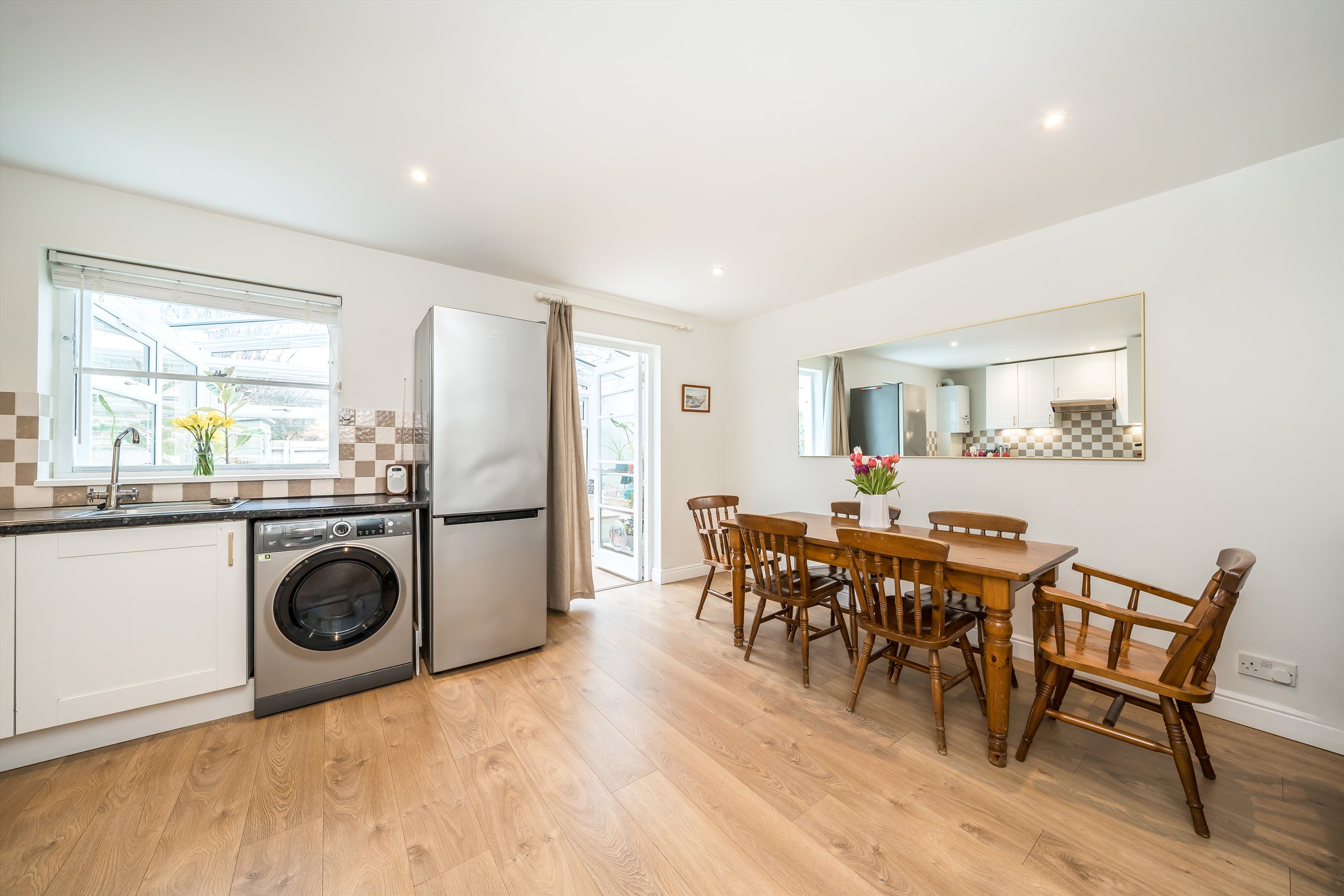 The ground floor comprises an elegant reception room, alongside a generous eat-in kitchen and dining area. The kitchen opens into a bright garden room, with direct access to a private rear garden. The property provides three well proportioned bedrooms and a modern family bathroom.