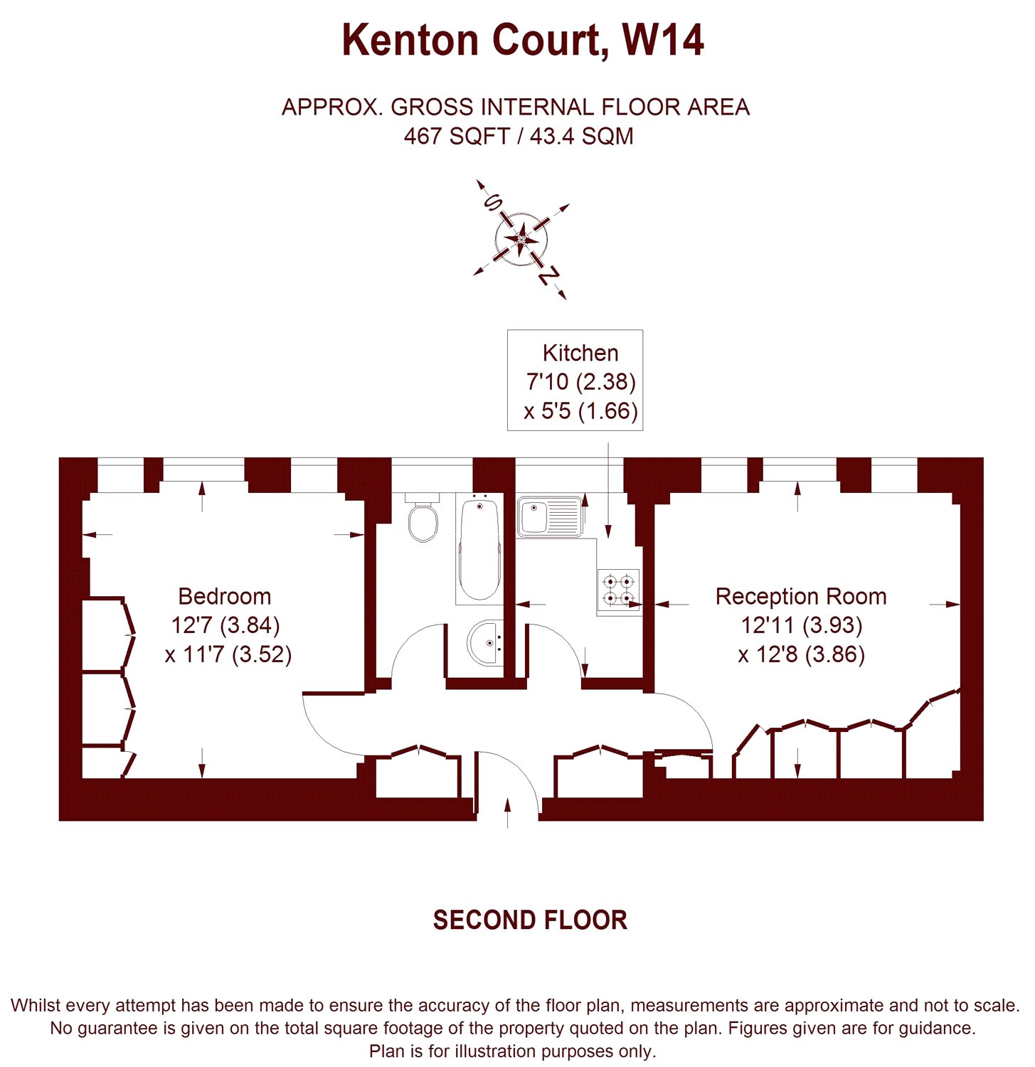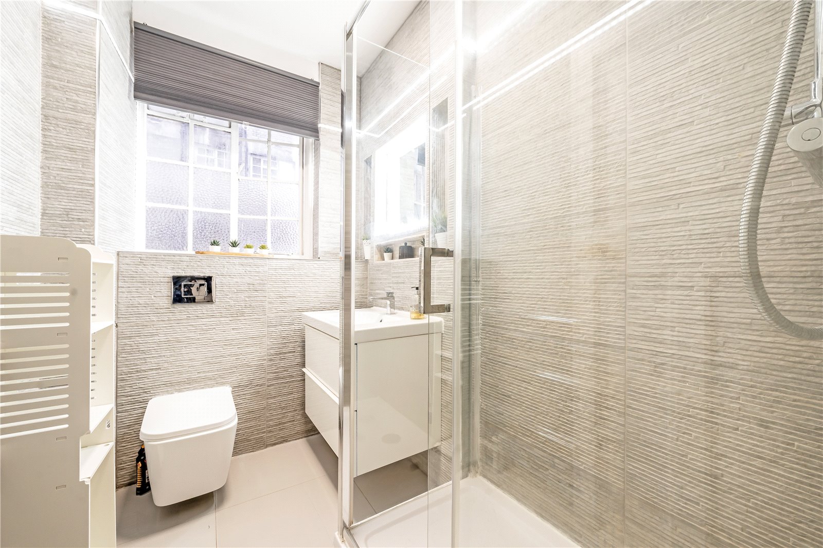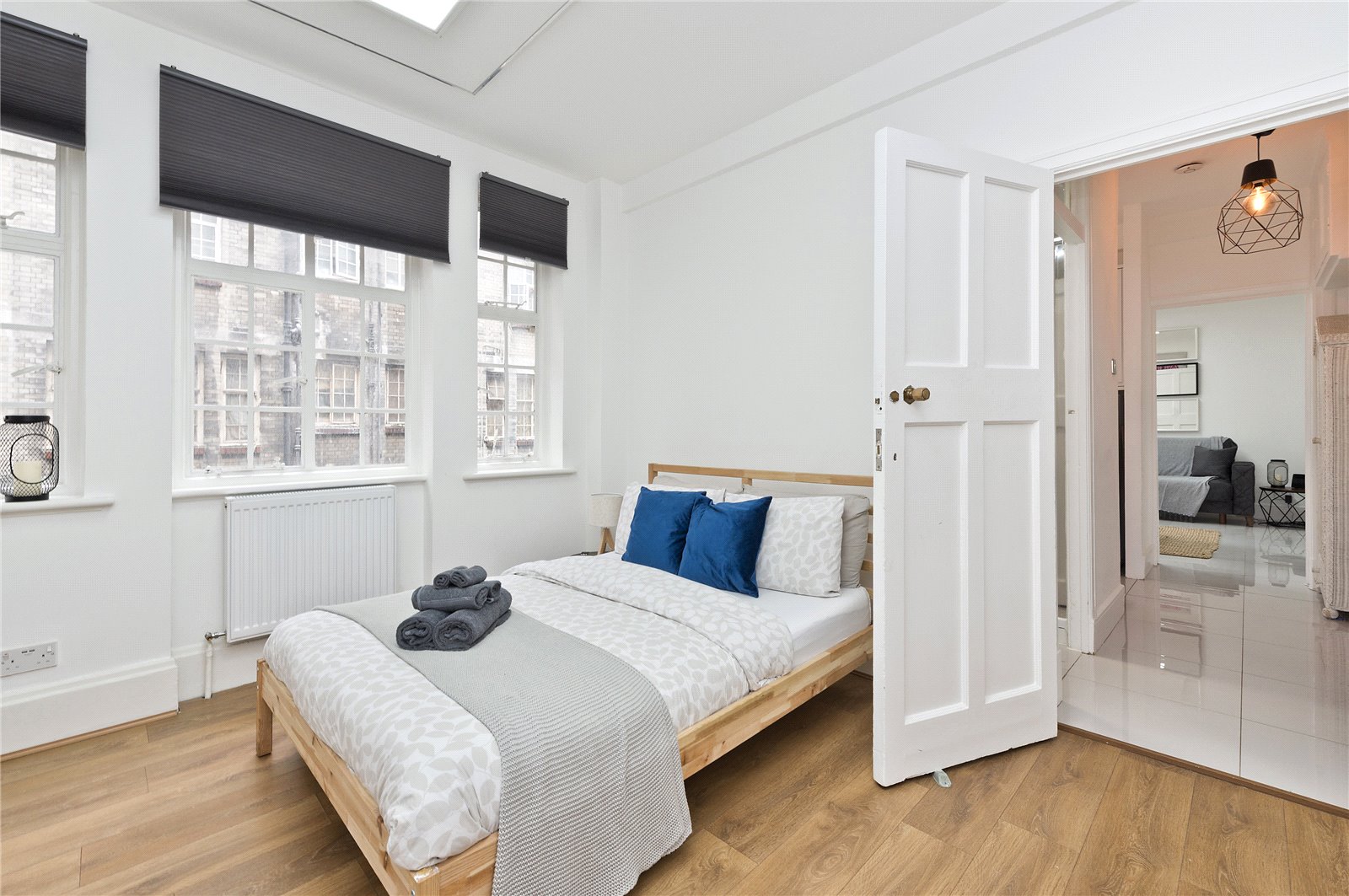 The apartment is wonderfully bright and has a separate kitchen and reception room with views over London. There is a large bedroom with excellent storage and a contemporary bathroom.