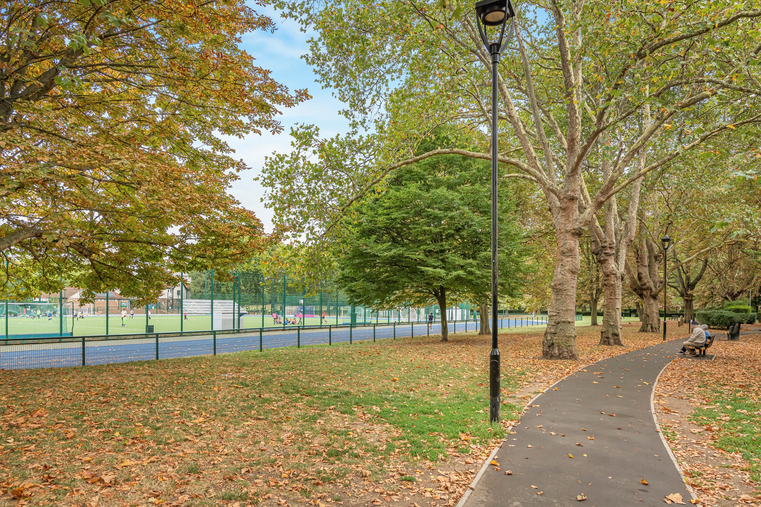 A delightful one-bedroom flat and modern comfort in a beautiful period mansion block, with peaceful views overlooking the park. An inviting open-plan reception, thoughtfully laid out for both living and dining. The fully fitted kitchen offers style and functionality.The bay-fronted bedroom features built-in wardrobes, providing practical storage. A sleek, modern bathroom completes the home with contemporary flair.