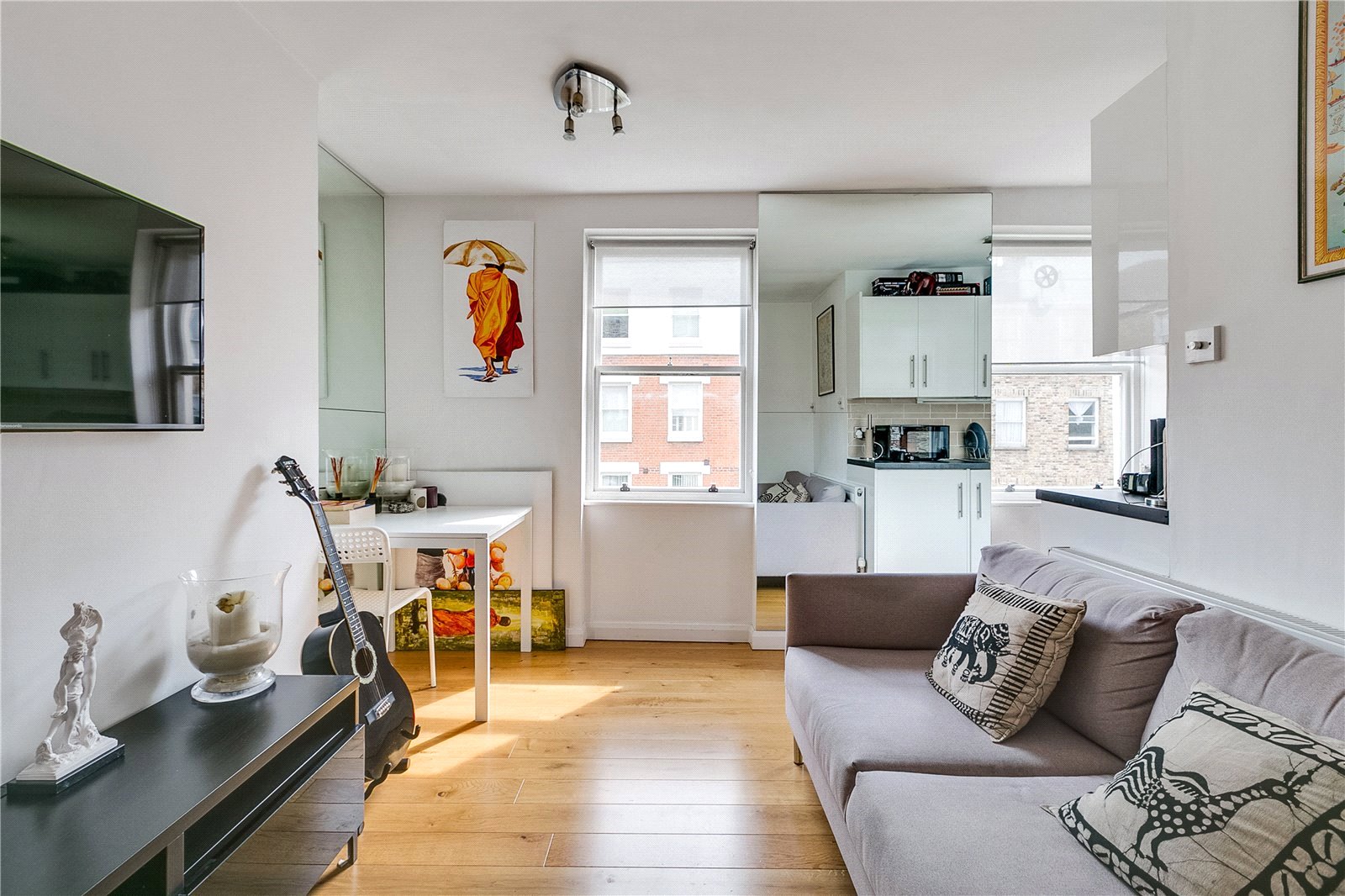 This gorgeous one-bedroom property is located on the second floor of this period building close to Marylebone station. The flat boasts a good size double bedroom with built-in storage. Enough space for a work station, a modern bathroom and a bright open-plan kitchen living room. The flat is well decorated throughout and has high end appliances, fixtures and fittings.