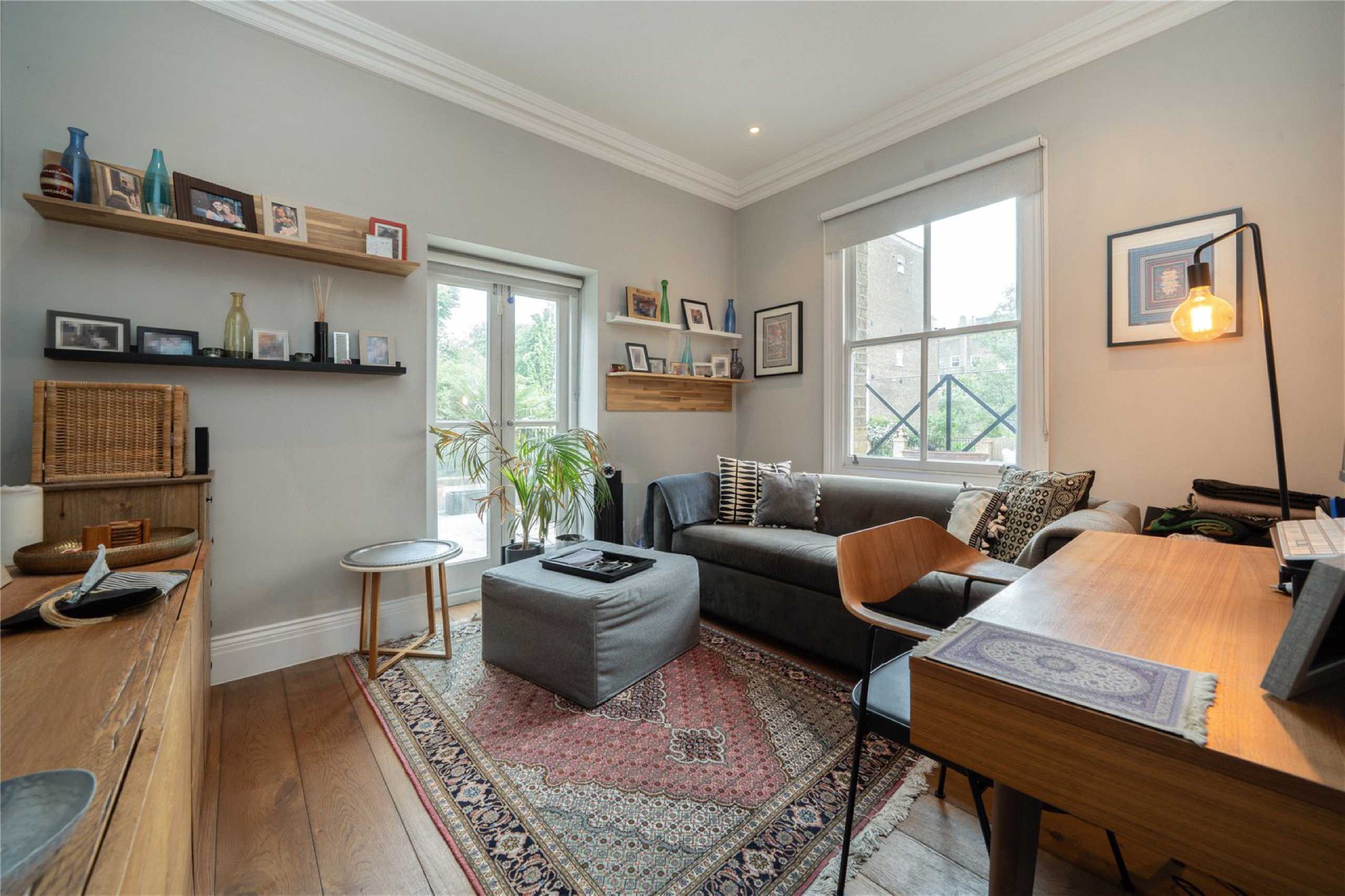 This raised ground floor apartment in a period building on Ladbroke Grove offers bright, spacious interiors, two bedrooms, and a large private terrace just moments from Portobello Road and Westbourne Grove.