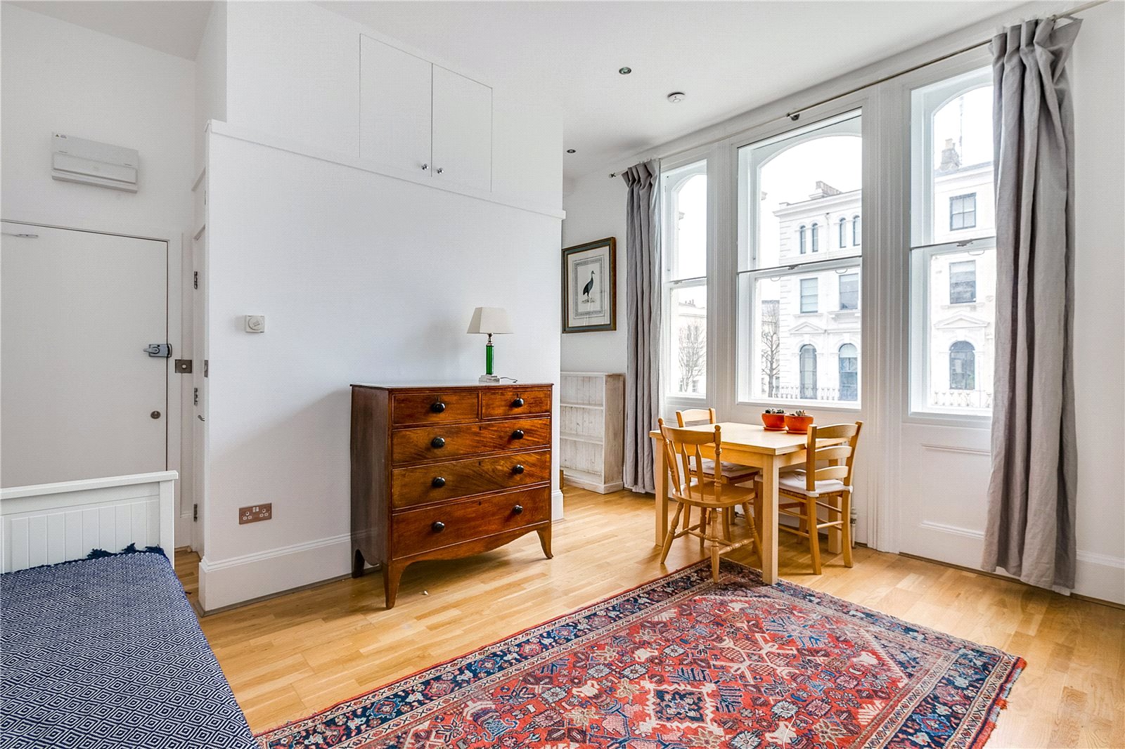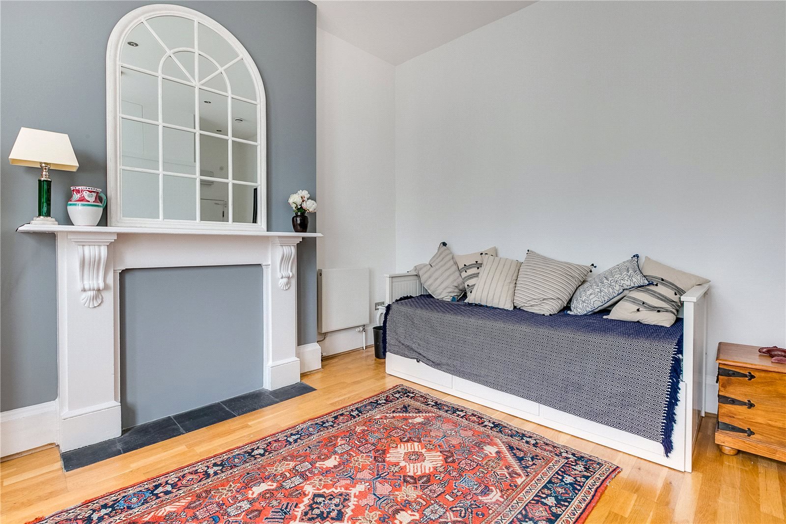 Boasting high ceilings and a bright southerly aspect, the accommodation features open plan reception/dining space with a beautiful cast iron fireplace and large windows. The well-appointed kitchen is semi separate and provides access to the balcony. There is also a smartly designed mezzanine level which can be used as a sleeping area, and a bathroom.
