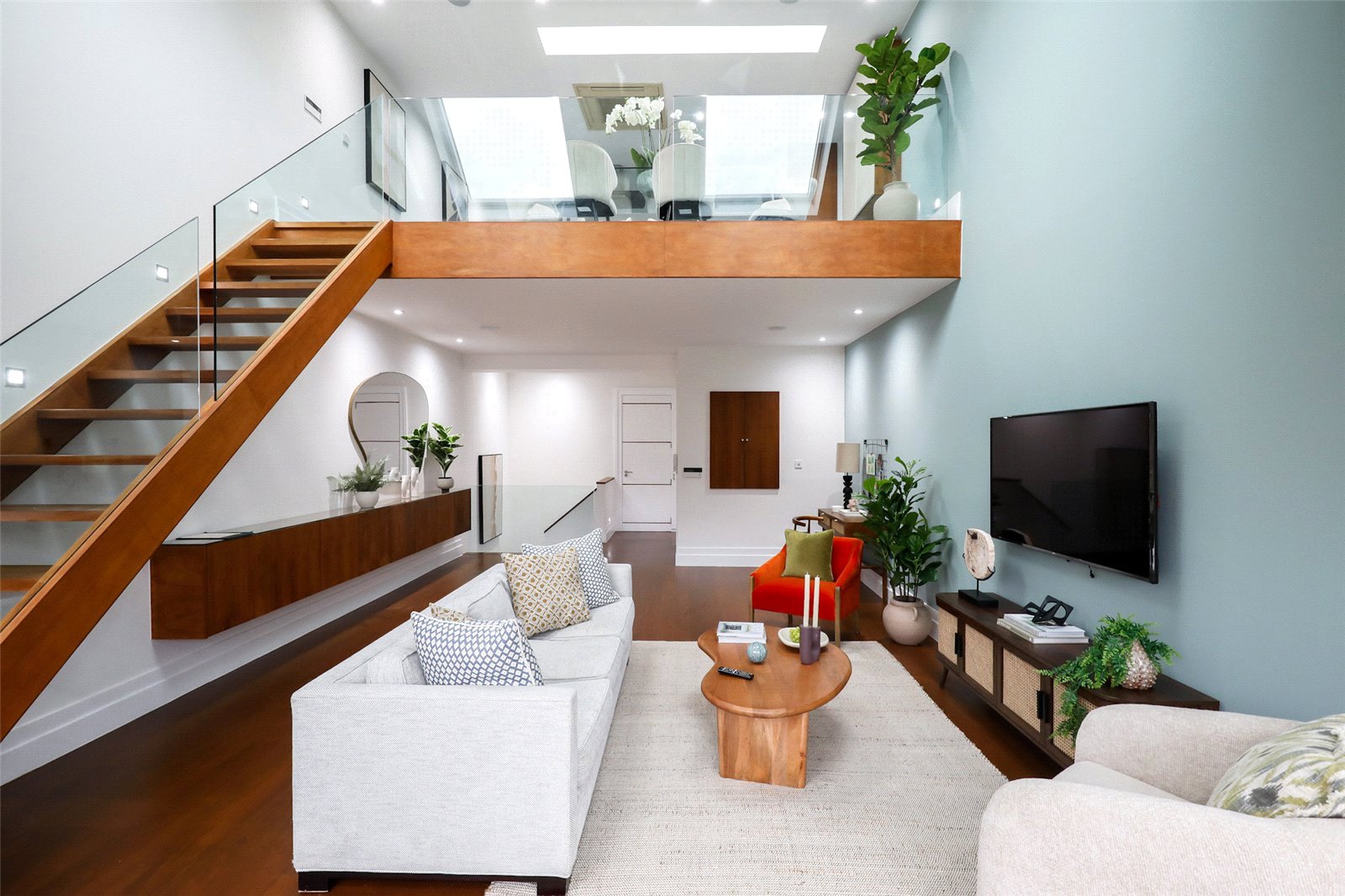 A very stylish two-bedroom penthouse apartment arranged over three floors, with a south facing balcony and underground parking. A very stylish two-bedroom penthouse apartment arranged over three floors, with a south facing balcony and underground parking. Benefiting from fantastic light and space throughout, this wonderful apartment boasts floor to ceiling windows and sky lights flooding light into the impressive reception room and separate kitchen/dining room.