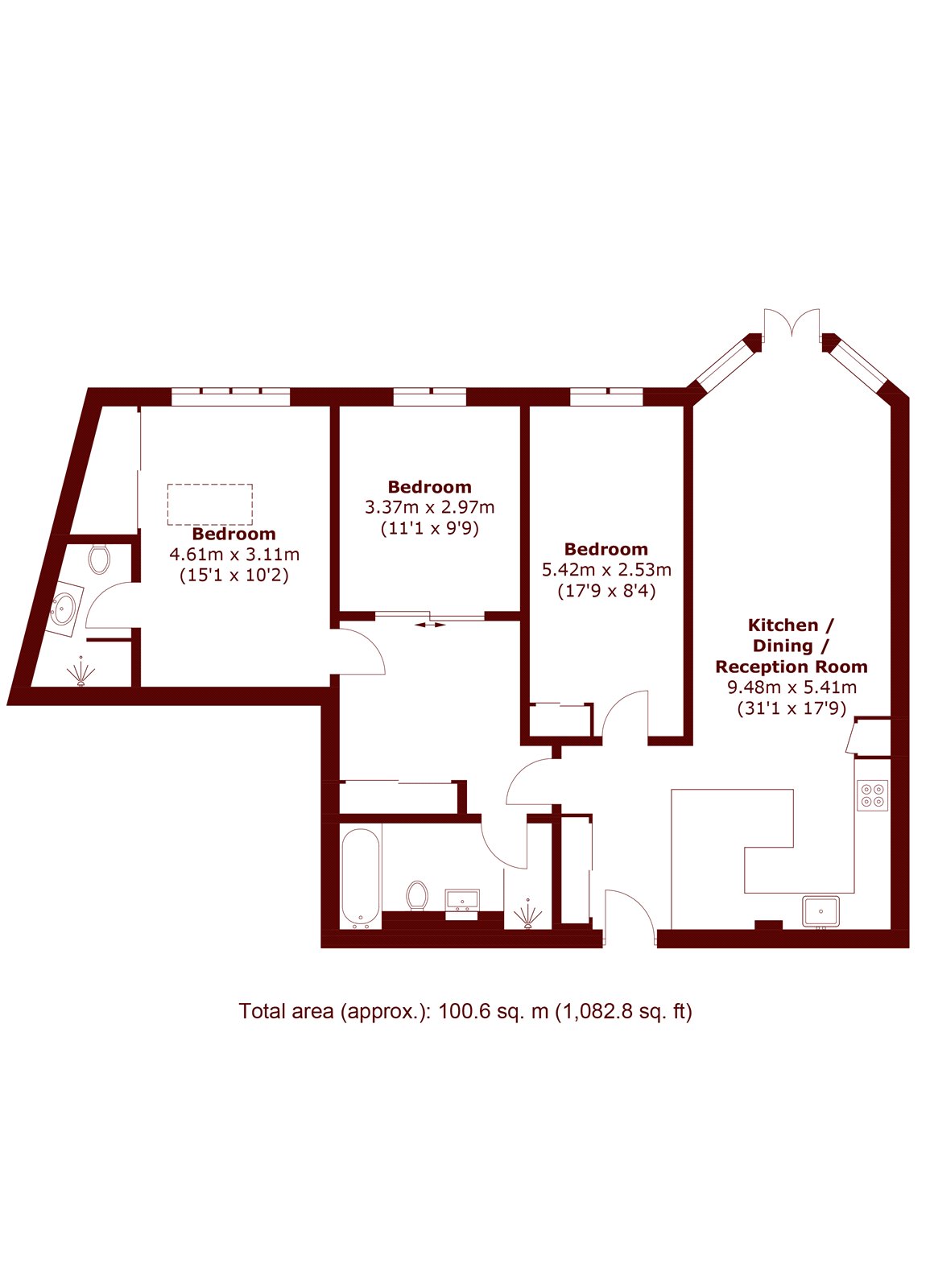 Set in a secure modern development is this three double bedroom ground floor flat in close proximity to Queen's Park. The property presents an open plan fully integrated kitchen with a breakfast bar and reception room leading through french doors onto the private patio and decked garden, with the communal gardens beyond.