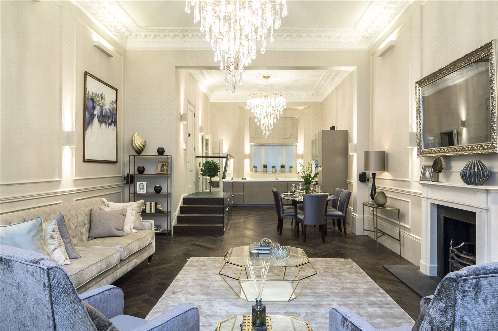 In the heart of South Kensington, close to the Royal Albert Hall, Hyde Park and the Victoria & Albert Museum sits Queen's Gate Place. An elegant residential address with Victorian period properties, grand in proportions and with plenty of kerb appeal. This grade II listed, three bedroom apartment has been completely refurbished throughout, retaining its traditional period features yet benefitting from the luxuries and comforts of a modern contemporary home. The extravagant reception room has four metre high ceilings with restored cornicing. The kitchen is state of the art and there is a bespoke wine room that maintains the optimum temperature and humidity for any wine collection. The master suite has excellent built-in storage, silk wall coverings and bespoke marble walls in the en suite bathroom. There are two further guest suites, both of which have a luxury feel and built-in storage as well as en suite bathrooms. The entire property has a top of the range home automation system with Cat 6 cabling. A truly magnificent Prime Central London property with excellent access to the surrounding neighbourhoods of Kensington, Knightsbridge and Chelsea. The closest Underground can be found at South Kensington.