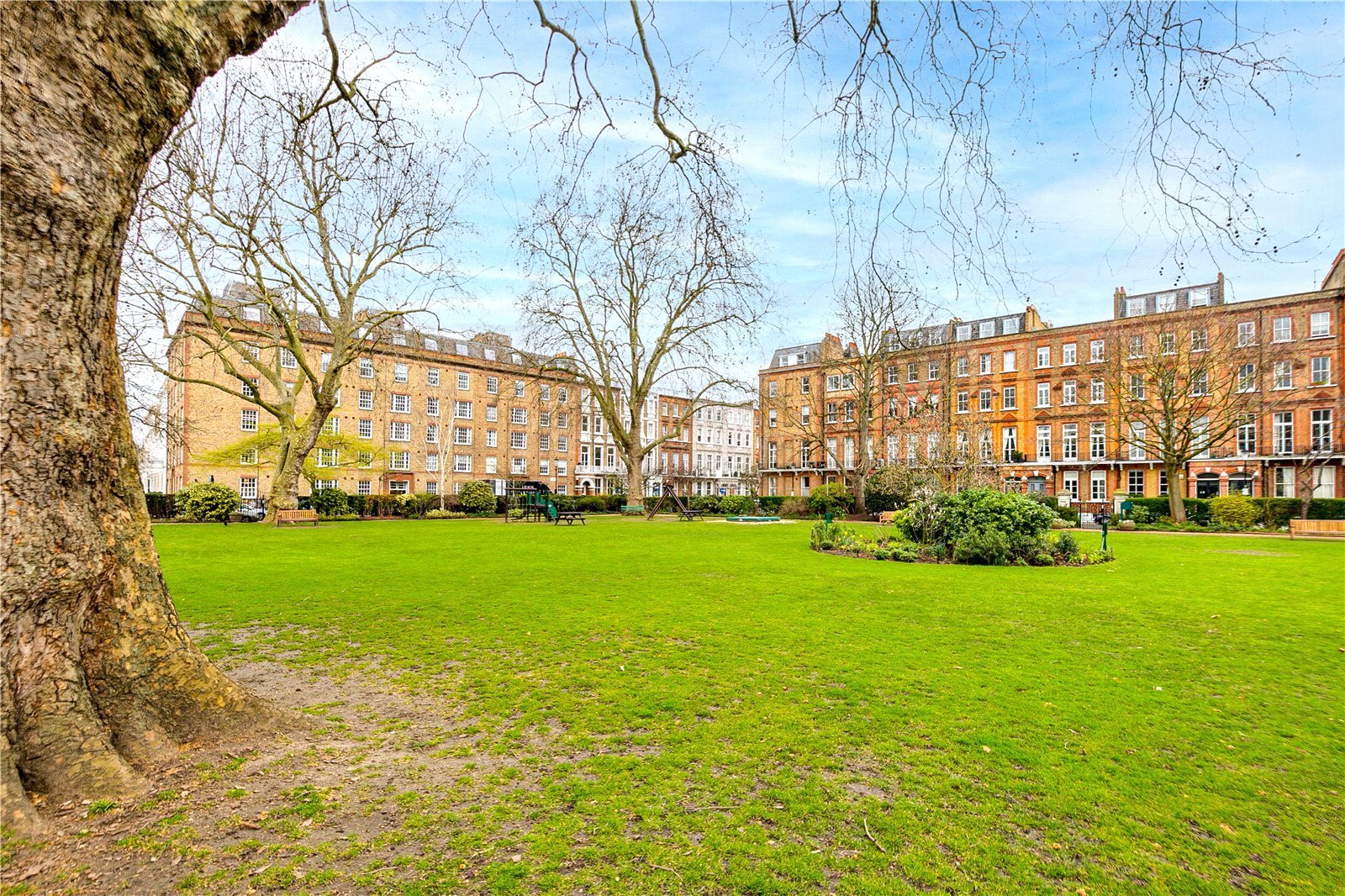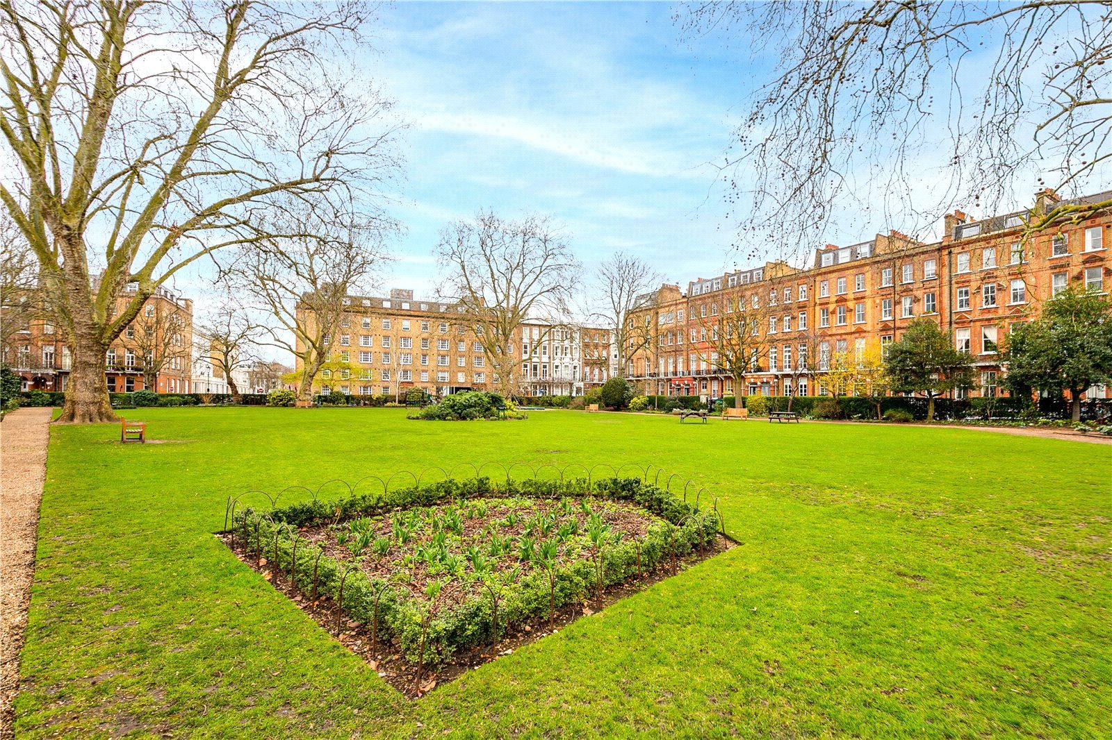 Nevern Square is a highly regarded address in Earl's Court, SW5 found within the Royal Borough of Kensington & Chelsea. The location was designated a conservation area in 1985 with surrounding parts designated in 1997/1998, given its special architectural significance. The square was developed circa. 1880-1889 primarily in the Domestic Revival architectural style and contains substantial buildings with contrasting red and yellow exposed brickwork. The central private gardens are the most prominent feature of the square and these contain substantial mature trees, beautifully manicured lawns and pretty flower borders.