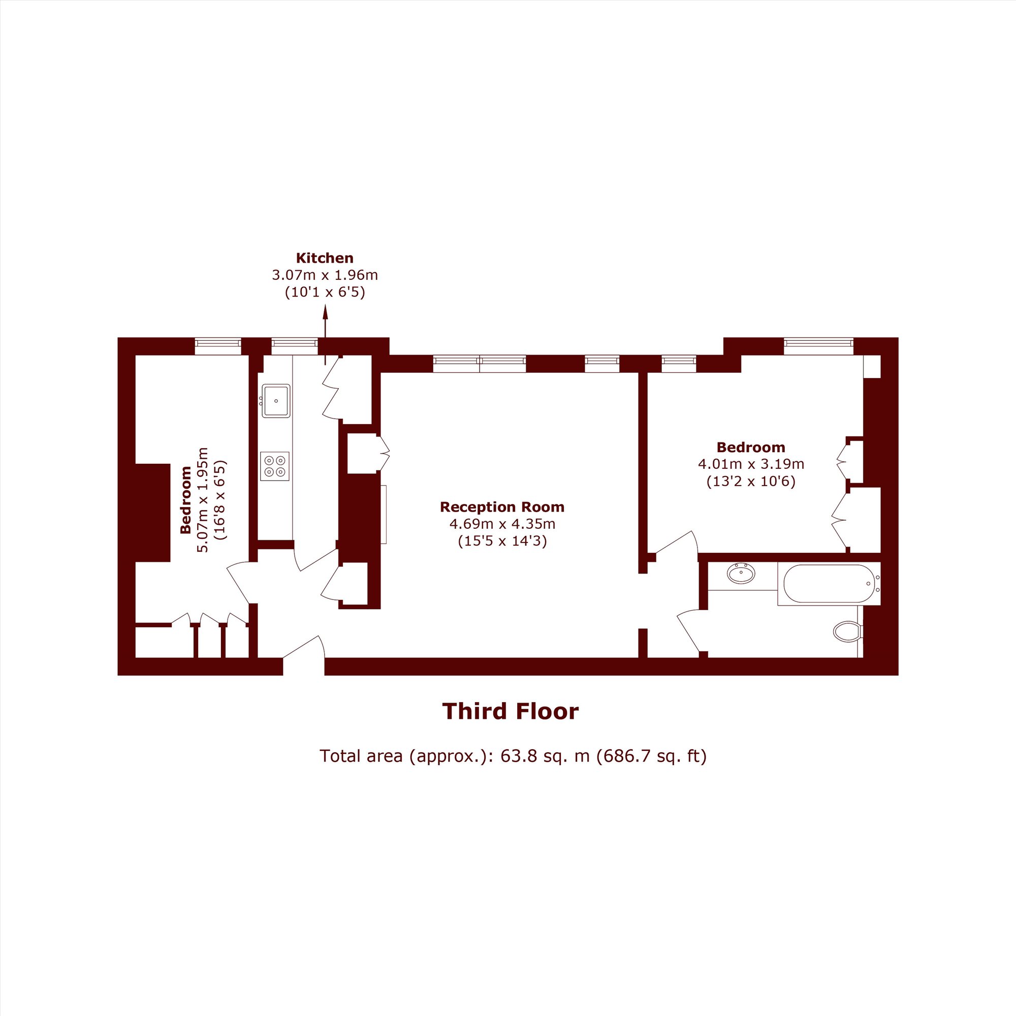 The property features a generous reception room filled with natural light, providing an ideal space for both relaxing and entertaining. The separate, fully fitted kitchen offers ample storage and worktop space, making it practical for everyday living.