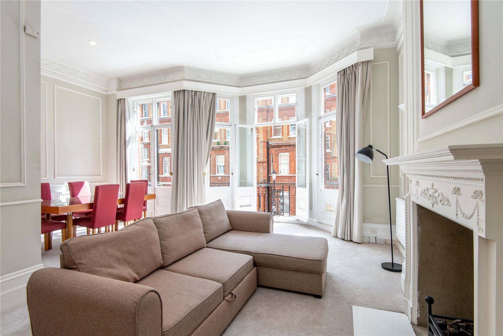 The accommodation comprises of large master bedroom with views over the communal garden behind, a spacious reception room with a separate dining area and fully fitted kitchen. The apartment has wonderful character, high ceilings, a private balcony and is only a short walk from South Kensington and Gloucester Road tube stations and restaurants.