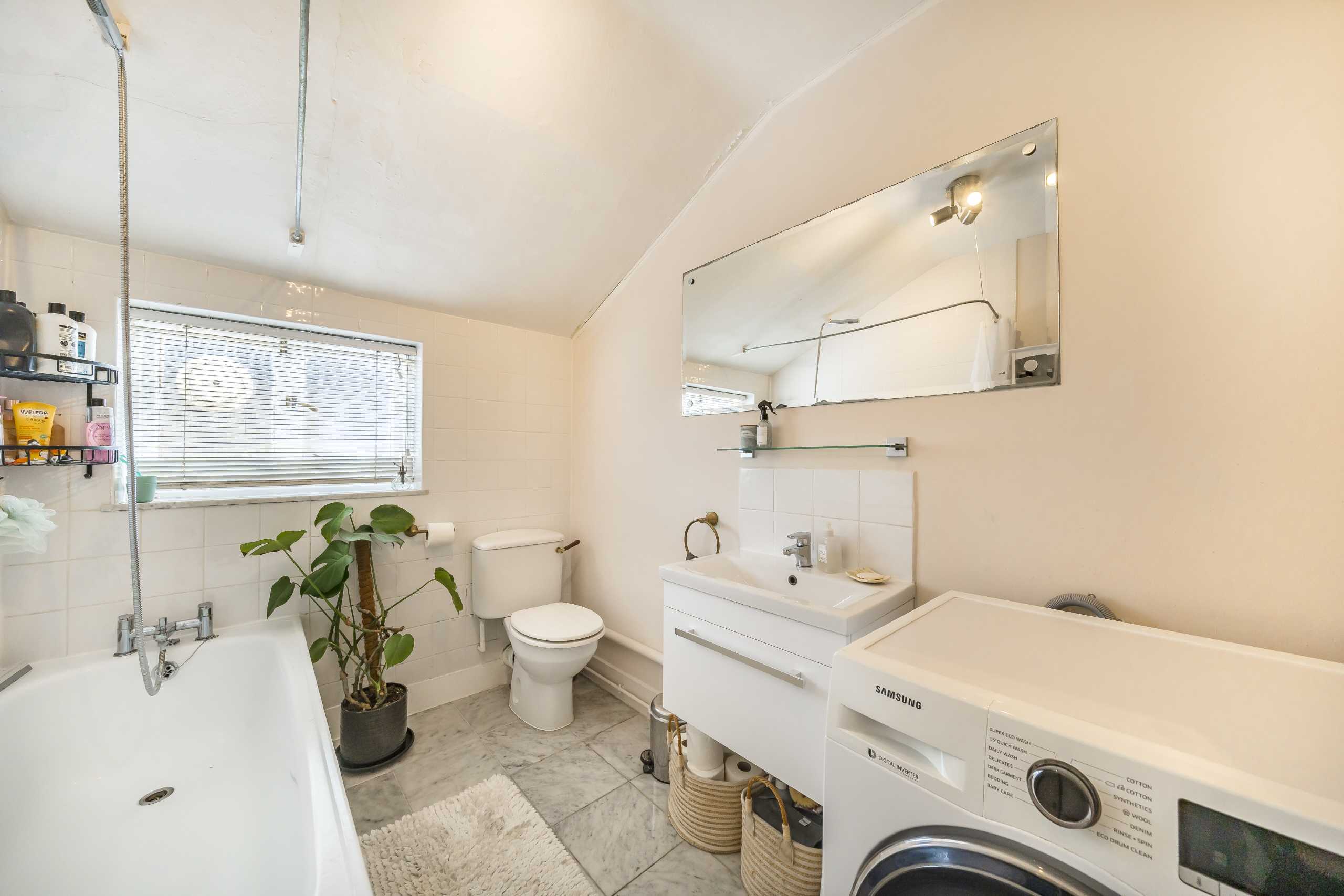 A bright and spacious split level two bedroom flat, located in the ever popular Heaver Estate on the doorstep of Tooting Common. This share of freehold property would be an ideal purchase for first time buyers. The reception room has a gorgeous feature fireplace, high ceilings, period features throughout and a bright interior. The separate, fully fitted L-shape kitchen has neat cabinetry and unique tiling, and offers plenty of storage space. There are two double bedrooms which can be found at either end of the property, the front bedroom benefits a skylight window and the back bedroom has a sash window. Completing this property is the large modern family bathroom and an enviable amount of eaves storage.