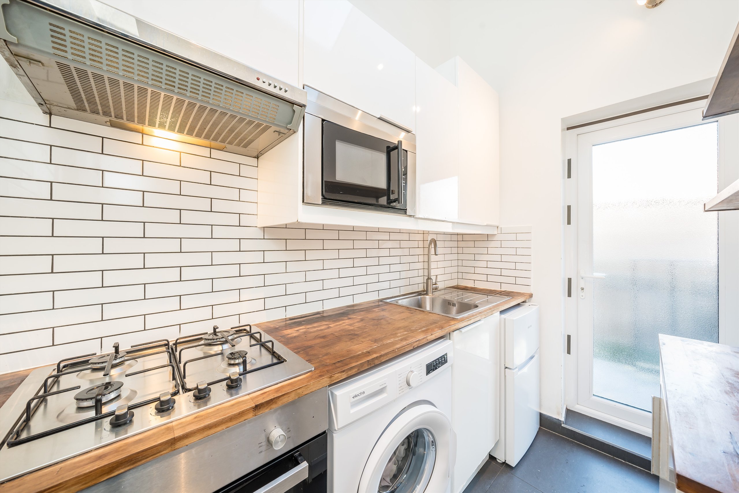 This charming home is bathed in natural light and offers a superb balance of character and modern living. The first floor comprises two well-proportioned bedrooms, a stylish bathroom, and a contemporary fitted kitchen, which opens directly onto a private garden.
