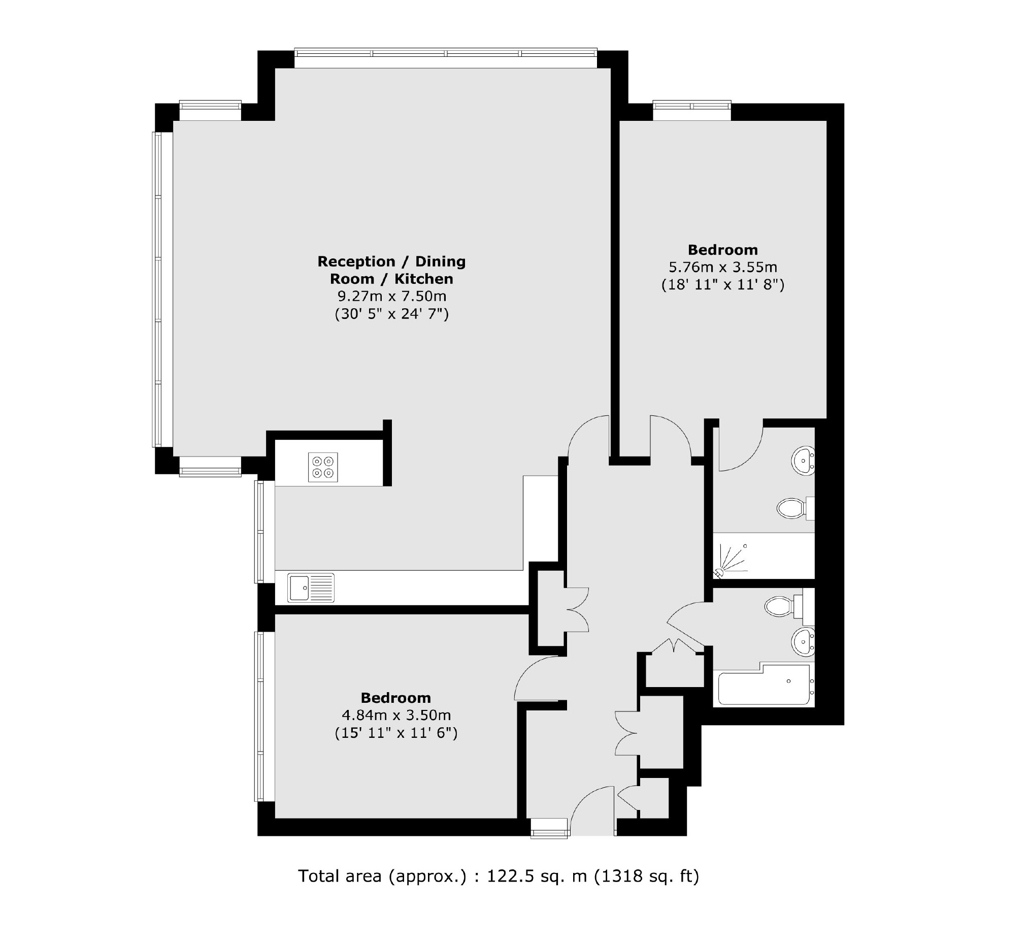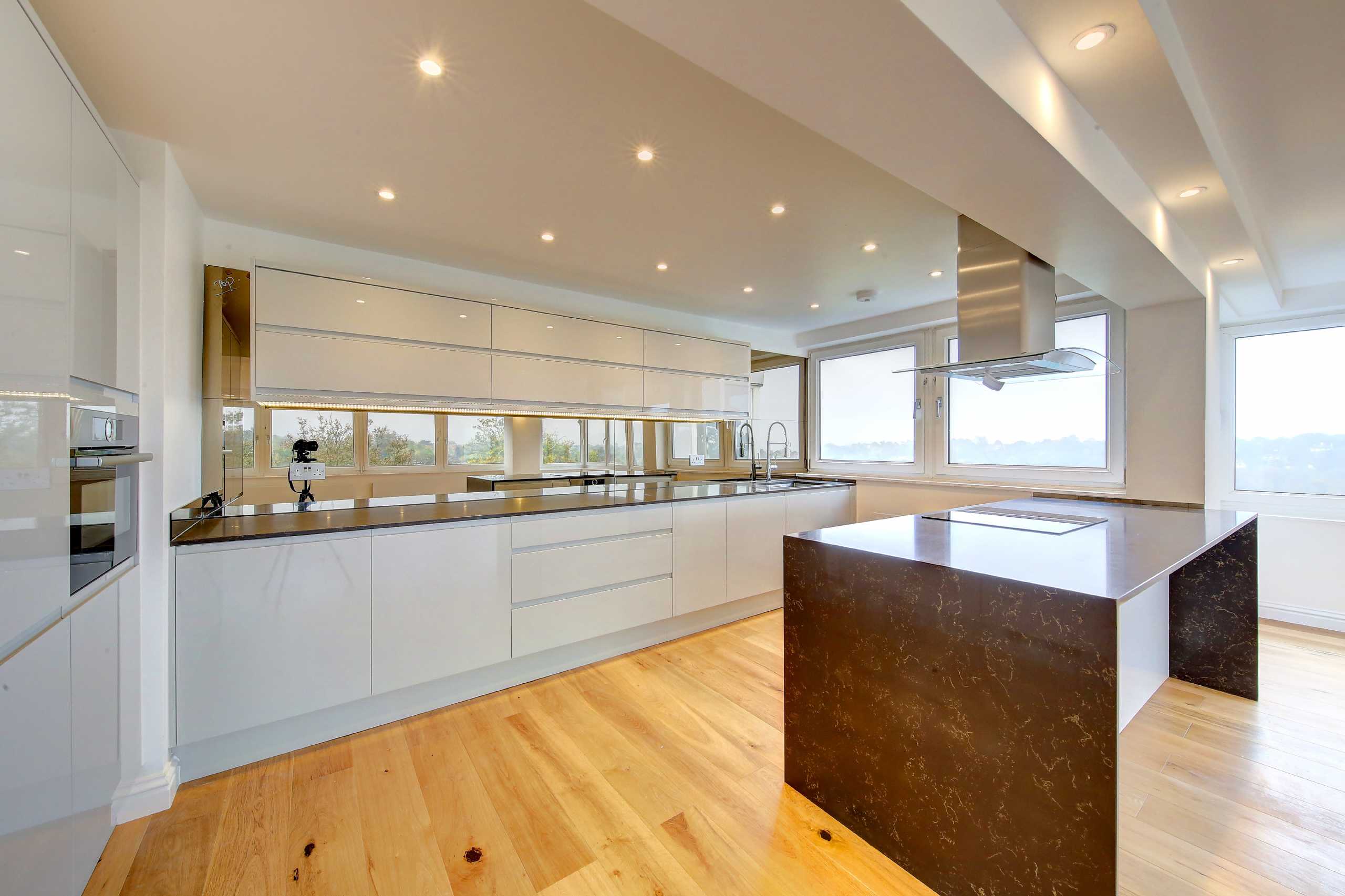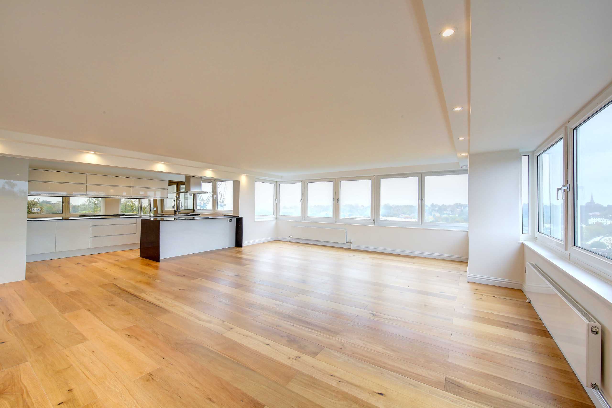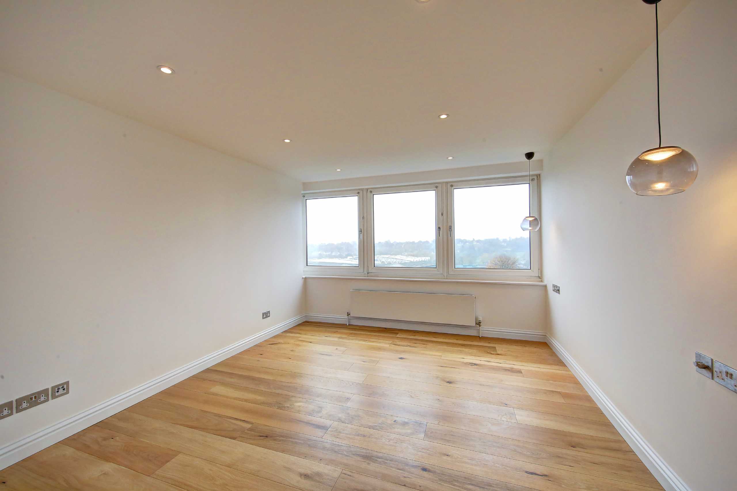 A rare example of a fully renovated apartment, with breathtaking views towards London, capturing a multitude of iconic sites. There are two bedrooms, two bathrooms and no onward chain. Perfectly modelled on a five star luxury hotel suite/ apartment, the property has been completely taken back to brick and renovated to the highest standard. The owner has gone paid special attention to refit every aspect with excellent style and taste. The reception/ dining room is fully open plan with a bespoke high spec kitchen incorporated. The windows wrap around, with beautiful views stretching over trees and towns in multiple directions, including towards Central London and The Surrey Hills. There are two very generous sized double bedrooms, the master complete with an en-suite bathroom. In addition there is a wonderful family bathroom, a concierge service and beautifully manicured gardens.