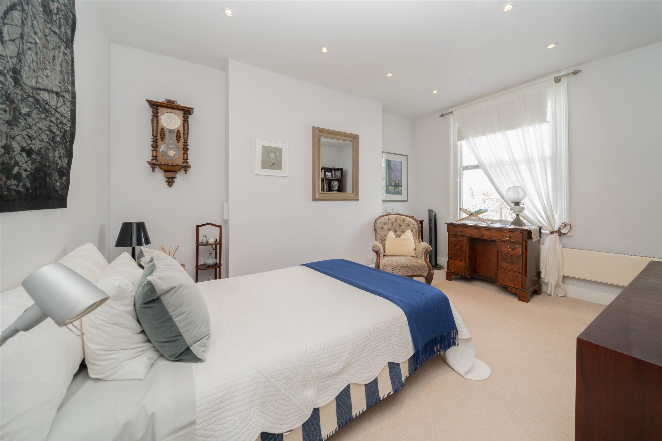 A five bedroom Victorian house with a south-facing garden and two terraces, arranged over three floors with a private apartment below, all included within the freehold.