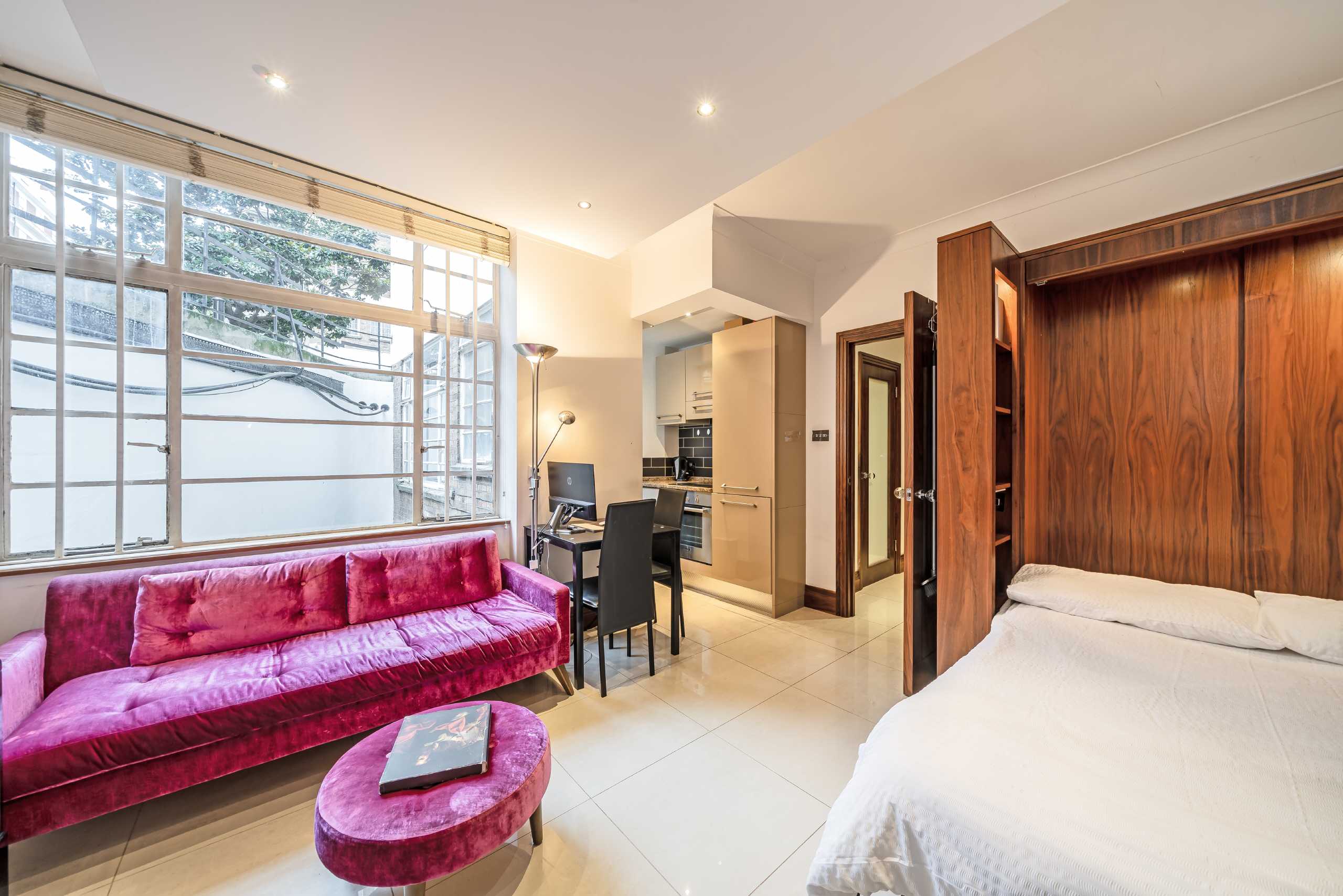 This beautifully presented studio flat has been meticulously finished throughout, offering a perfect blend of modern style, comfort, and intelligent design. The property features a bright open-plan living space with high-quality finishes, a fully fitted contemporary kitchen with integrated appliances, and a sleek, modern bathroom. A bespoke Murphy bed cleverly folds away to maximise floor space, seamlessly transforming the room from a comfortable sleeping area into a stylish living and entertaining space. With its neutral décor, efficient layout, and attention to detail, this property provides an ideal low-maintenance home for first-time buyers, professionals, or investors alike.
