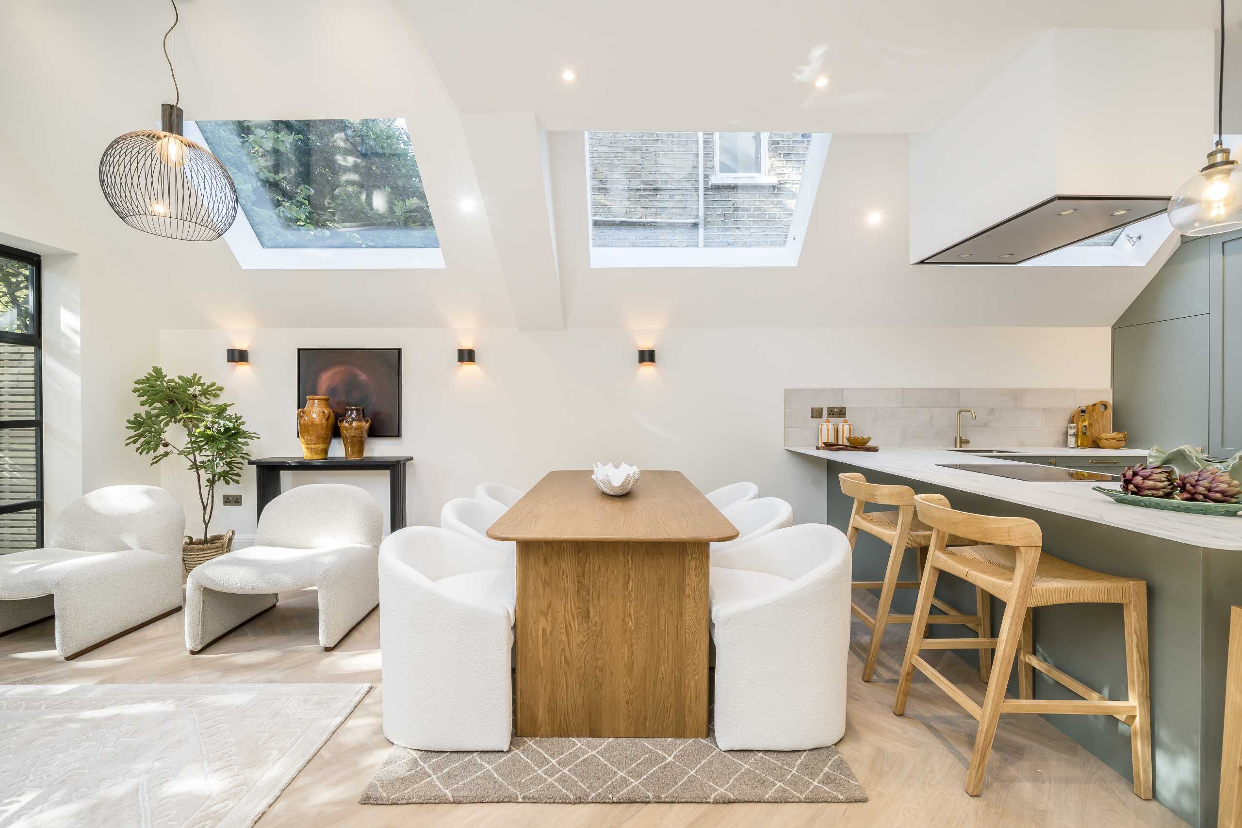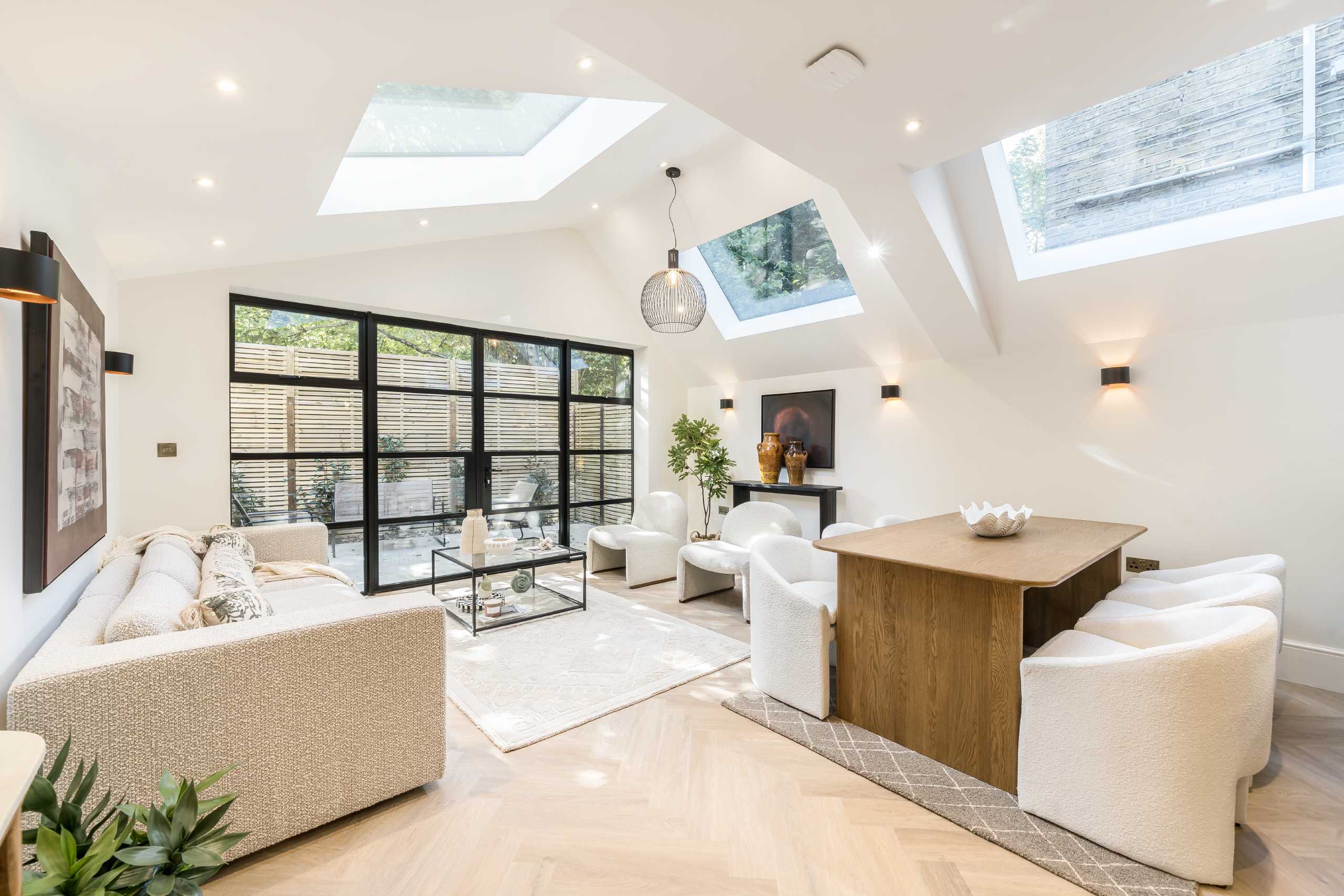 Further benefits include pre-wired Wi-Fi repeaters for enhanced connectivity, integrated patio and garden lighting, and high-performance aluminium windows to the rear with classic UPVC sash windows at the front combining period charm with modern efficiency. Acoustic insulation between flats ensures quiet, private living.