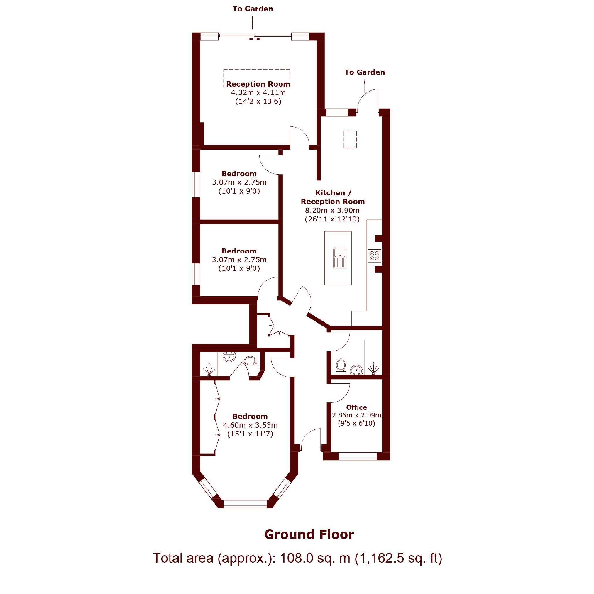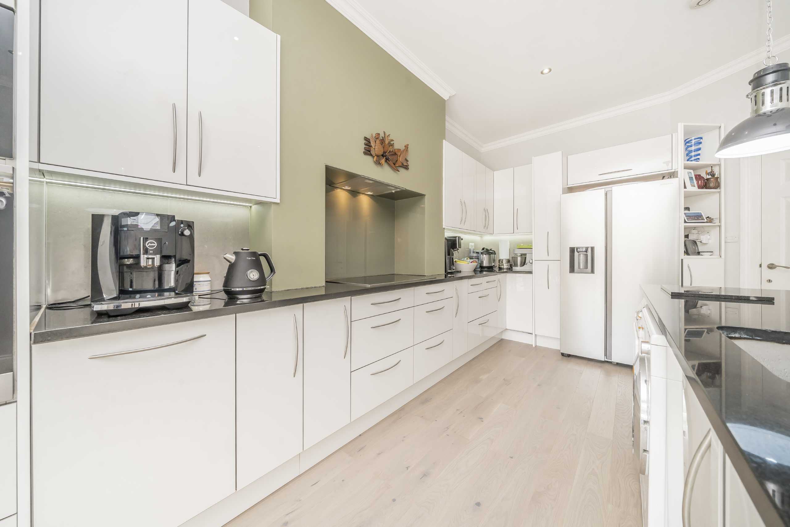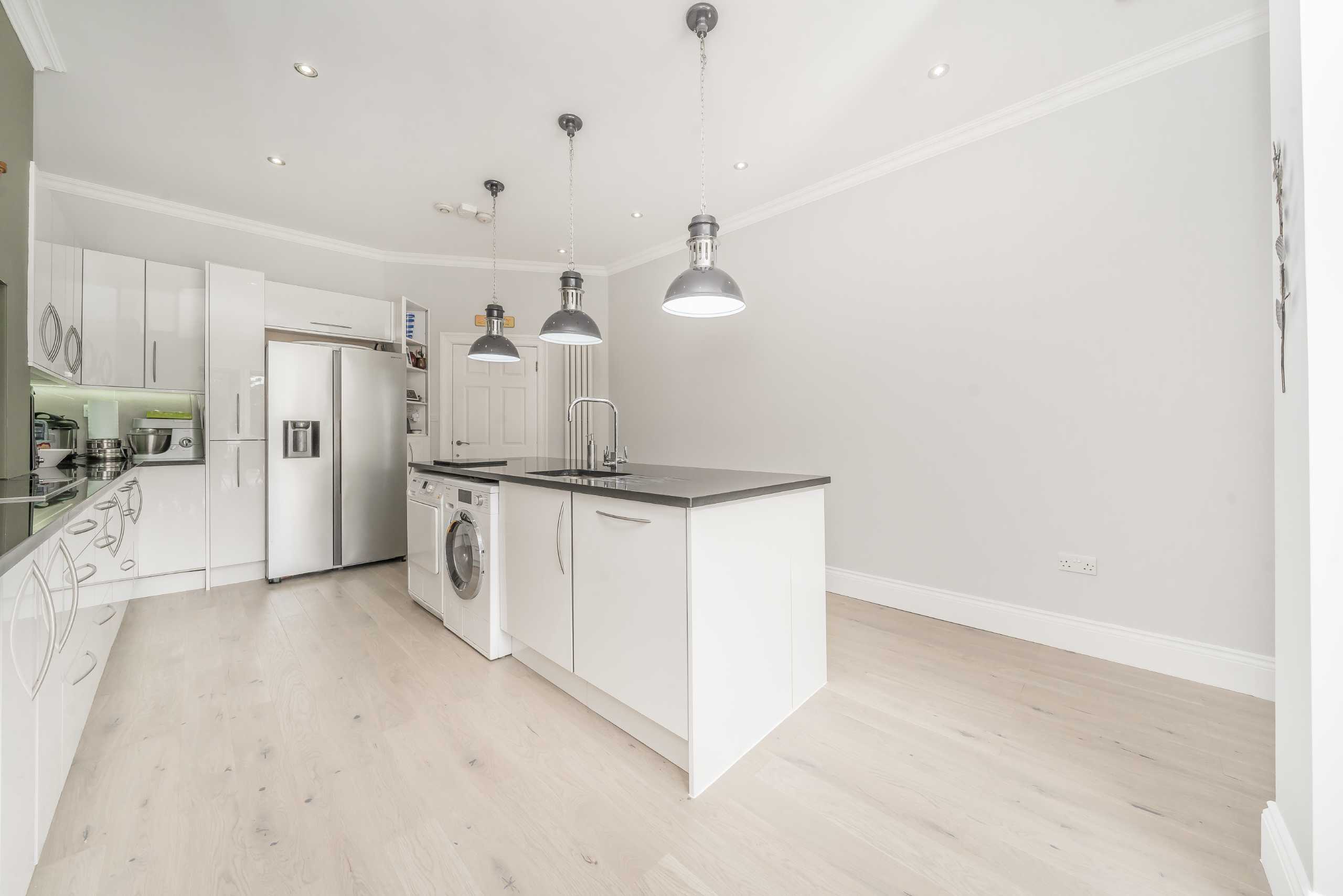 This superb, four-bedroom ground floor garden flat is arranged over 1,162sqft, comprising a bright reception room with direct access to a circa 100ft private garden, large kitchen diner complete with integrated appliances, kitchen island and direct garden access, four bedrooms and two bathrooms, one of which is ensuite.