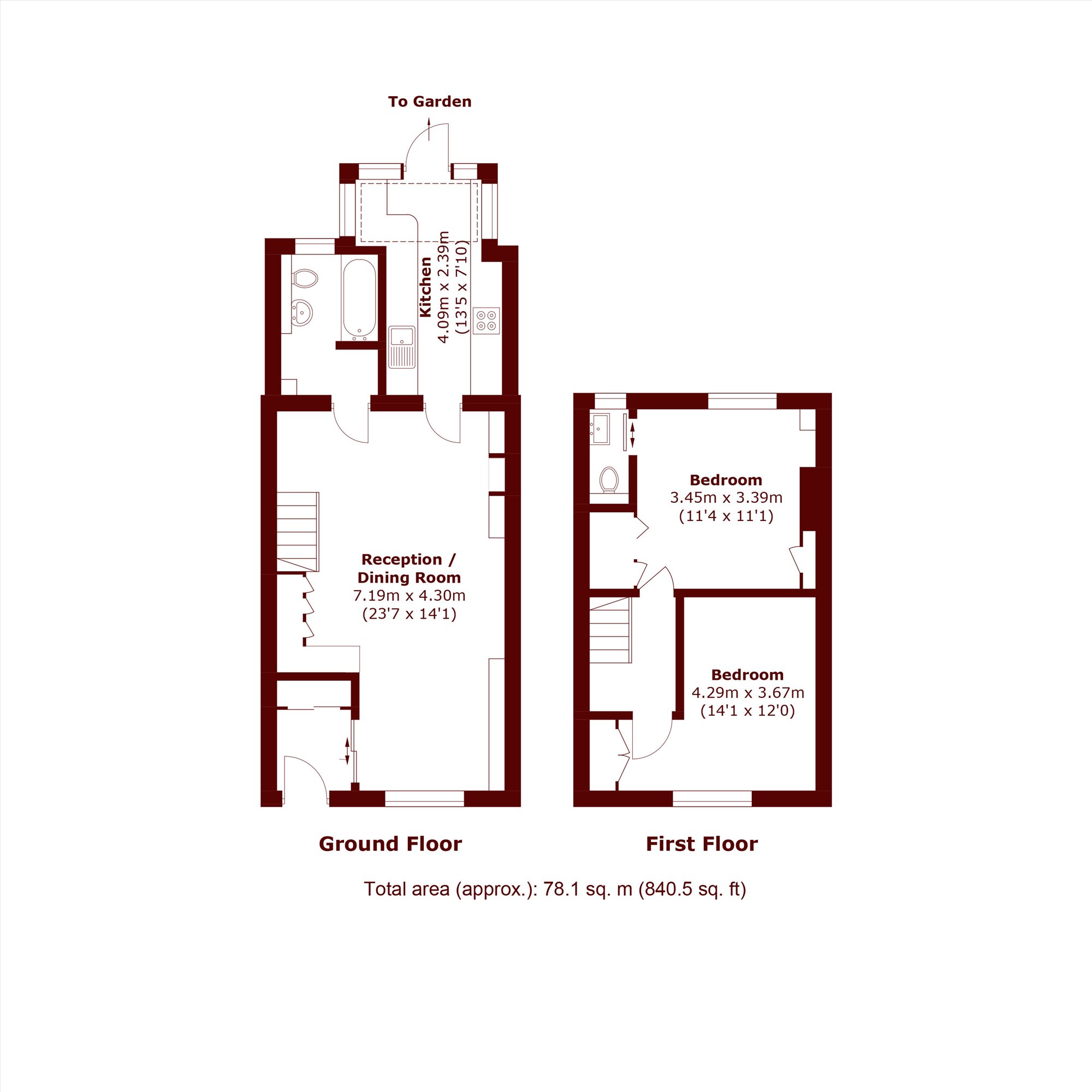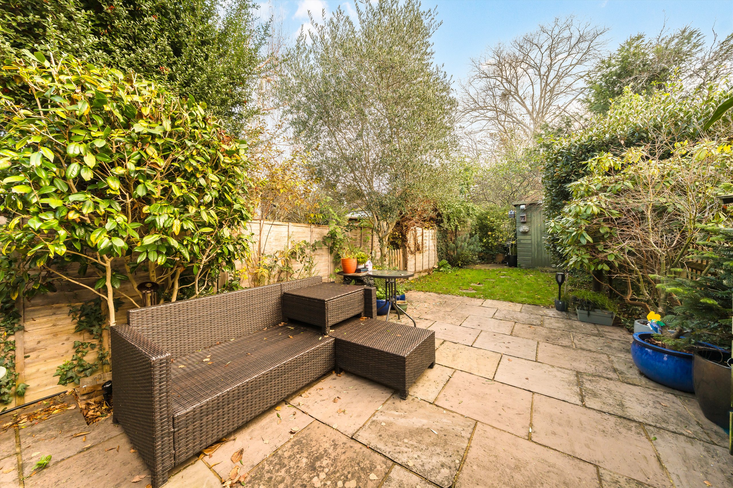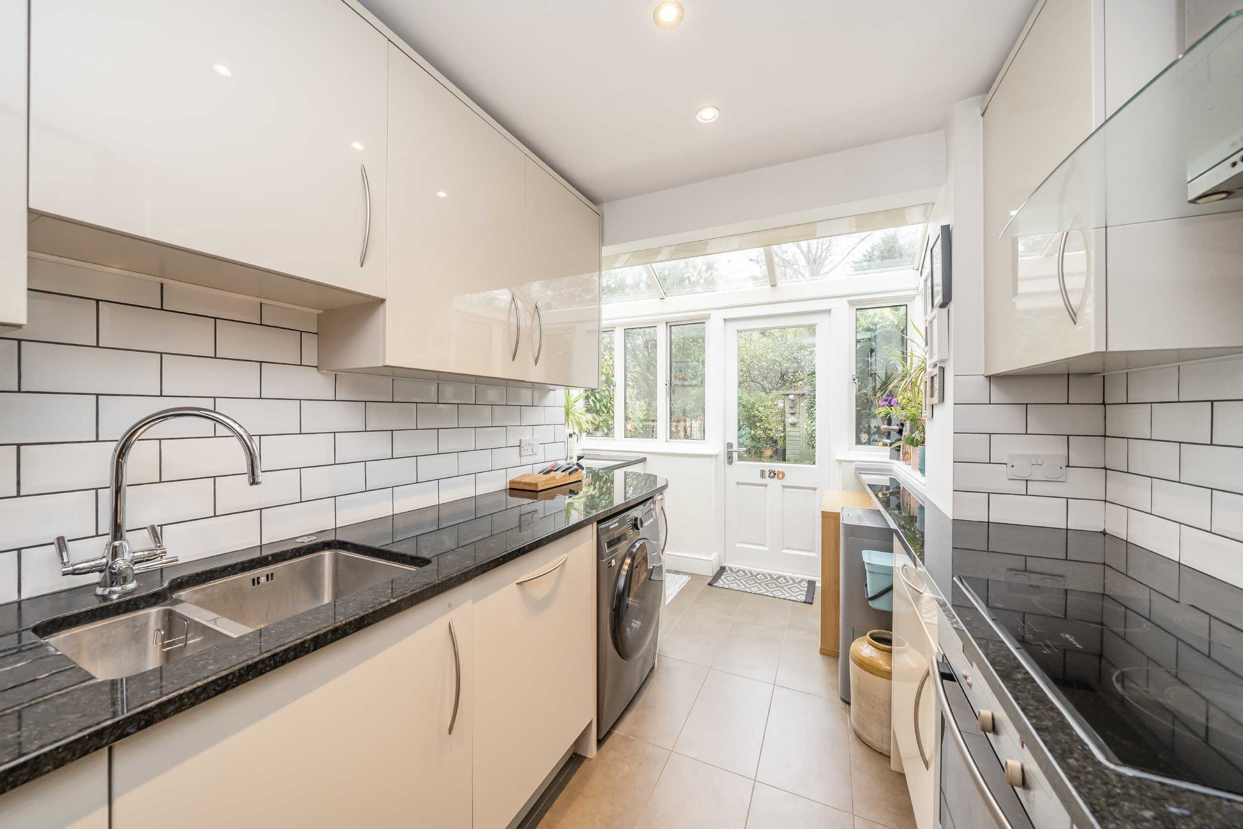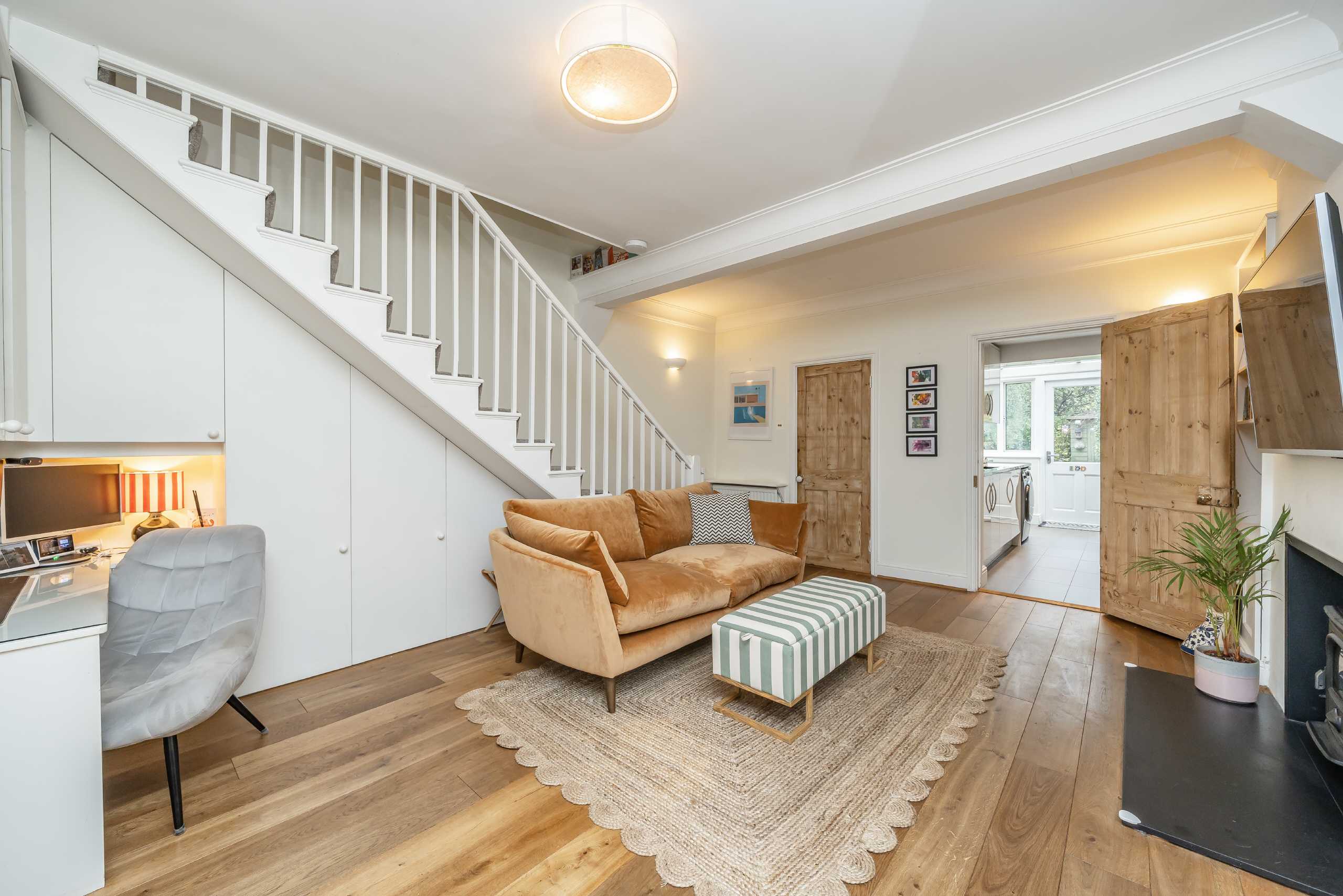 This smart, well-designed property has been modernised and refurbished by the present owners in recent years. To the rear the galley style kitchen has a conservatory extension, features modern units and leads to a secluded rear garden with mature shrubs and patio leading to a lawn. The front and rear reception rooms have been opened up to the staircase creating a wonderful entertaining / dining area with an additional space to accommodate a desk and provide a home-work space. The fully-tiled bathroom is stylish and contemporary and has a shower over the bath, Both bedrooms are doubles and have built-in wardrobes, the rear bedroom benefiting from a useful WC.