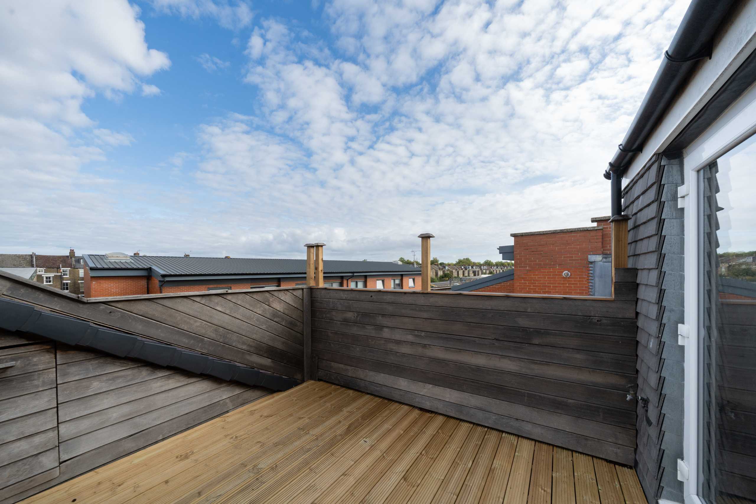 There is a separate kitchen, two bathrooms and a large roof terrace with views over the neighbourhood.