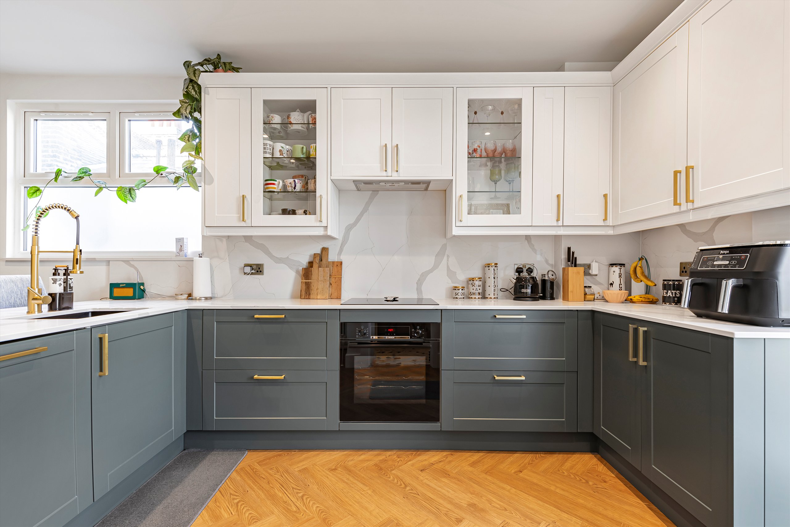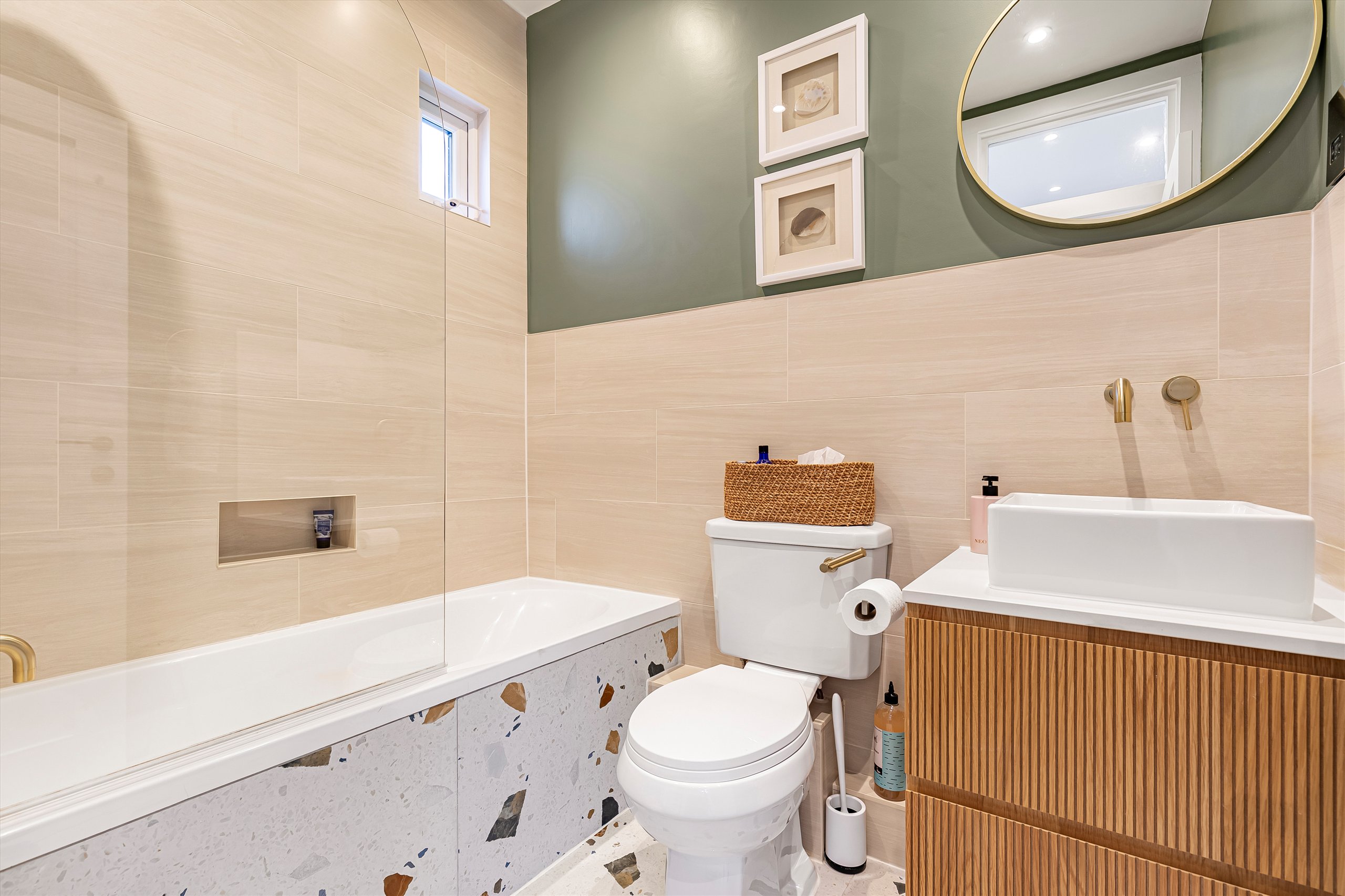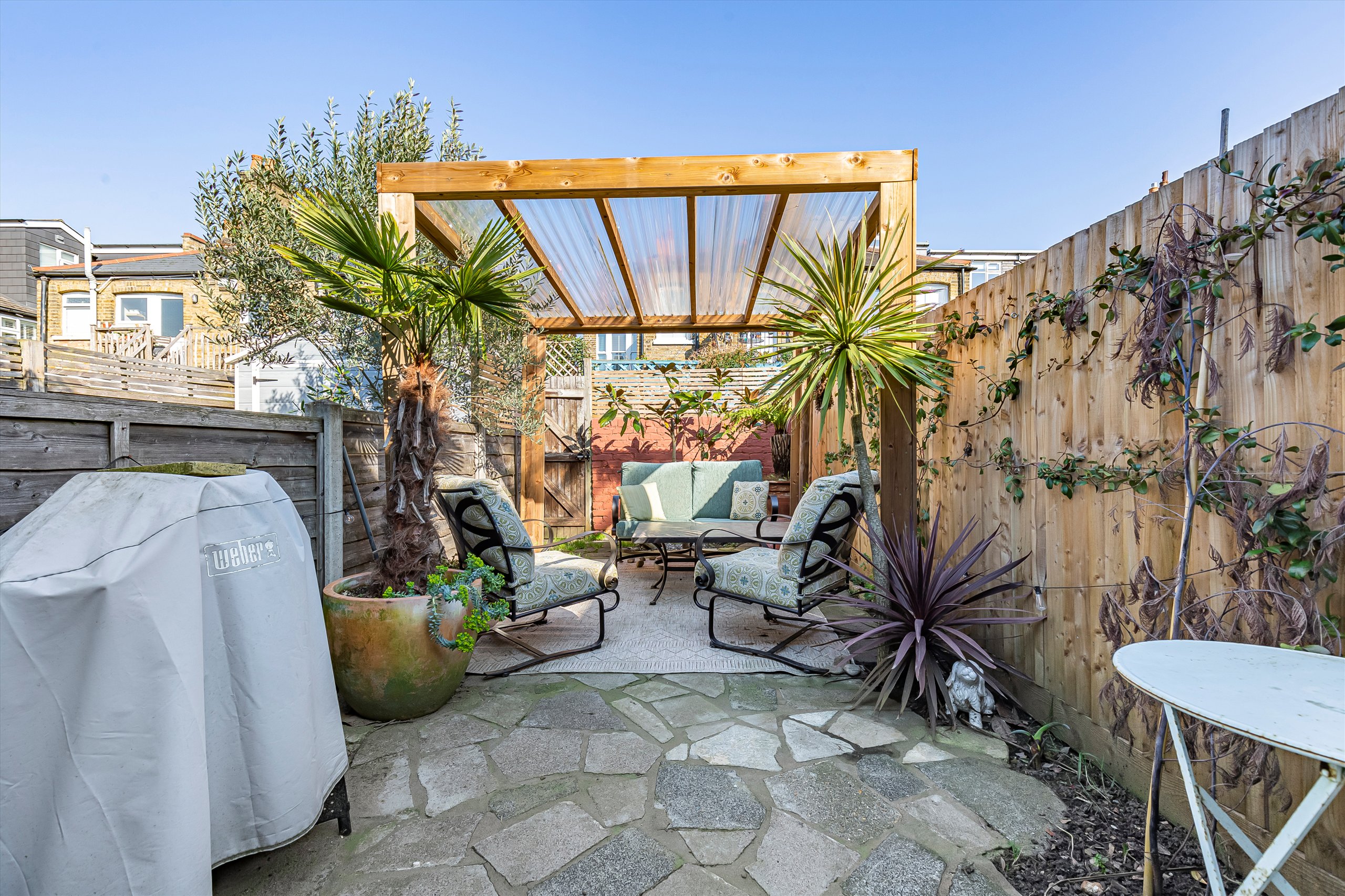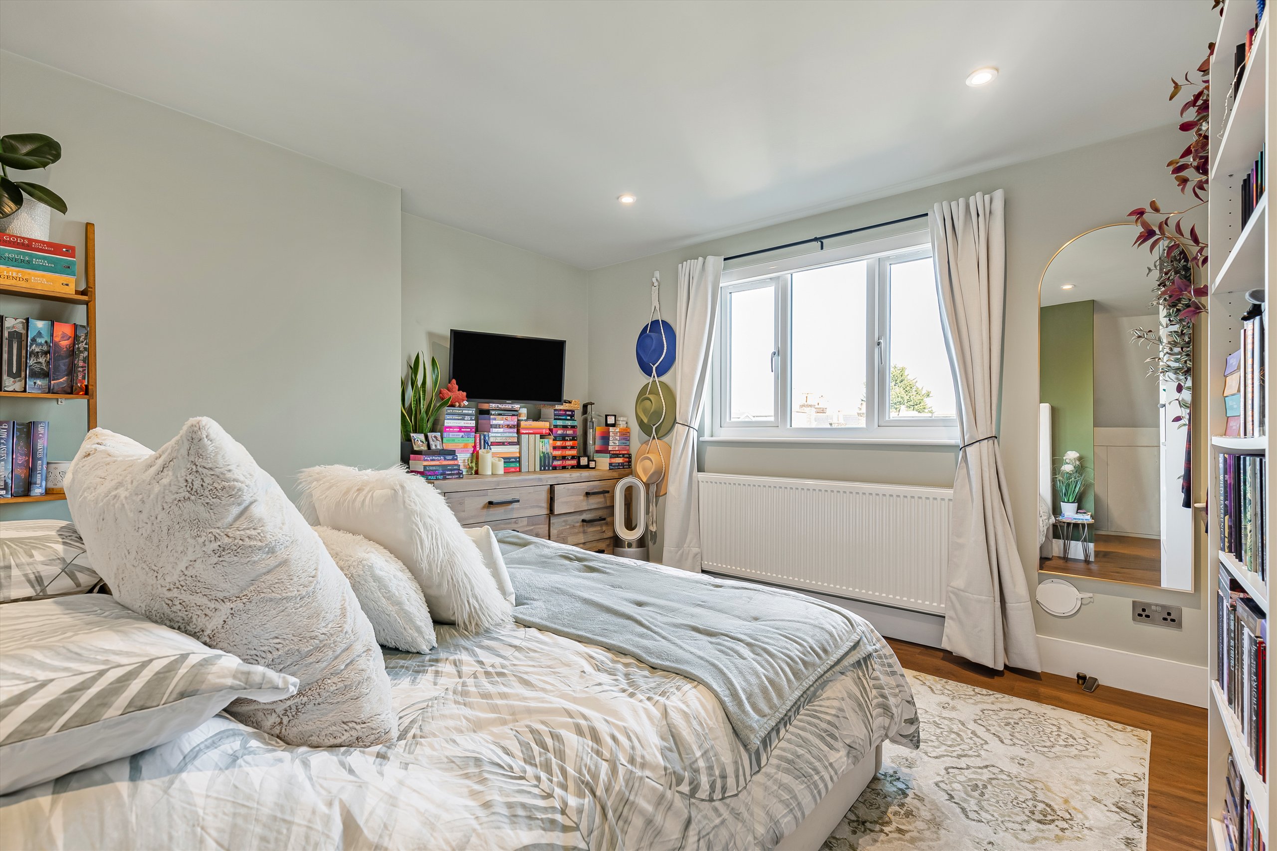 The flat comprises of it's own front door leading into a hallway entrance on the ground floor and the stairs take you up to a light and bright landing area. At the rear of the property is a modern kitchen with integrated Bosch appliances and Quartz worktops. There are French doors lead down onto a private courtyard garden with handy store room. On the first floor you have two double bedrooms and a front reception room running the full width of the house with Woodpecker herringbone flooring and the bathroom on the first-floor has Ravello terrazzo tiling. Upstairs as part of the new dormer extension is the principal bedroom, benefitting from stylish en suite and an incredible walk-in wardrobe.