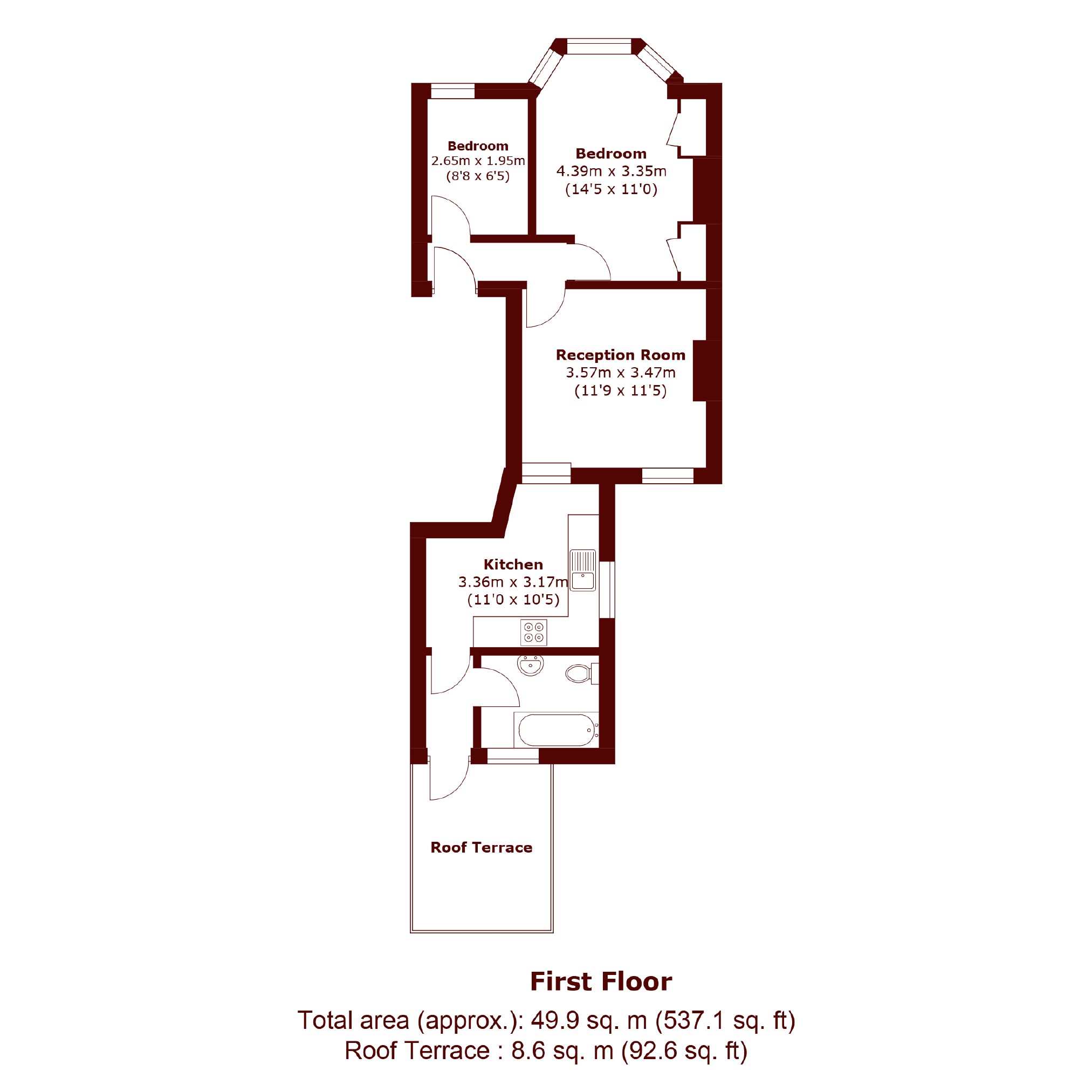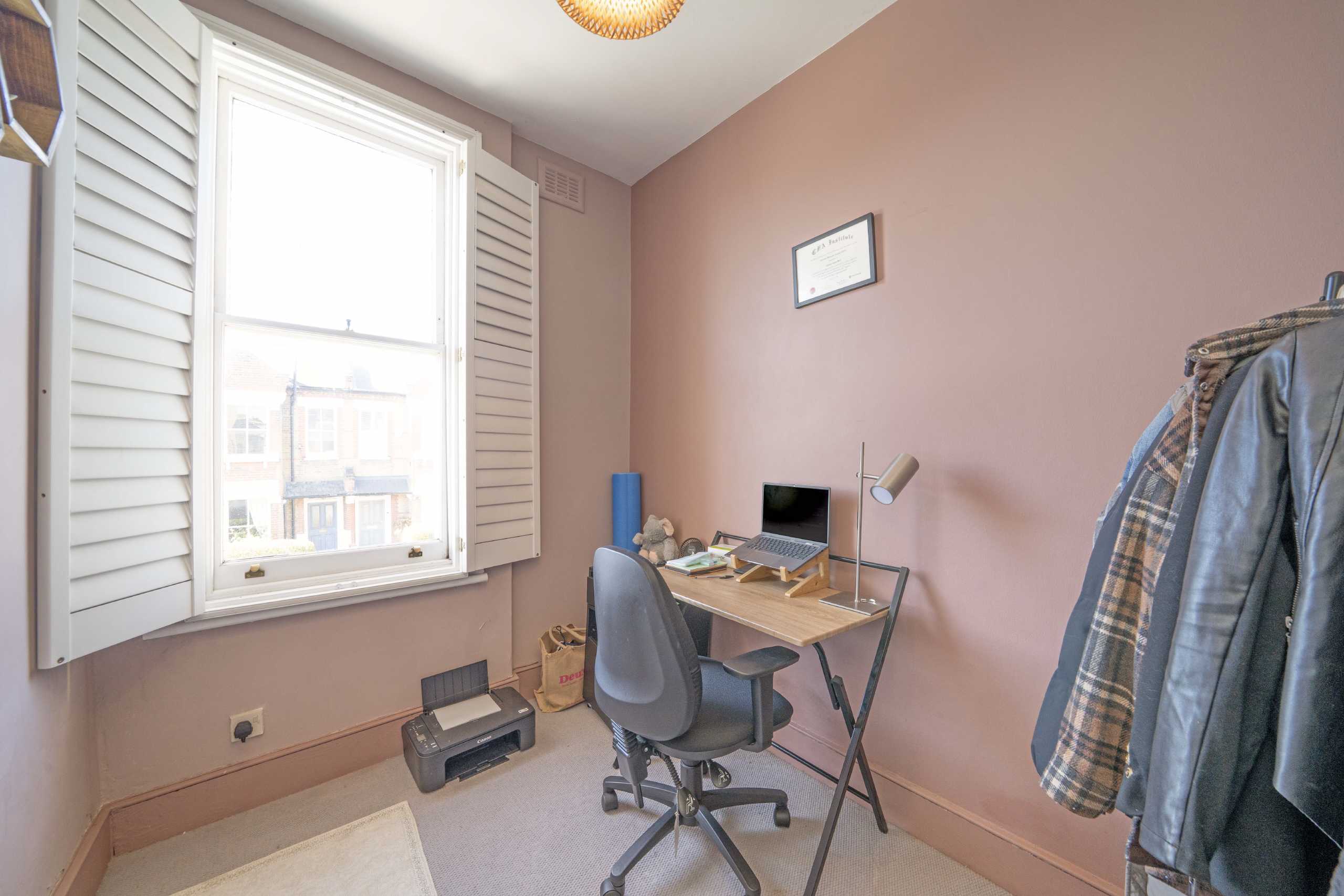 A exceptional two bedroom first floor Victorian conversion in the Nightingale Triangle with a private roof terrace. It has a lovely 'L' shaped kitchen, a modern bathroom with a shower over the bath and trendy metro tiles and features throughout including a bay window and traditional fireplace.