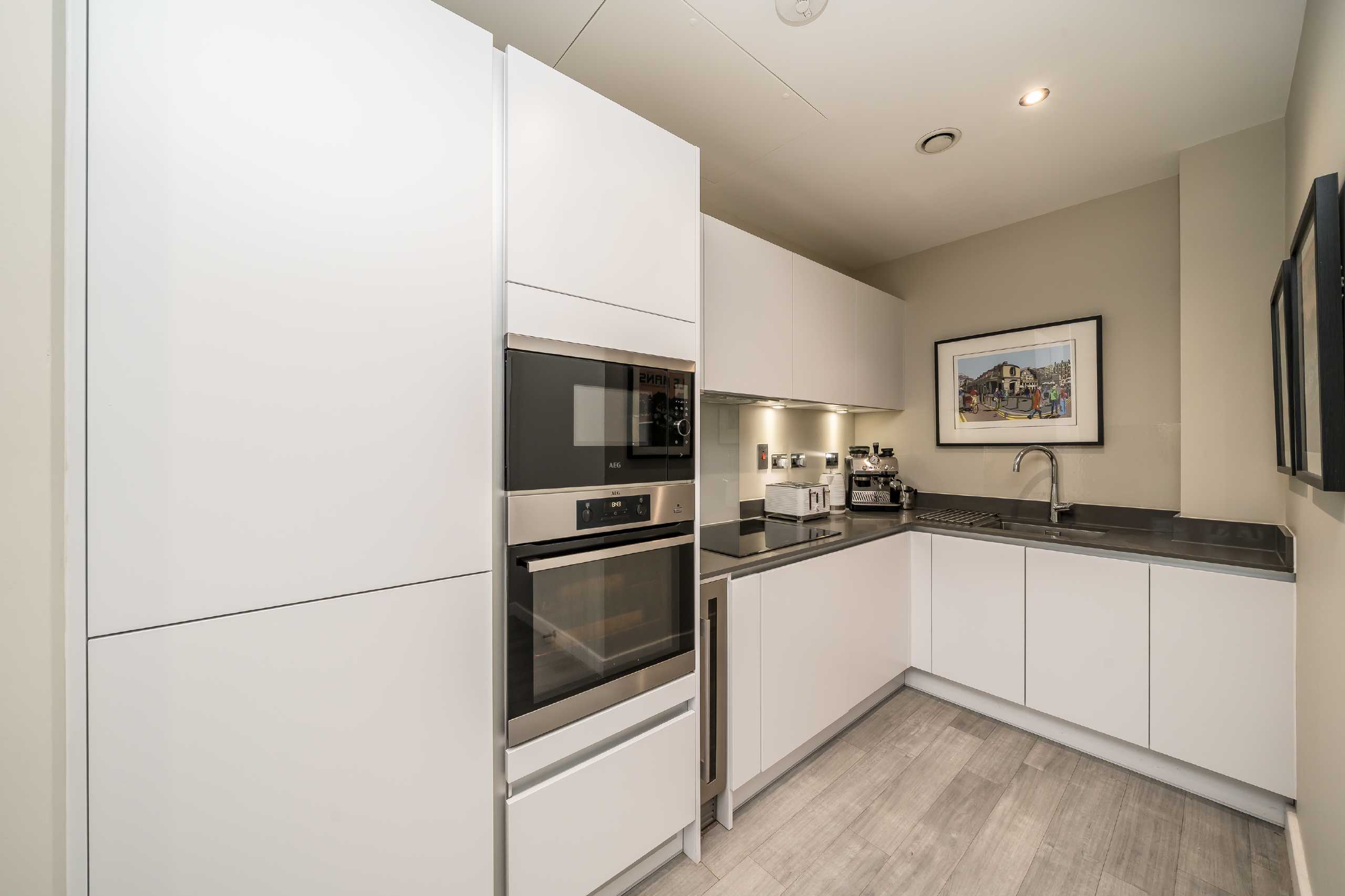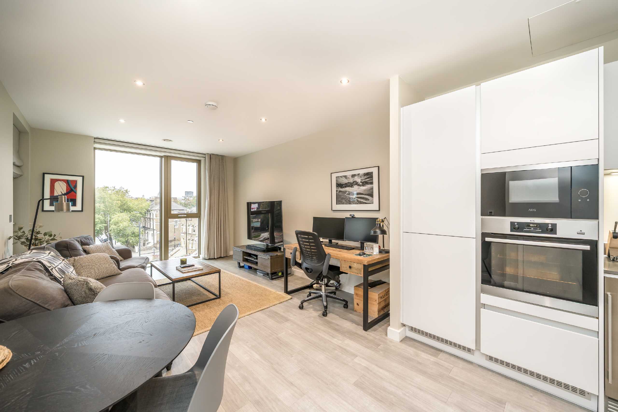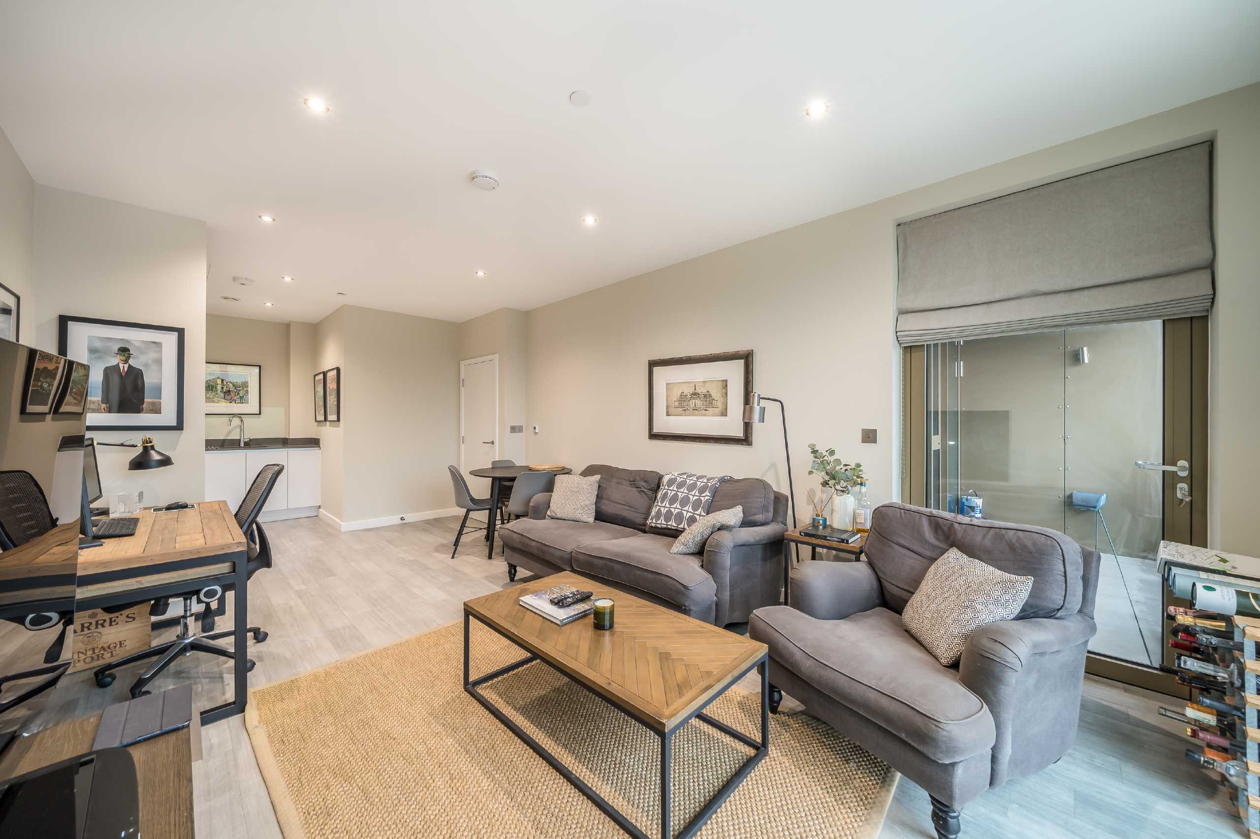 A fantastic apartment boasting a spacious open plan kitchen reception area with a modern fitted kitchen and integrated appliances with direct access onto a private balcony alongside a generous double bedroom with bespoke built-in wardrobes, a three piece family bathroom and ample storage. The development comes complete with secure bike storage, a private allocated parking space, 24-hour surveillance and two large communal terraces.
