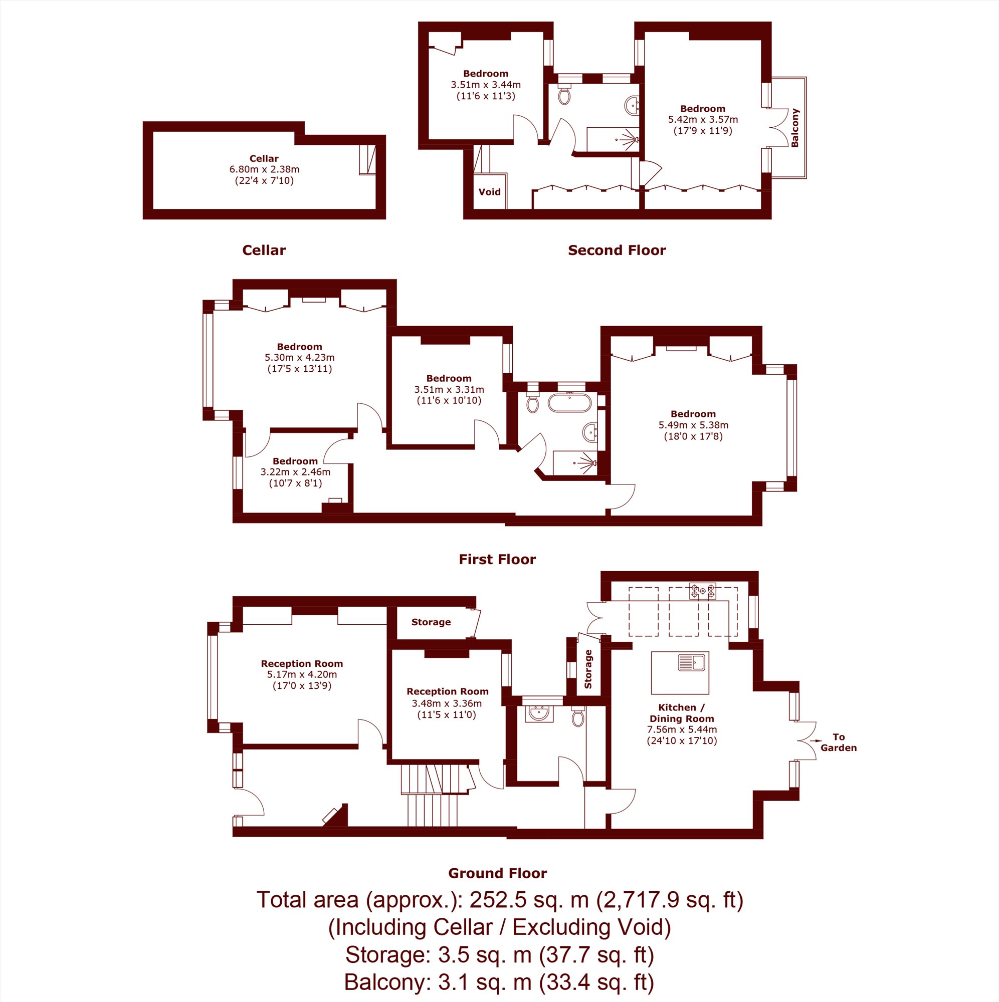 The two separate reception rooms and the hall have delightful original features including ornate ceilings. There is a handy downstairs WC and cellar providing good storage space. The upper floors provide five spacious double bedrooms and study, most with fitted wardrobes and served by two family bathrooms, one on each floor.