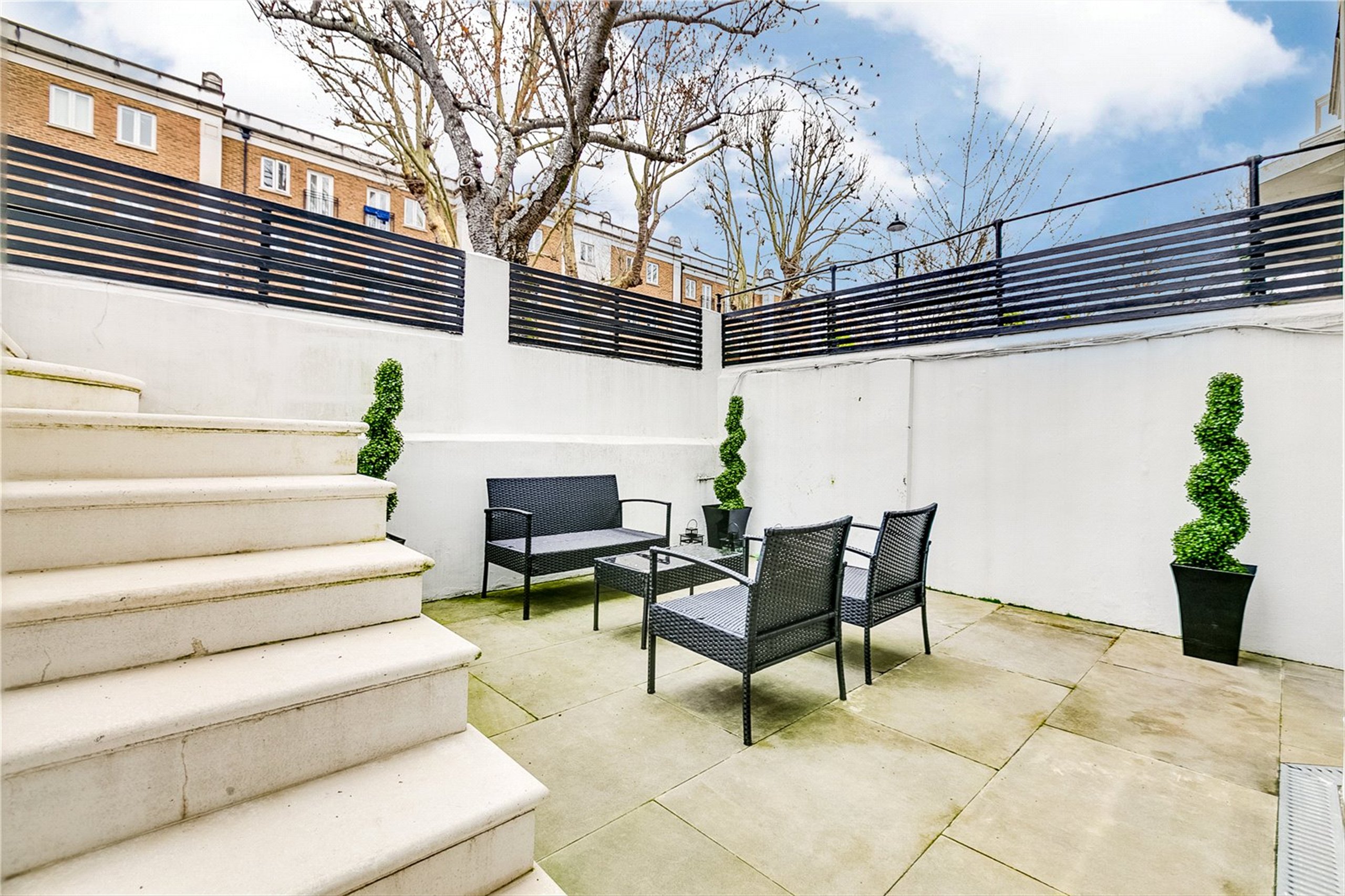 A well-arranged two-bedroom garden flat with private patio in a pretty tree-lined street.