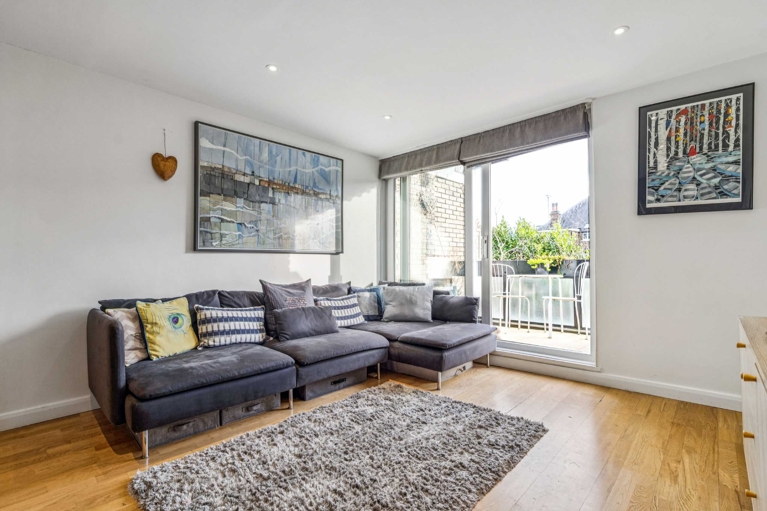 This naturally bright duplex apartment is arranged over the second and third floors of a well-maintained purpose-built block and benefits from its own private entrance. The lower floor offers excellent storage, a spacious eat-in kitchen/diner, and a separate reception room with direct access to a large, private south-facing balcony. The upper floor comprises two double bedrooms, a family bathroom and further built-in storage. The property is offered chain-free.