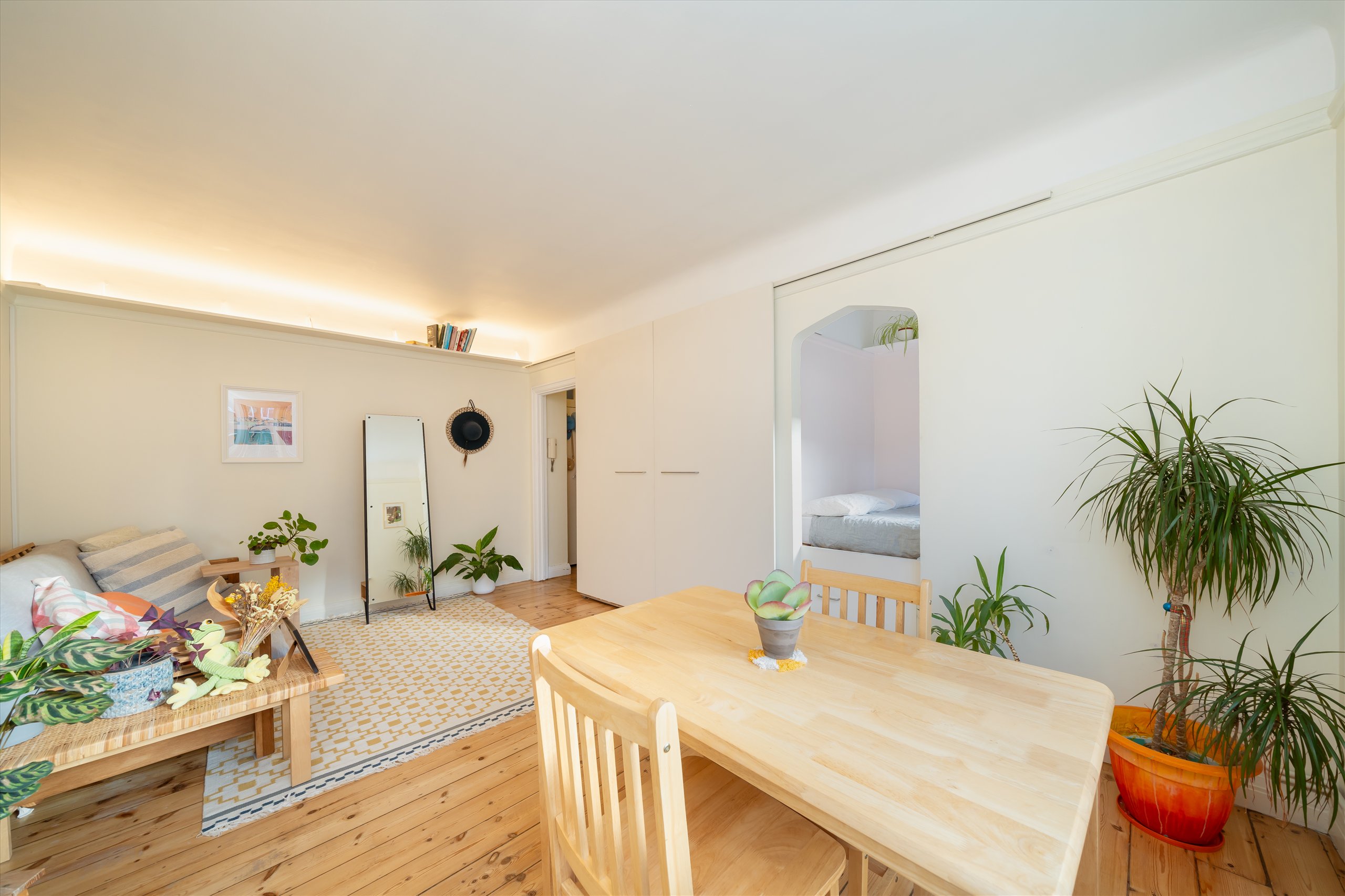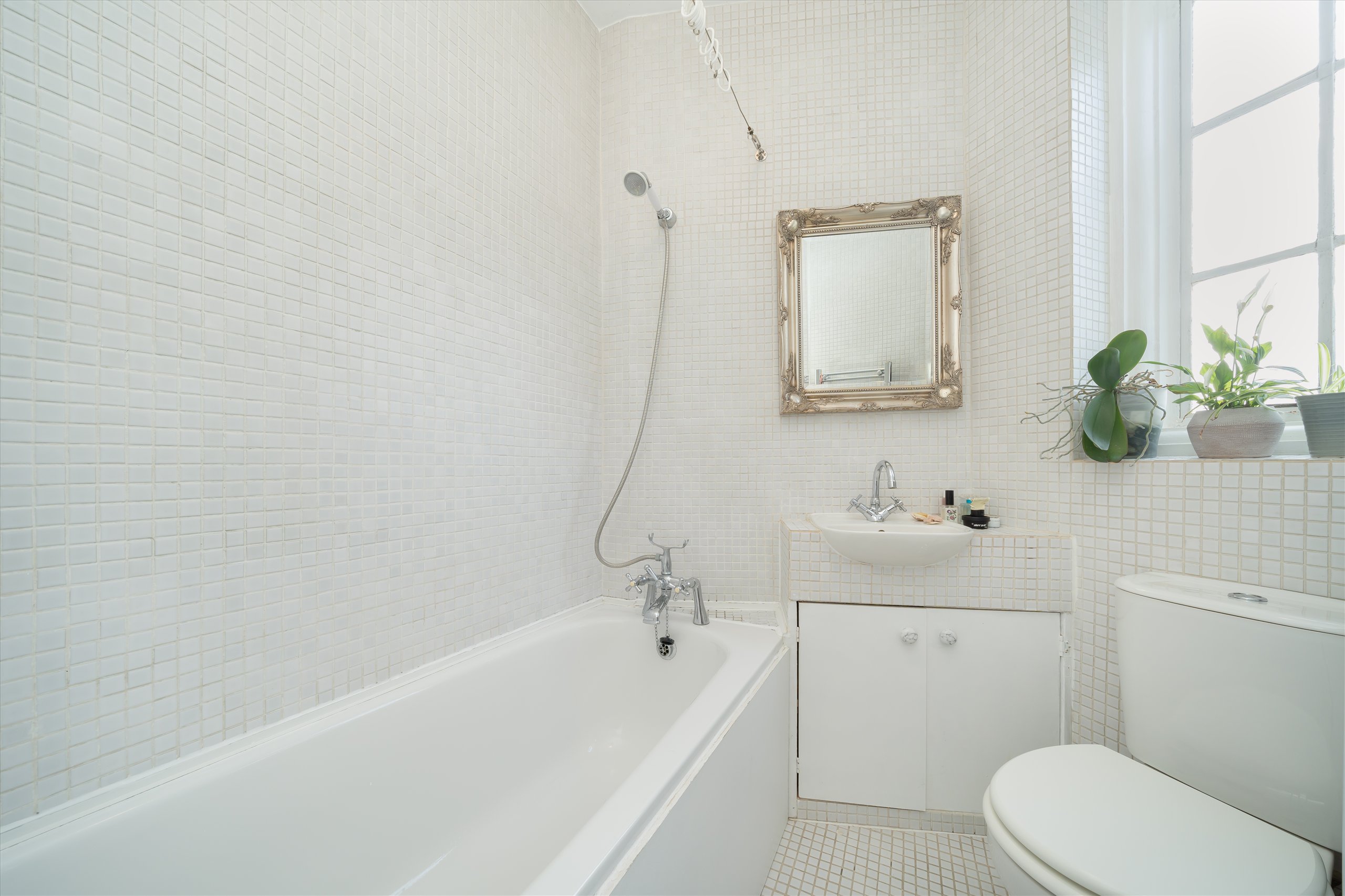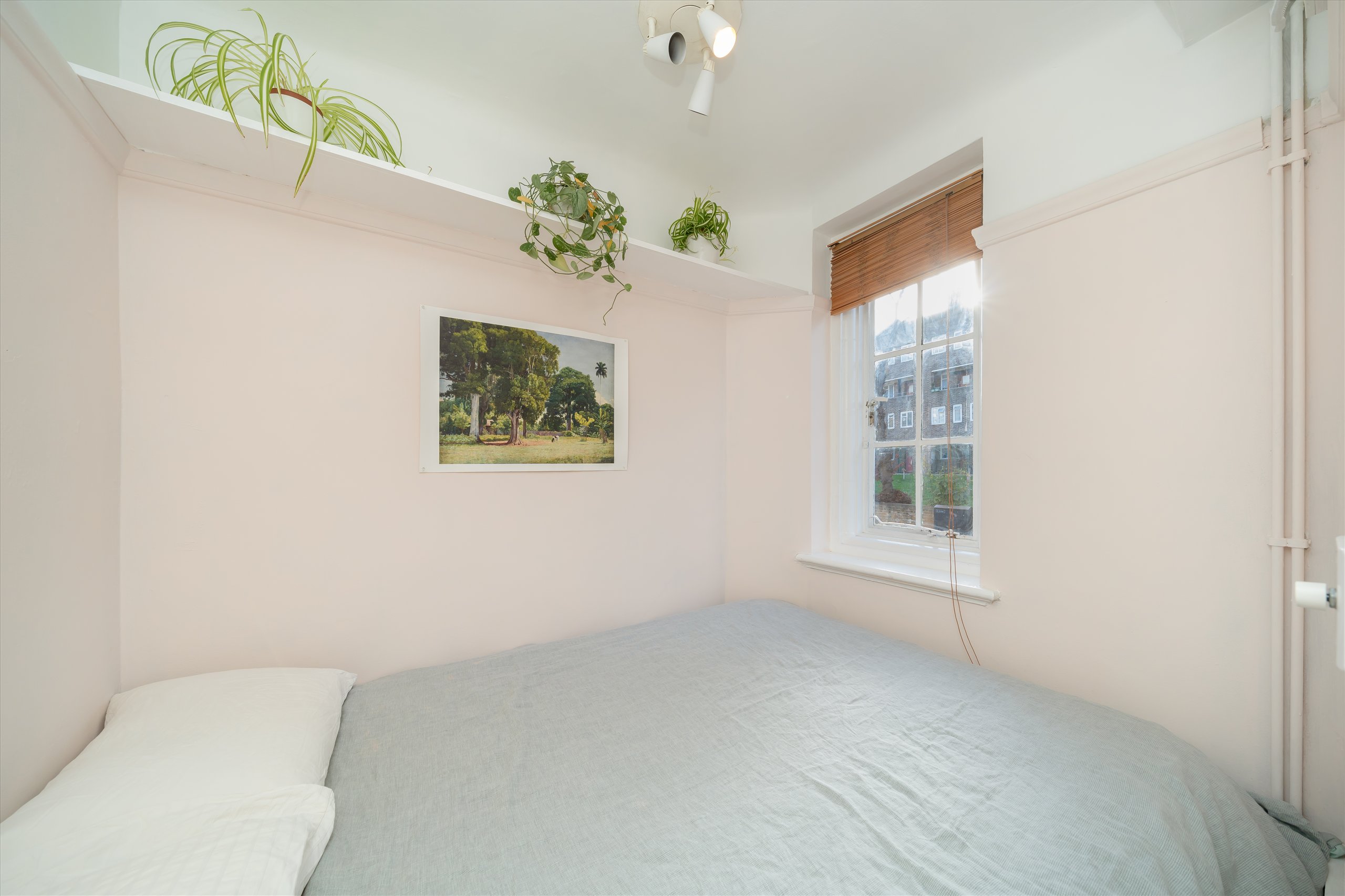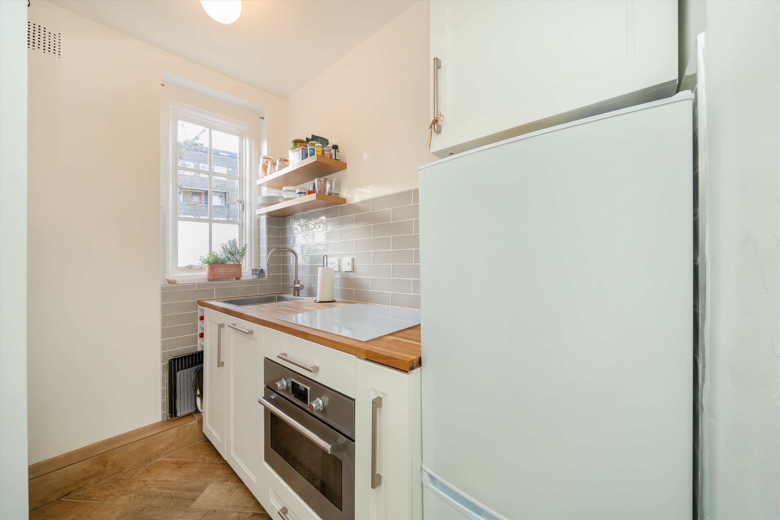 A bright and spacious studio set within a period purpose built block on the raised ground floor, the apartment offers a generous studio/reception space, a separate re-fitted kitchen, a defined sleeping area, wooden flooring, and a modern bathroom. Additional benefits include excellent built-in storage, with potential to convert part of it into a dedicated study or work-from-home area, as well as access to a well-maintained communal patio garden.