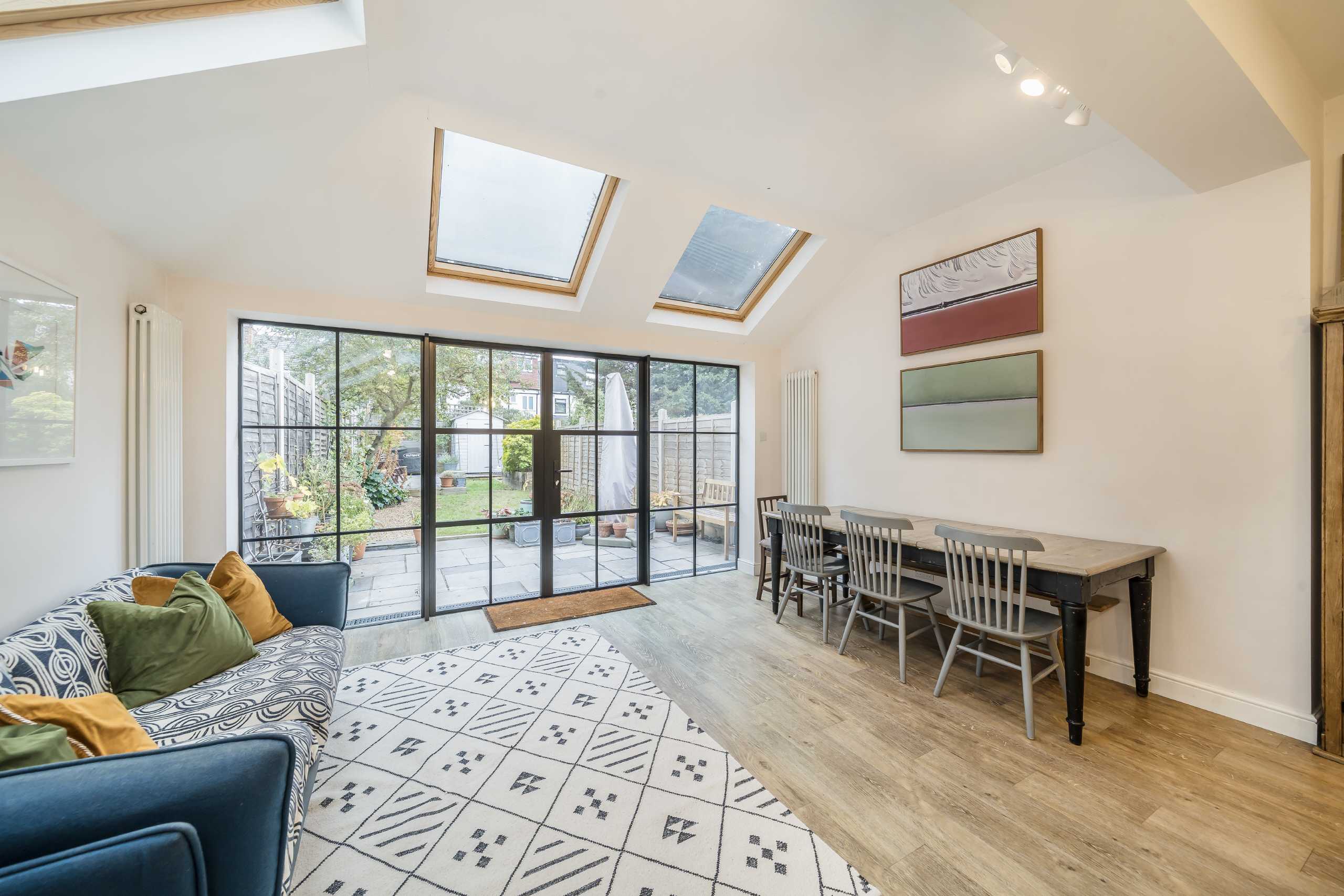 This stunning five-bedroom family home offers a perfect blend of space, style, and modern living. The ground floor features a large double reception room leading to a practical utility room and downstairs WC, which flows seamlessly into the impressive open-plan kitchen and dining area. The kitchen boasts a generous island and has been beautifully extended with a side return and rear extension, showcasing elegant crittall-style doors that open onto a spacious, garden ideal for entertaining and family living.