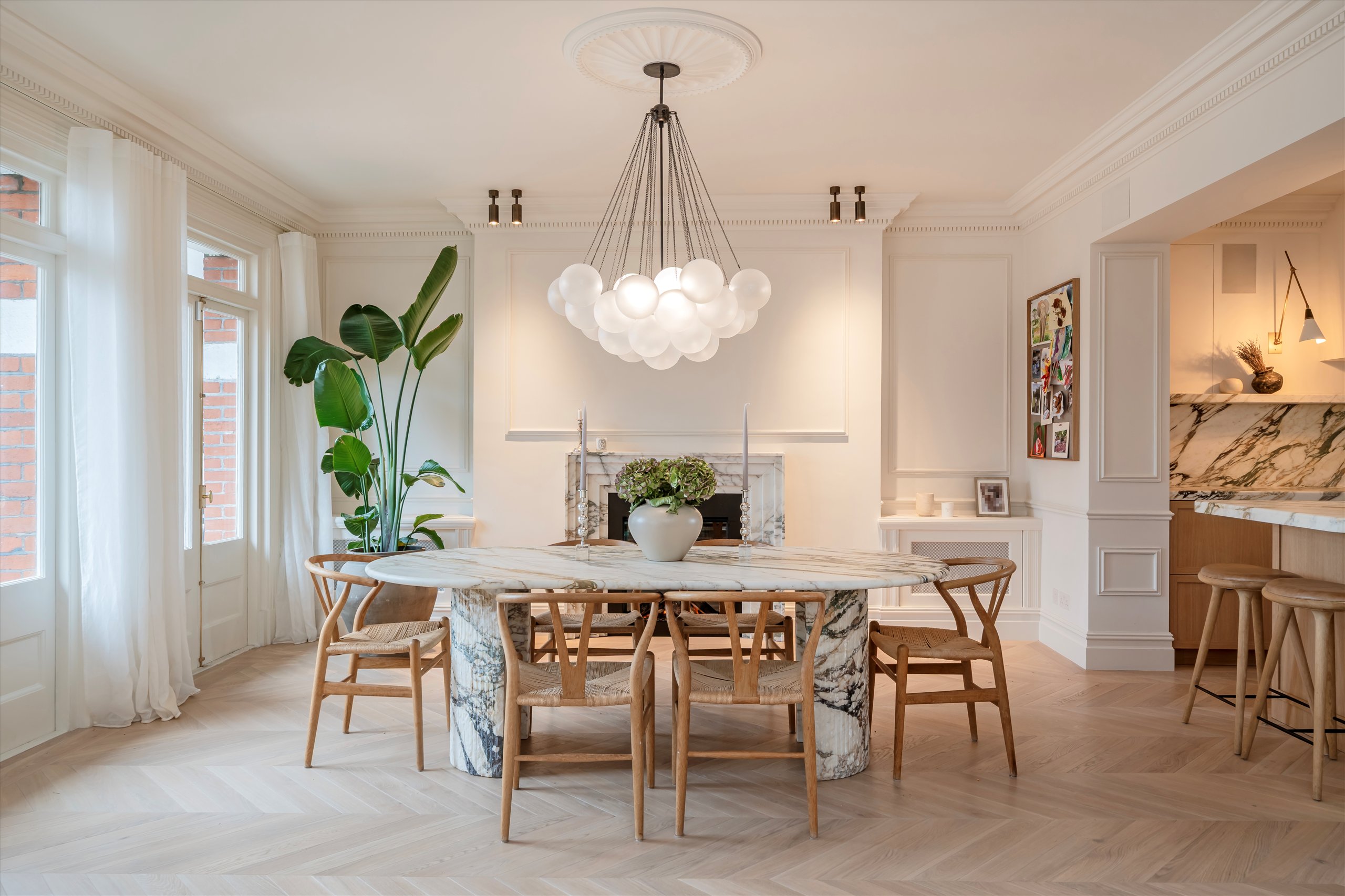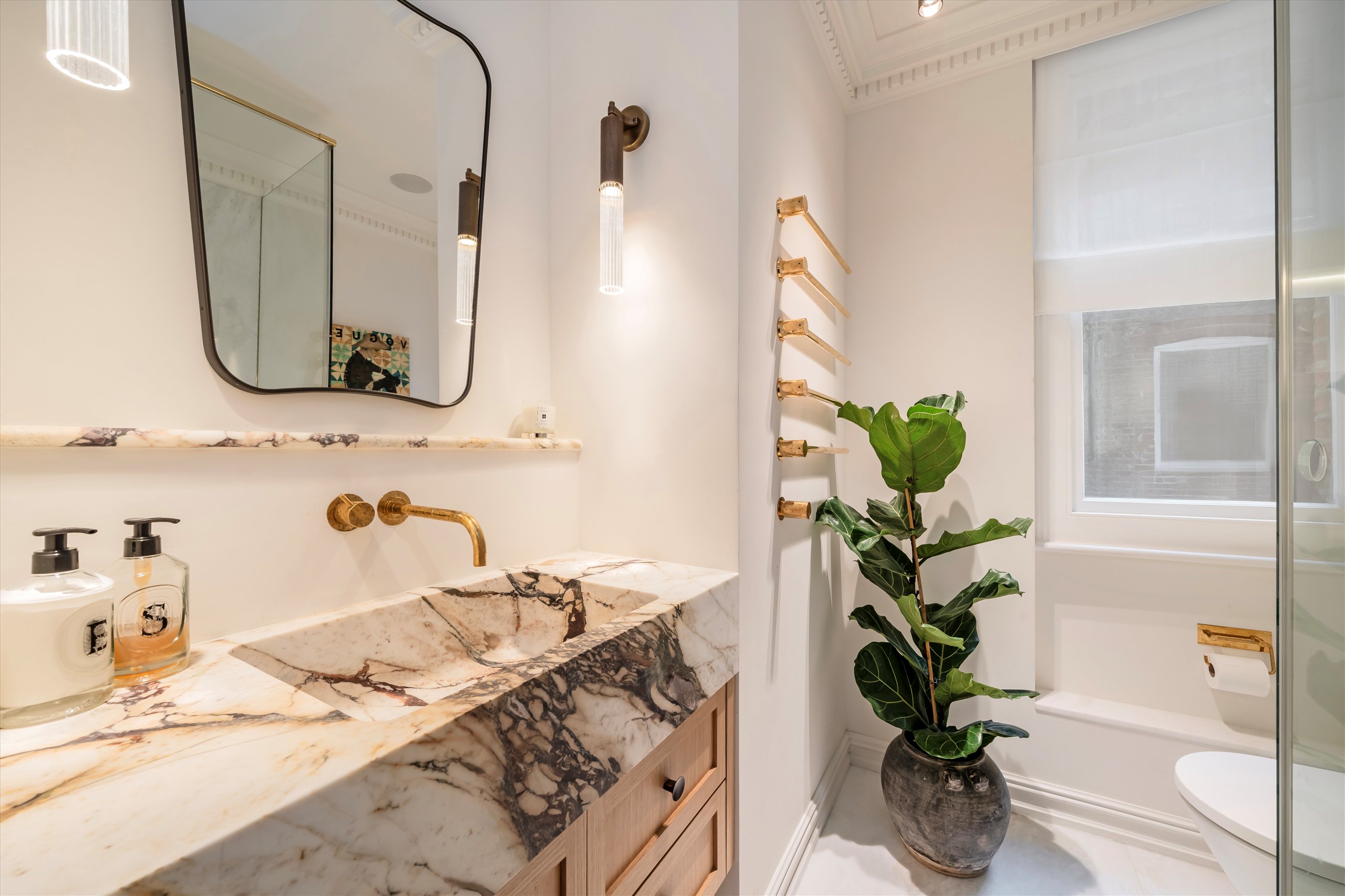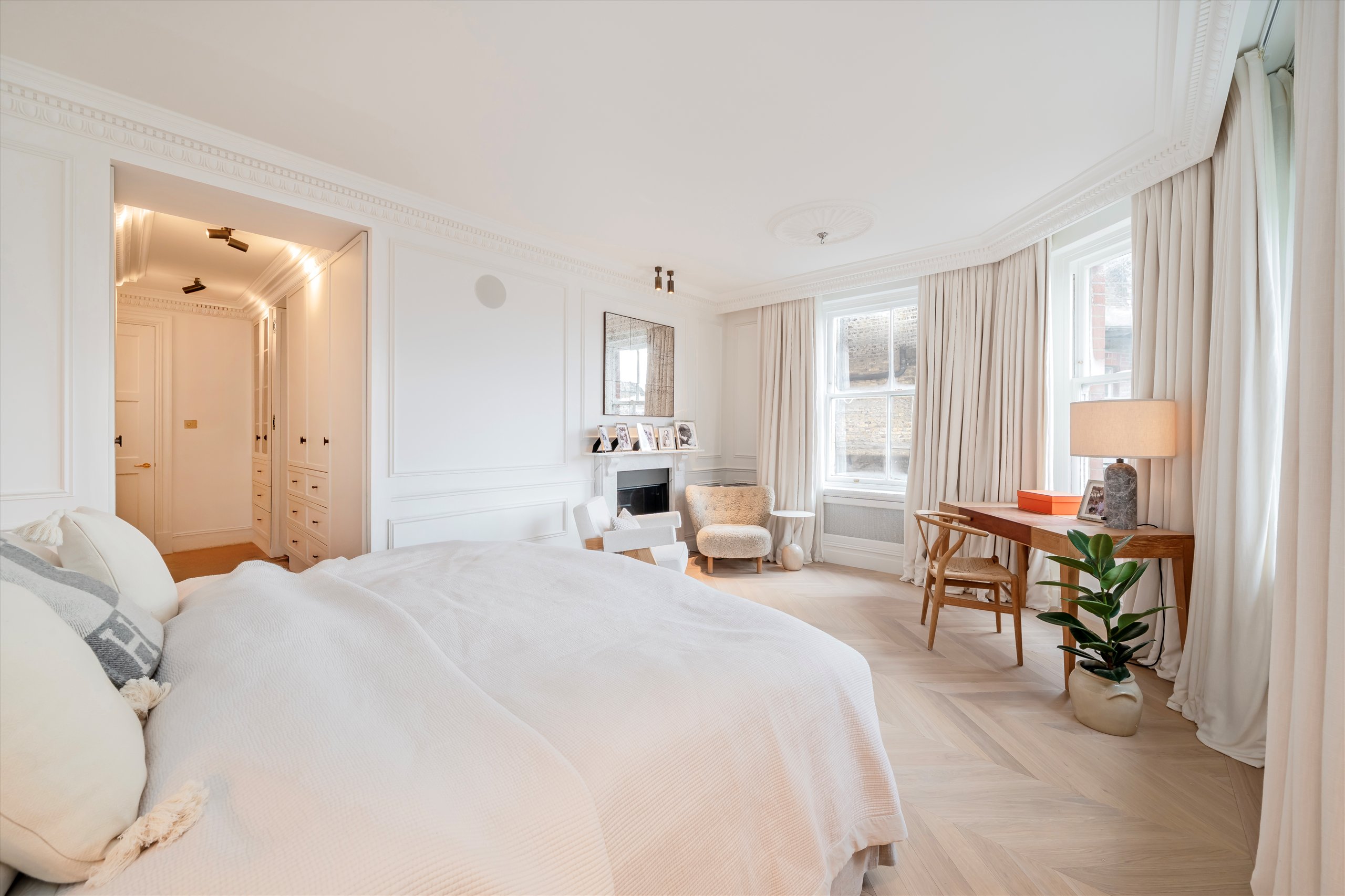 The large principle suite benefitting from bespoke joinery, large south-west facing bay window is expertly designed and generously proportioned. The luxurious Ensuite, like the others, are distinguished by hand-selected Italian marble, lending a sense of understated opulence throughout.