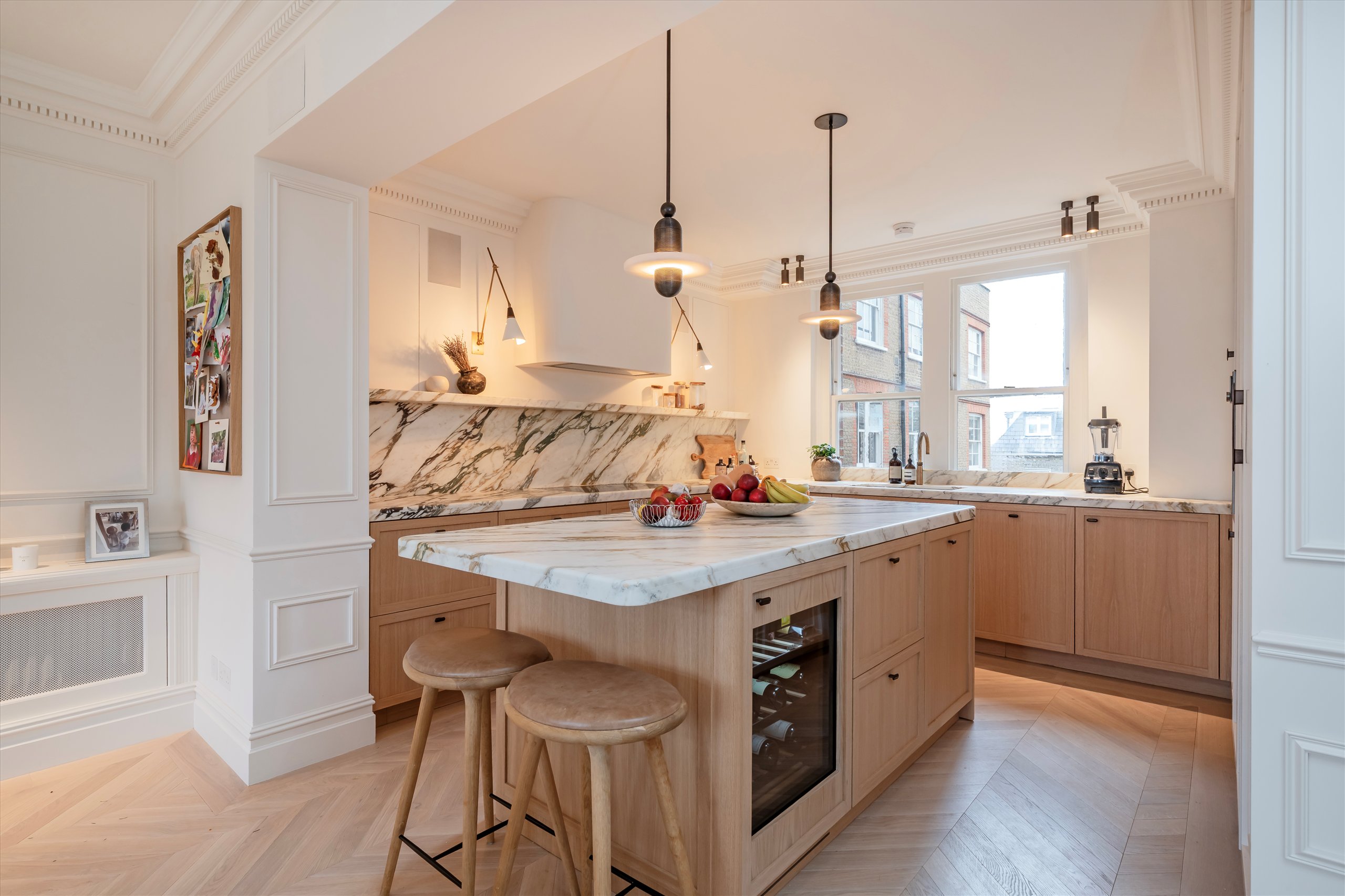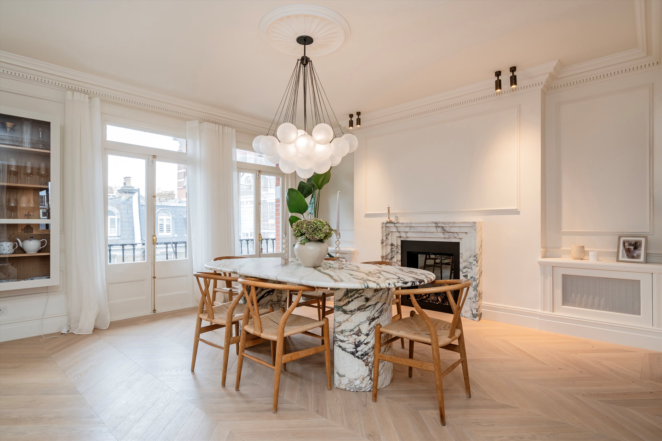 Set on the third floor (with Lift) of an imposing red-brick Victorian mansion block, this exceptional four-bedroom, three-bathroom residence (including two beautifully appointed en suites) offers over 1,850 sq ft of refined, contemporary living. Recently reimagined from the ground up, the home balances the timeless grandeur of its period architecture with the clean lines, warmth, and tranquillity of modern Scandinavian design.