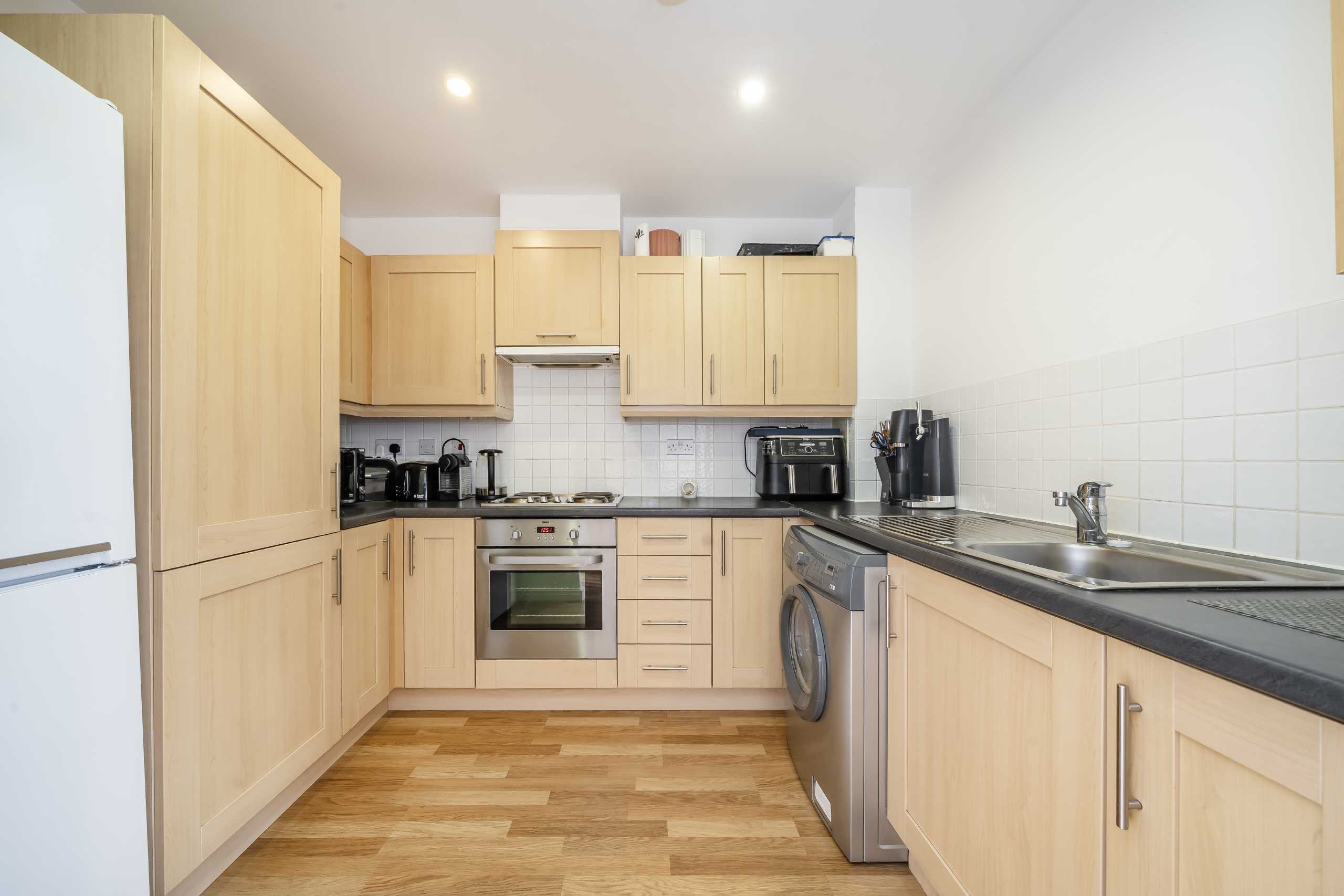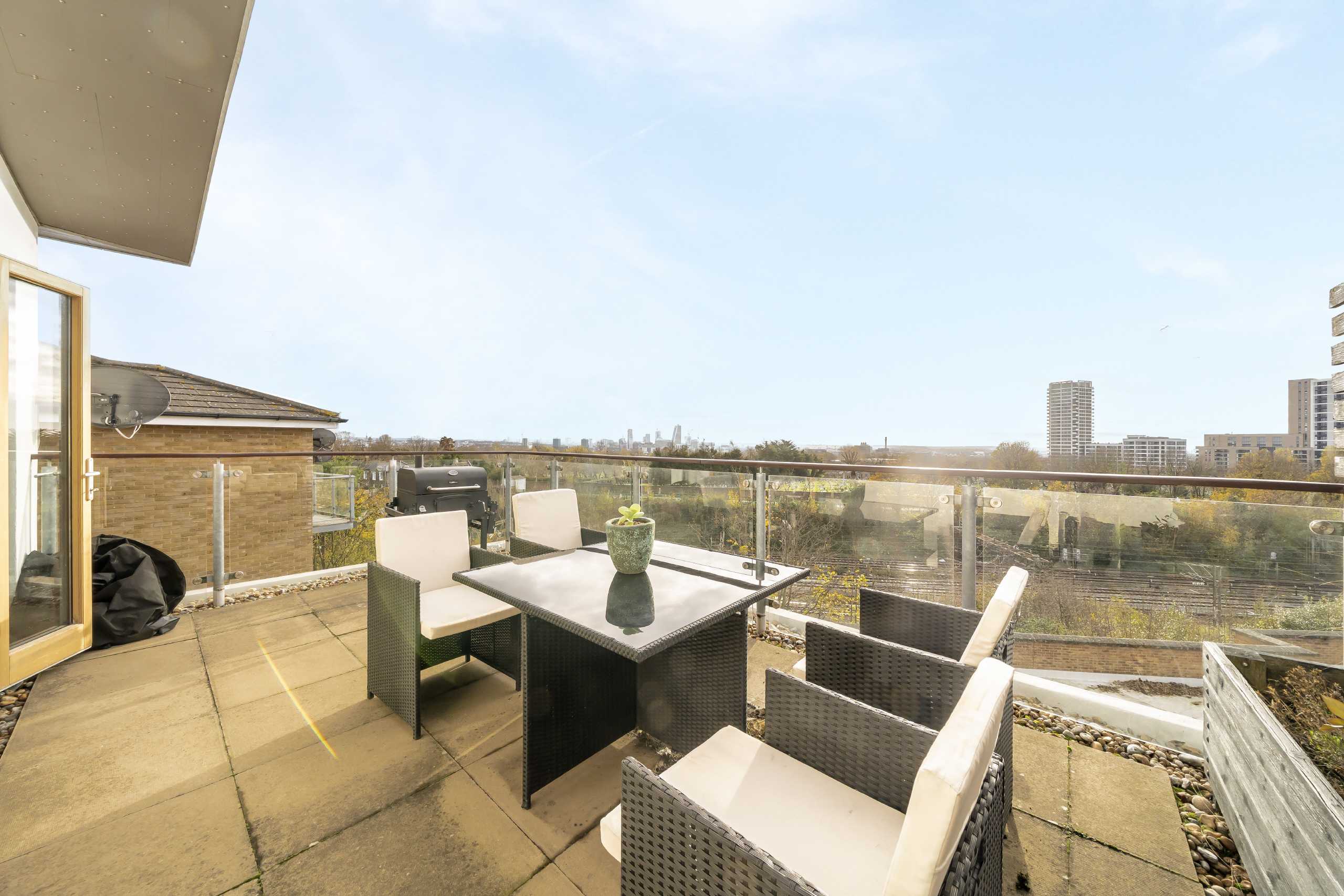 A bright, chain-free one-bedroom top-floor apartment offering a stylish open-plan living/dining area and direct access to a south-facing roof terrace, located in the heart of Kensal Green.