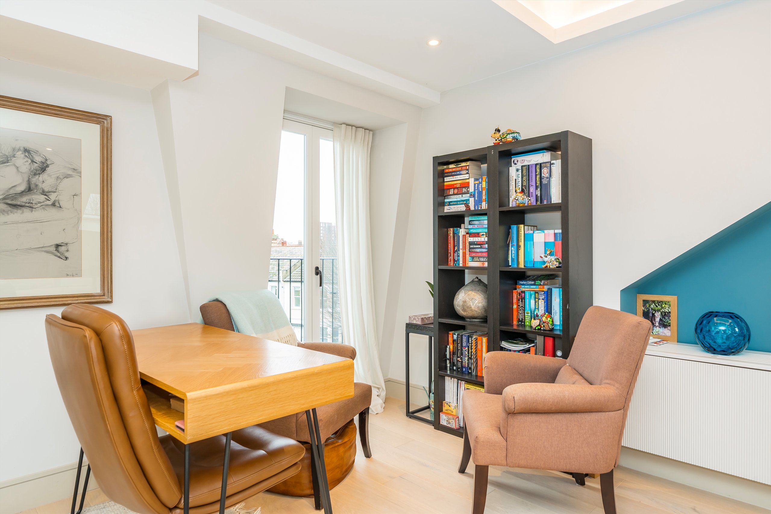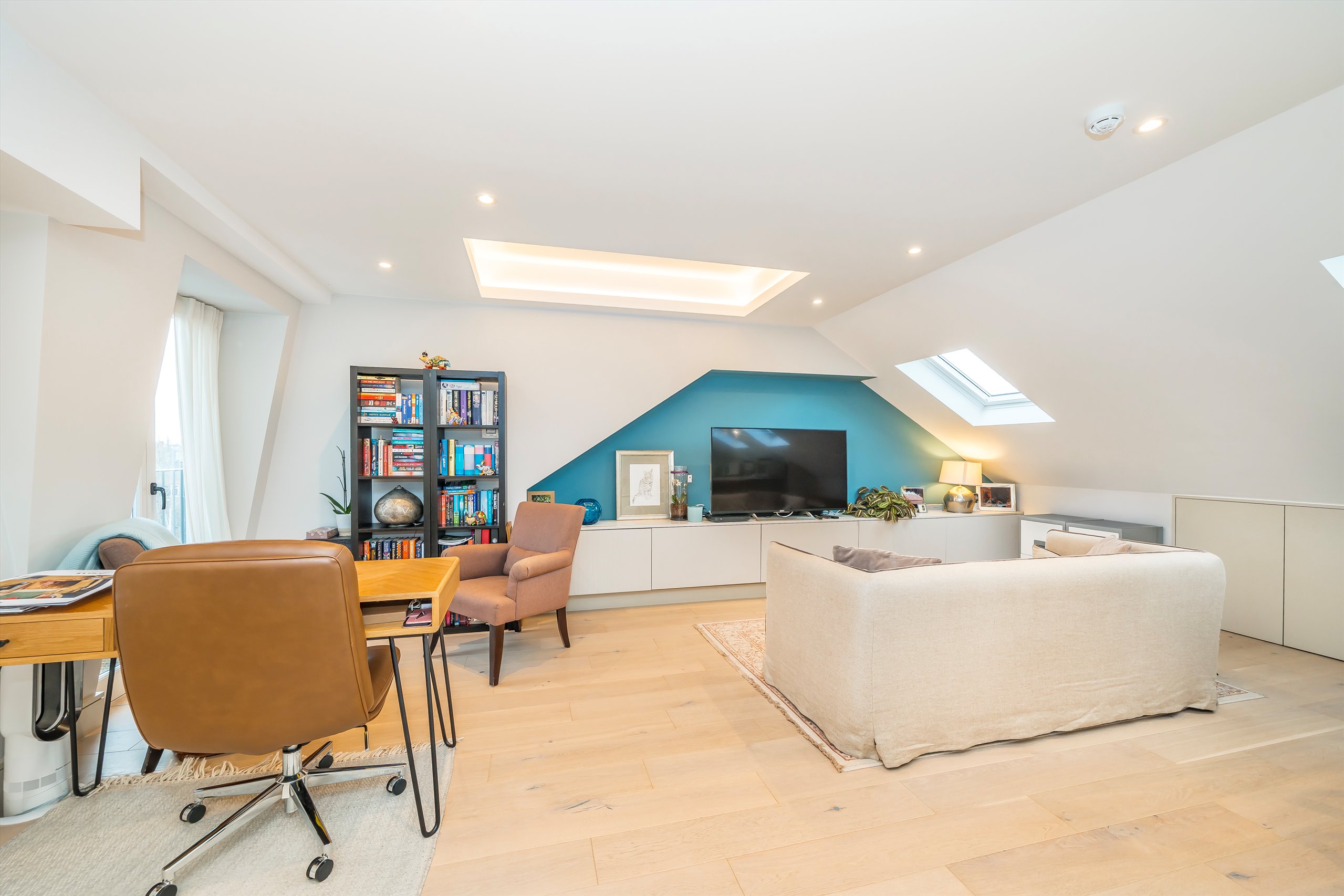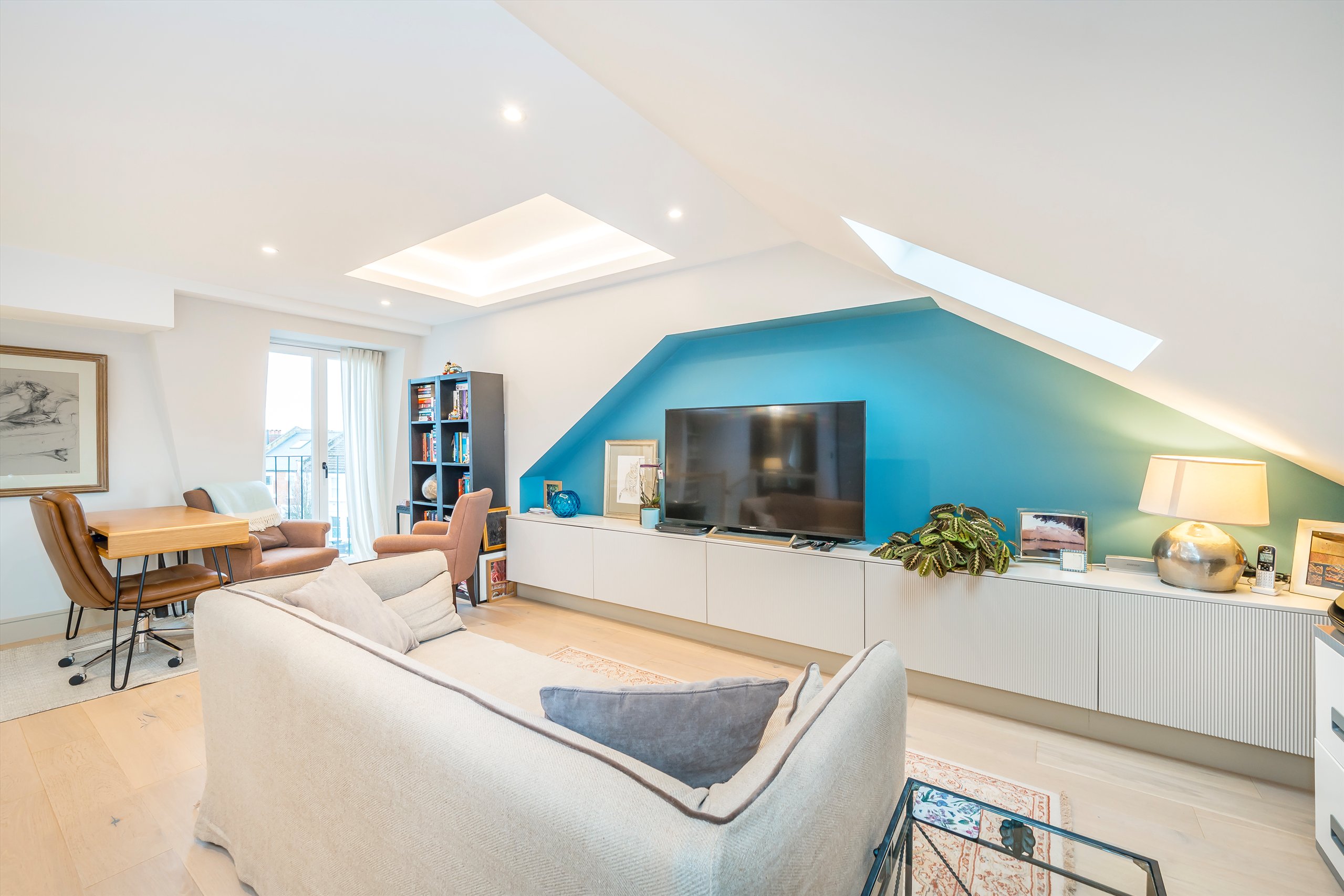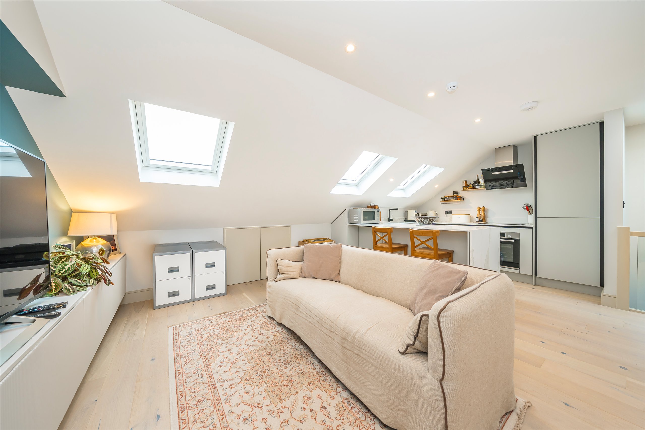 A beautifully finished one bedroom, top floor conversion apartment that is bright and airy throughout. Rebuilt in 2023, the flat feels modern, comfortable, and thoughtfully designed, with stylish feature lighting, underfloor heating, air conditioning, double-glazed windows, a video entry system, and a Juliet balcony to the rear.
