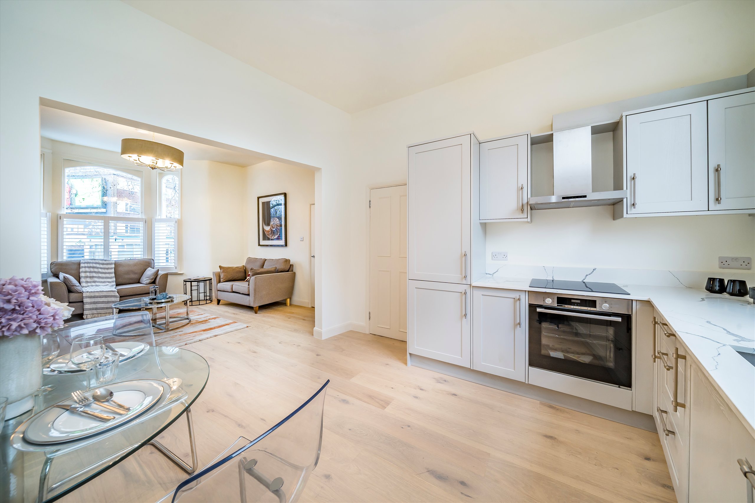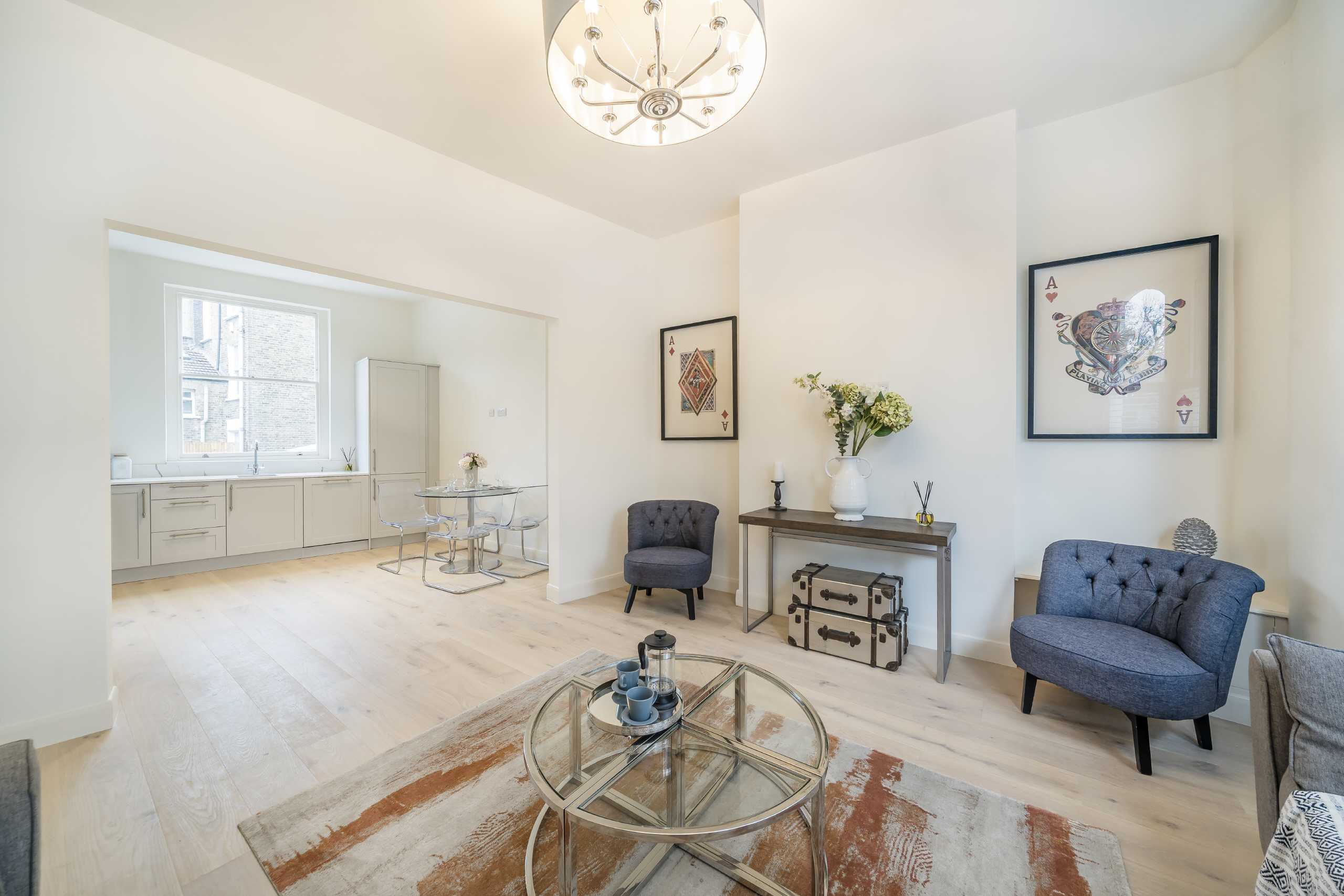 A superb example of a refurbished split-level period garden flat occupying both the lower ground and ground floor of a handsome Victorian building spanning just shy of 950 sq ft offering two large double bedrooms, two bathrooms, an open plan kitchen-reception space and a rare and exceptionally large private South-West facing garden. Offered to the market chain free with a brand new 150 year lease and no ground rent.