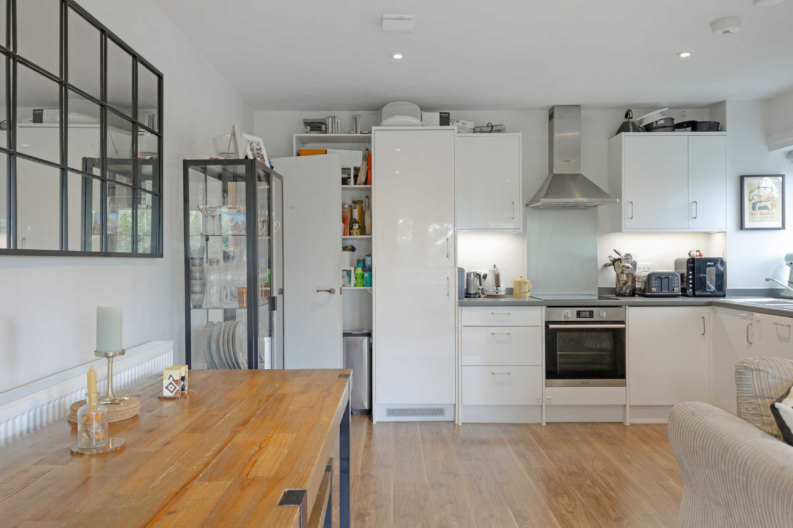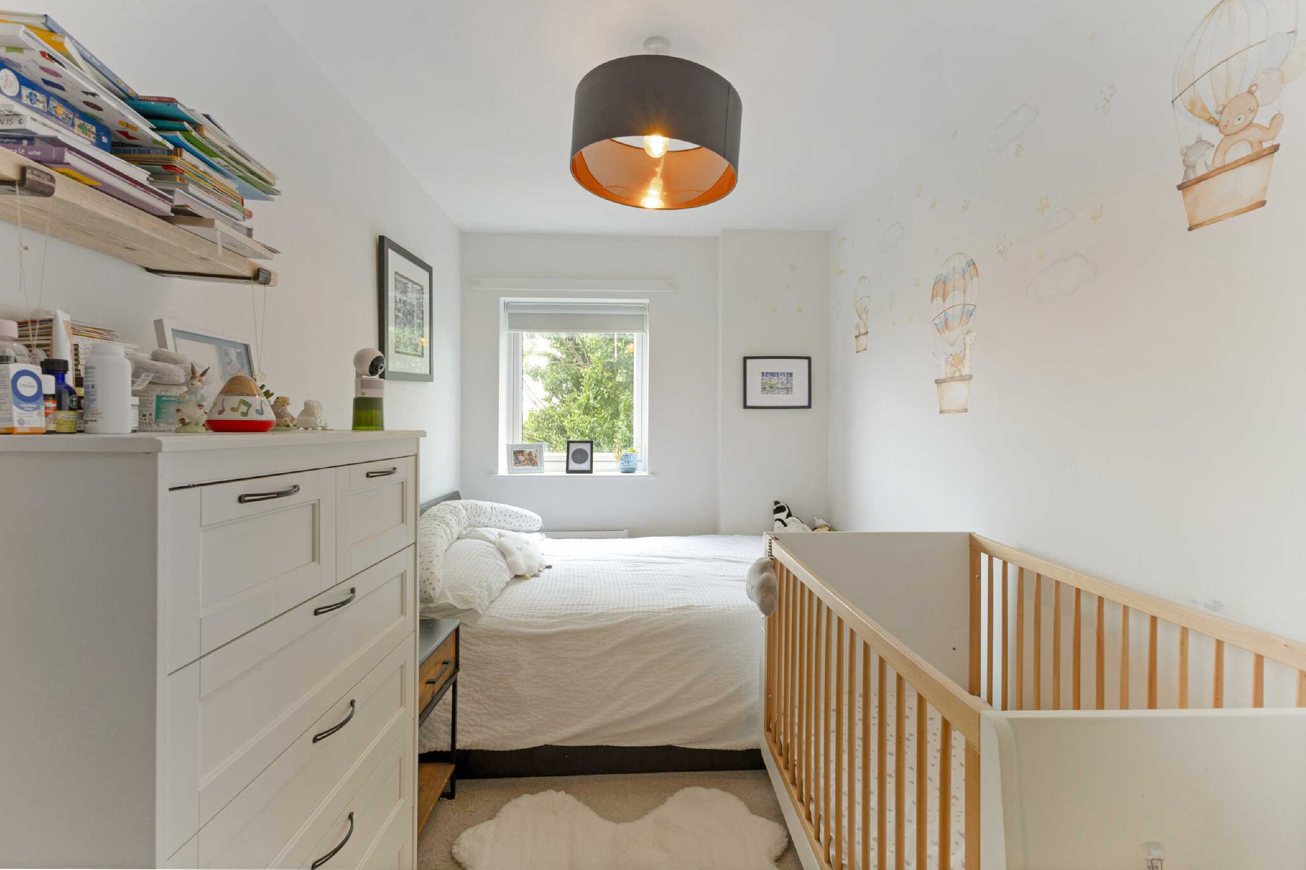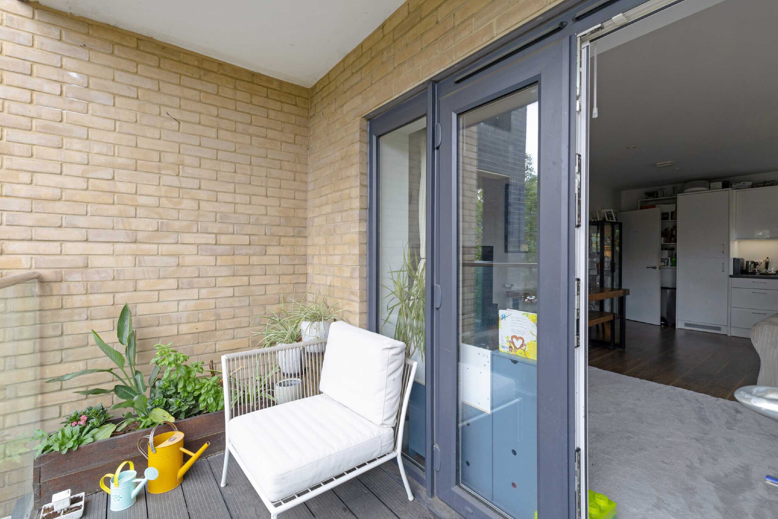 Located on the second floor, this apartment comes to the market in pristine condition. There are two double bedrooms, one of which benefits from an en-suite bathroom. The second bedroom is also the ideal space for a home office or nursery. The open plan kitchen/dining room has wooden flooring and plenty of windows allowing light to flood the interior and the kitchen comes fully fitted. Double doors lead out towards the private balcony which has enough space for outdoor seats. There is a family bathroom complete with a shower over the bath and the property has plenty of storage space throughout.