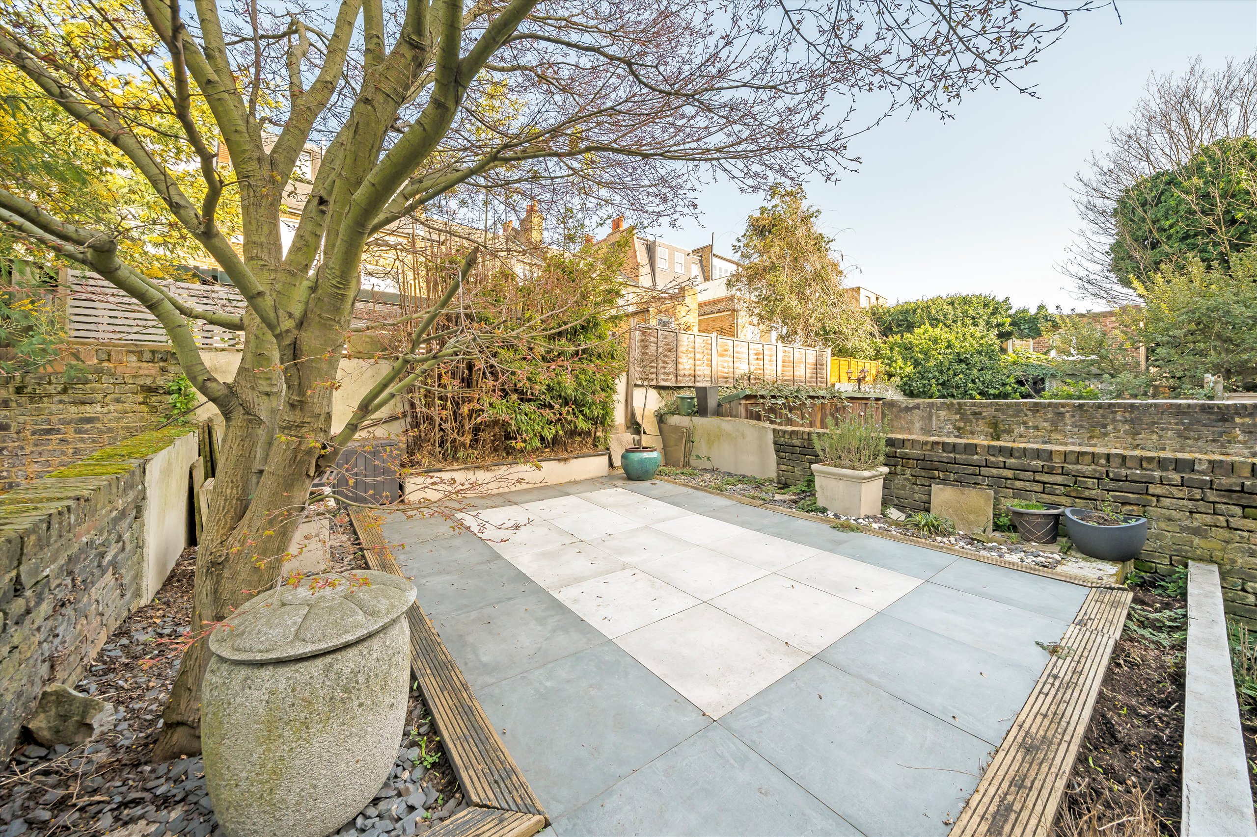 One of the standout features of this property is the impressive private garden which has been thoughtfully designed and offers ample space for outdoor dining. The garden also boasts a unique water feature, adding a serene and distinctive touch.