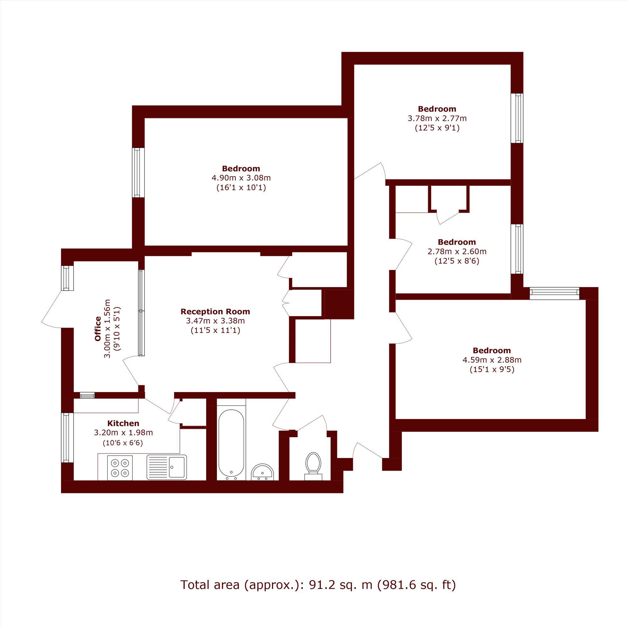 Ideally located with exceptional amenities just moments away, this property offers bright, spacious living throughout. It features four bedrooms, a kitchen, separate reception, bathroom, naturally bright office space and direct access onto a large South-West facing communal garden. Additional features include a large private storage/bike locker and off-street parking.