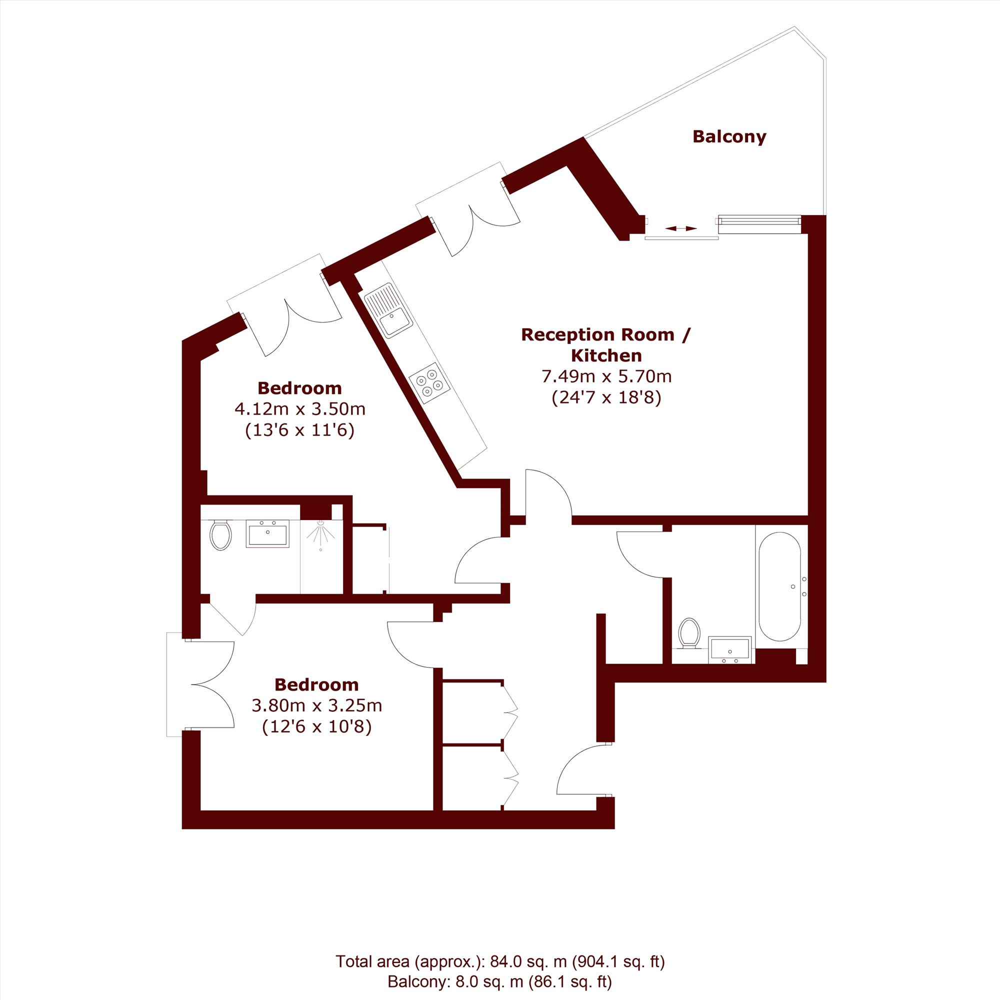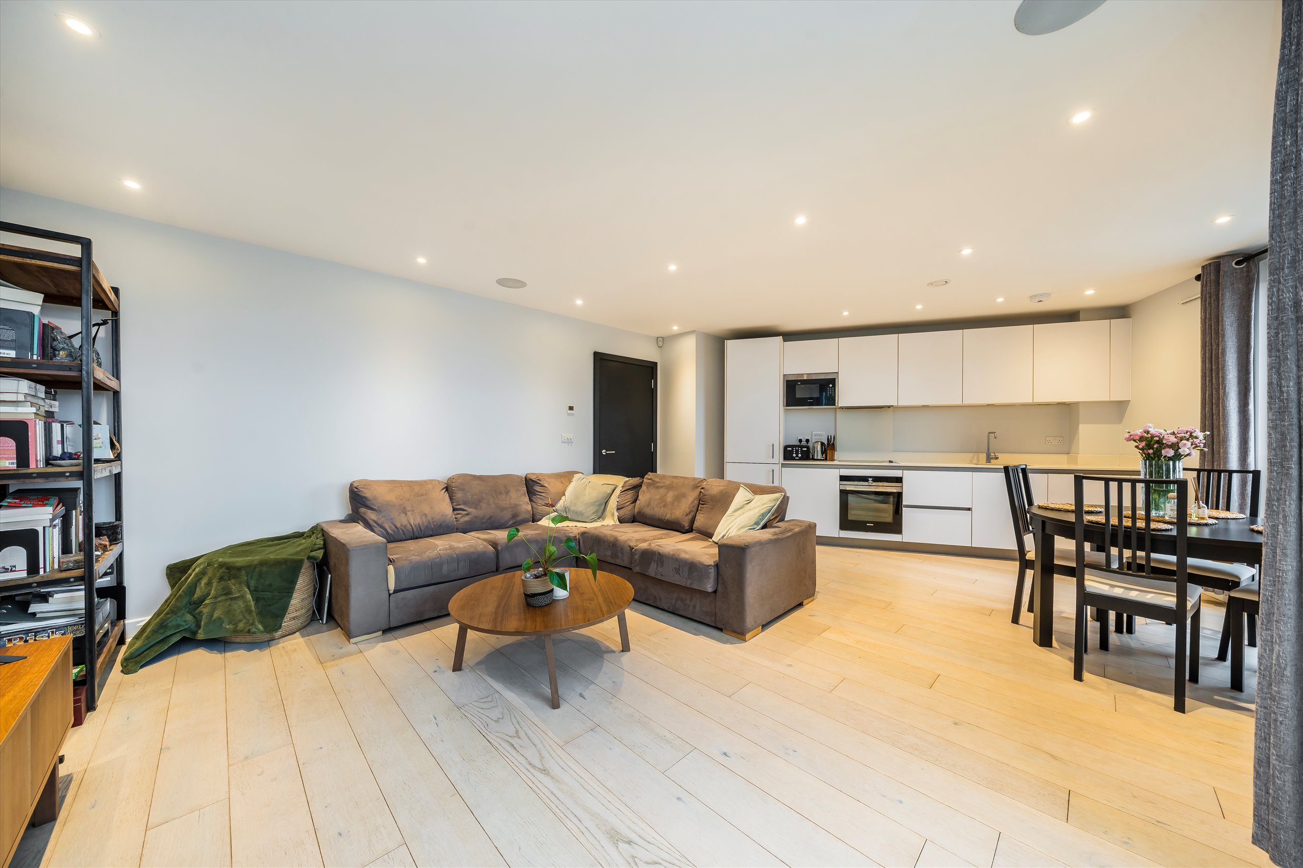 This bright and well-designed, two bedroom, two bathroom second-floor apartment offers a generous open plan kitchen/reception room with balcony and is sold with no onward chain.