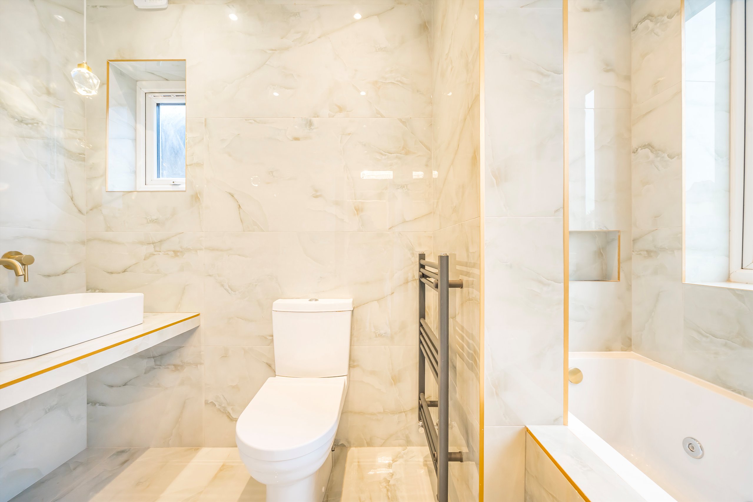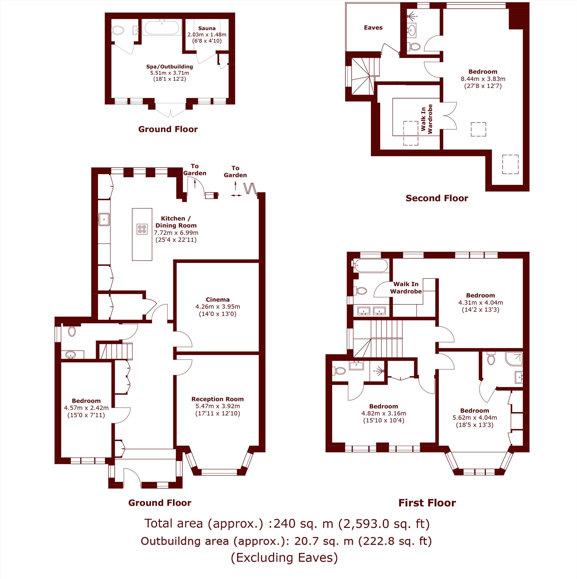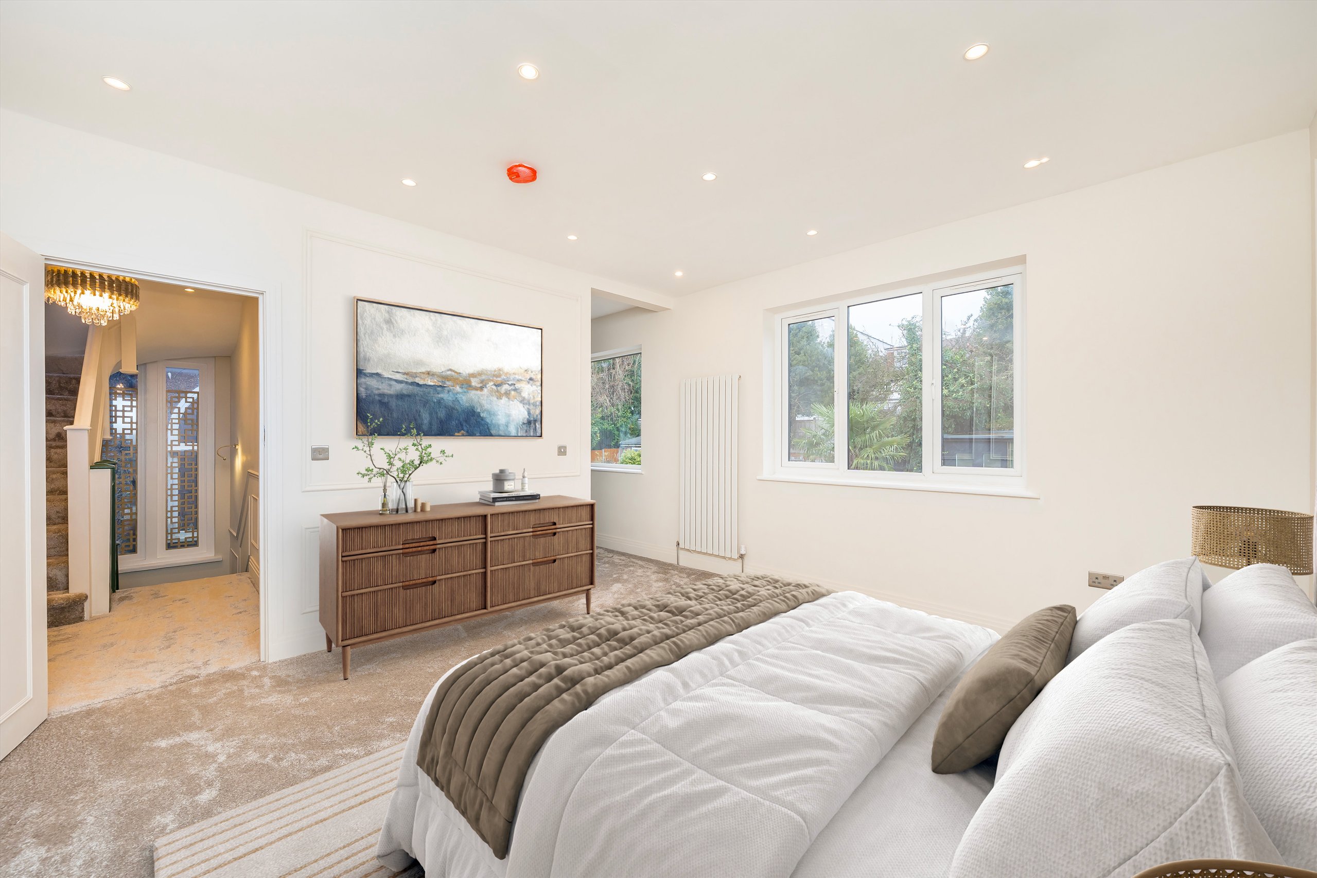 This immaculately refurbished, four-bedroom semi-detached house is arranged over 2,593sqft and comprises a separate reception room, cinema room, study, spacious kitchen/diner with bifold doors leading out to a fully landscaped garden with water feature and LED lighting, an outbuilding with sauna, which creates an ideal gym/wellness space, a ground floor WC and four bedrooms with four en suite bathrooms.