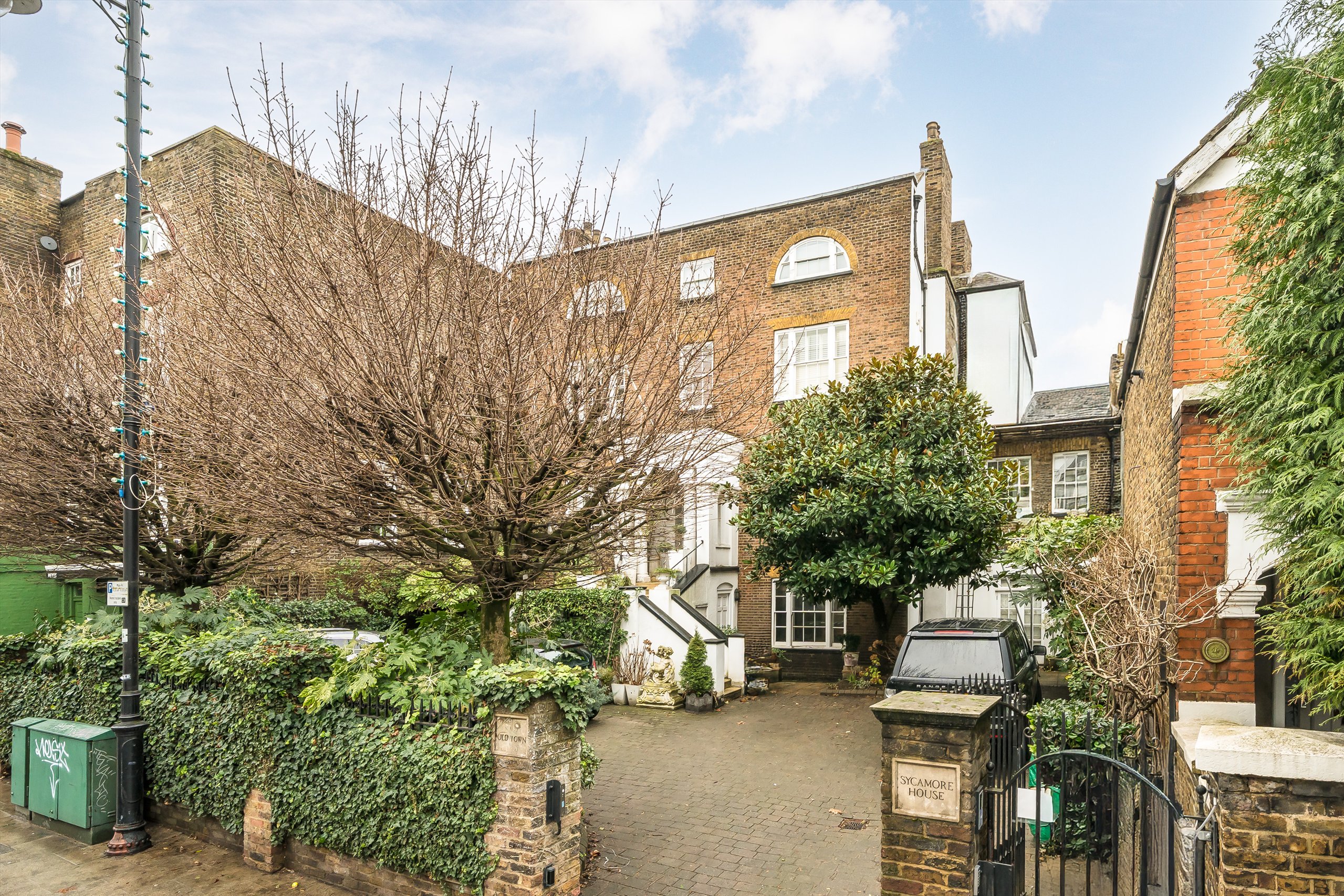 The property is set within a striking double-fronted Georgian building (c.1787), discreetly gated and benefiting from off-street parking, in the very heart of Clapham Old Town. Forming part of the historic Sycamore House, formerly the renowned Sycamore Laundry (est. 1898), a family-run business that operated until 1994 and was awarded four Royal Warrants, this exceptional home occupies part of the raised ground floor of the building.