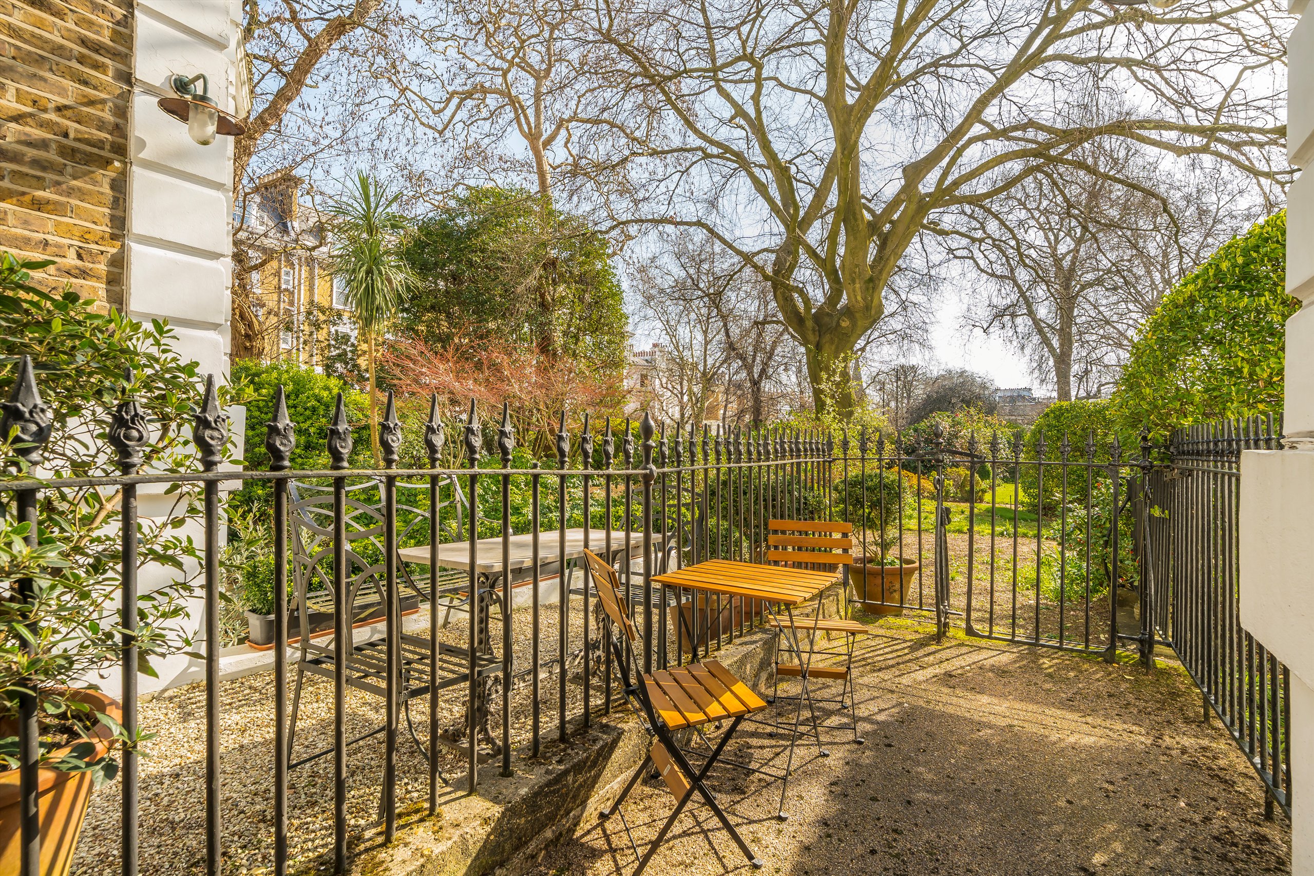 With its combination of scale, period charm, and private patio providing direct access to the beautifully maintained communal gardens, this apartment represents a rare opportunity to acquire a distinguished home in one of the area's most desirable garden squares.