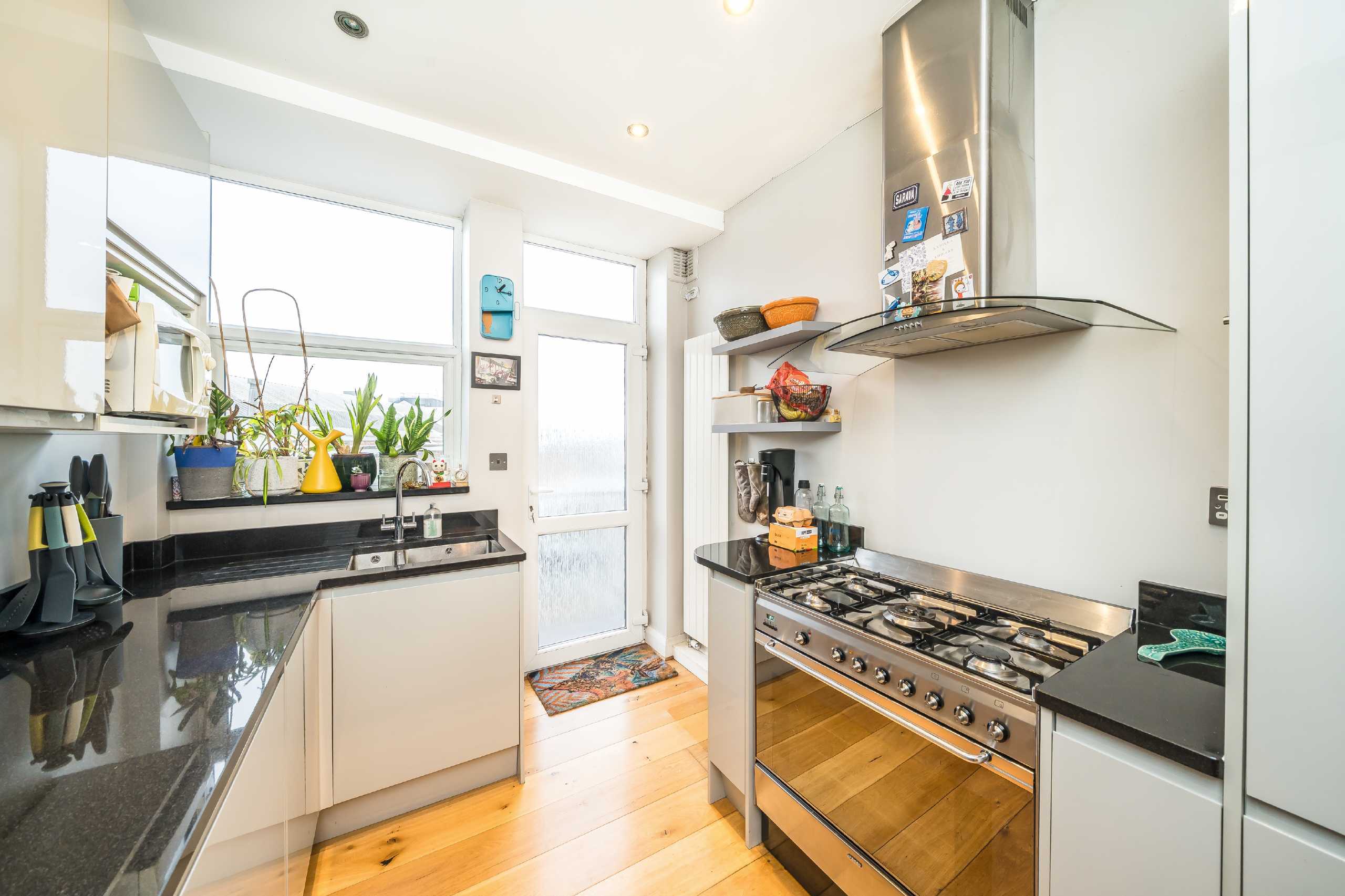 The accommodation comprises a spacious and bright reception room with good ceiling height. There are three double bedrooms, a separate kitchen to living room and the bathroom is modern and once more sizeable. The flat also benefits from a fantastic amount of natural light, and even includes direct access to an outside space found through the kitchen.