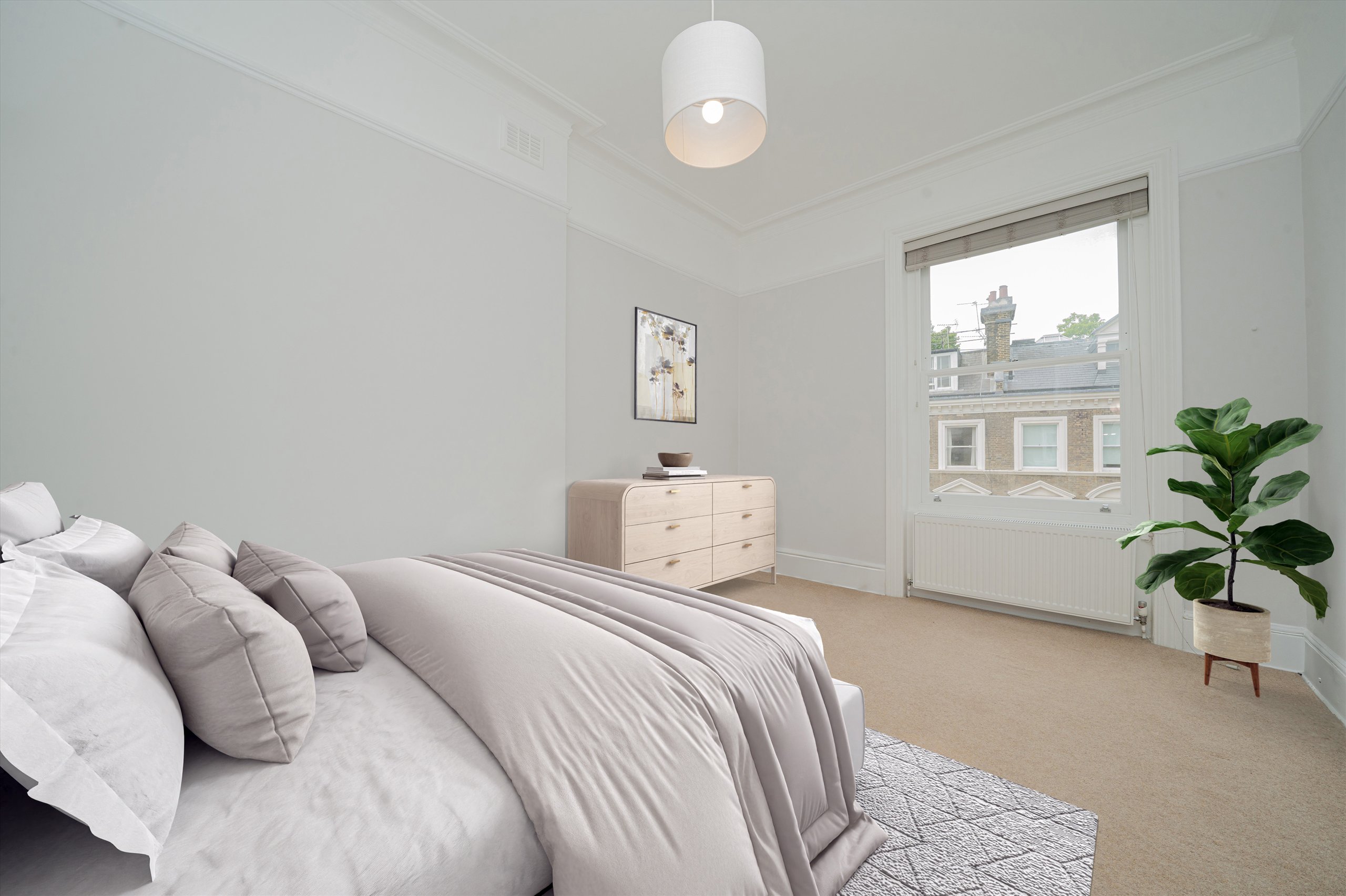 A spacious and well presented, two bedroom apartment on the second floor of a Victorian conversion. There is a west facing reception room, a modern separate kitchen with room to dine, and built in wardrobes and an en suite in the principal bedroom.