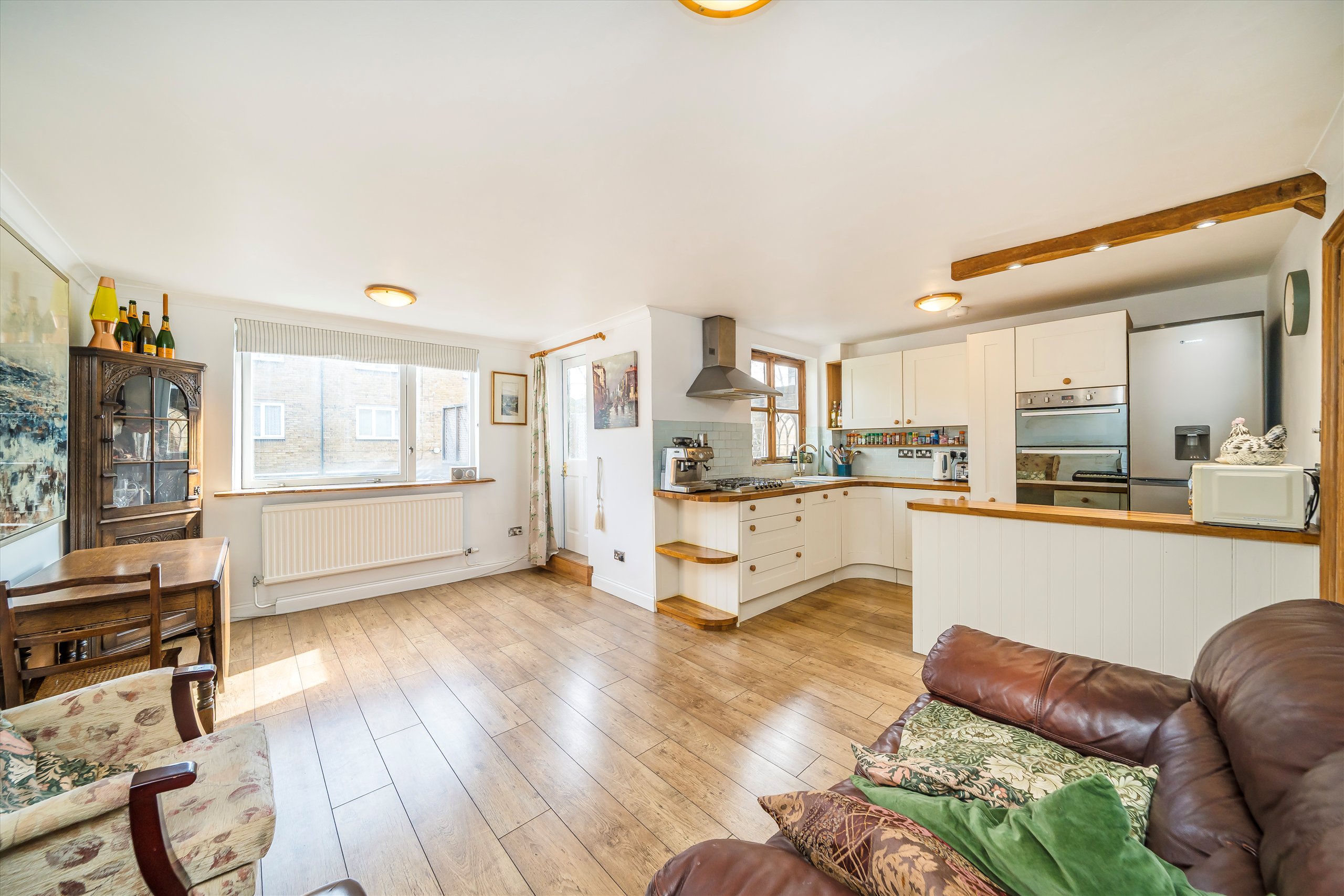 A separate kitchen offers ample storage. Both bedrooms are well proportioned, and the family bath & shower room complete this fantastic home. The property further benefits from a private garage and an extended lease.