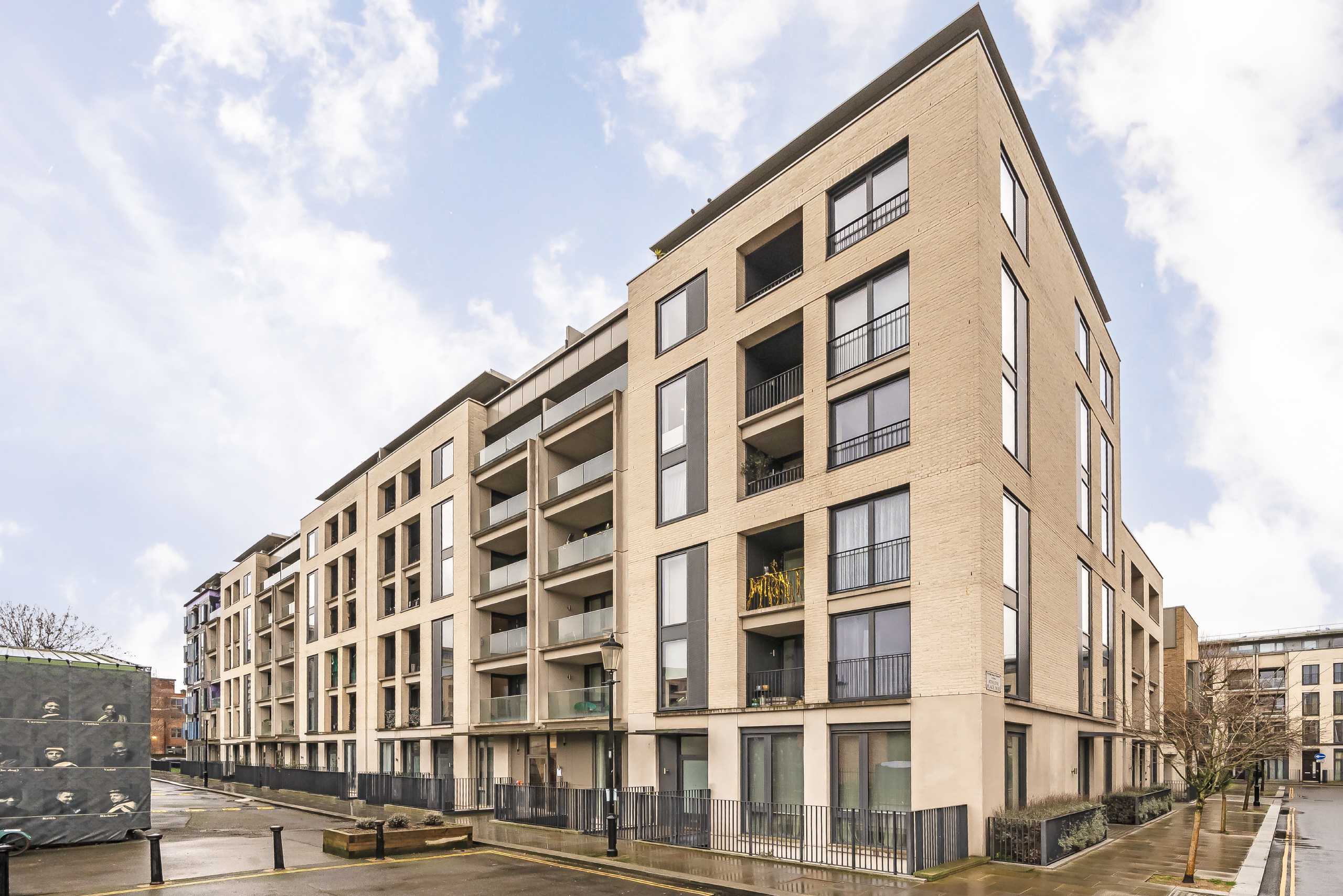 A turnkey two bedroom apartment set within a modern building, offering an open plan kitchen and reception room with floor-to-ceiling windows, a private balcony and external storage.