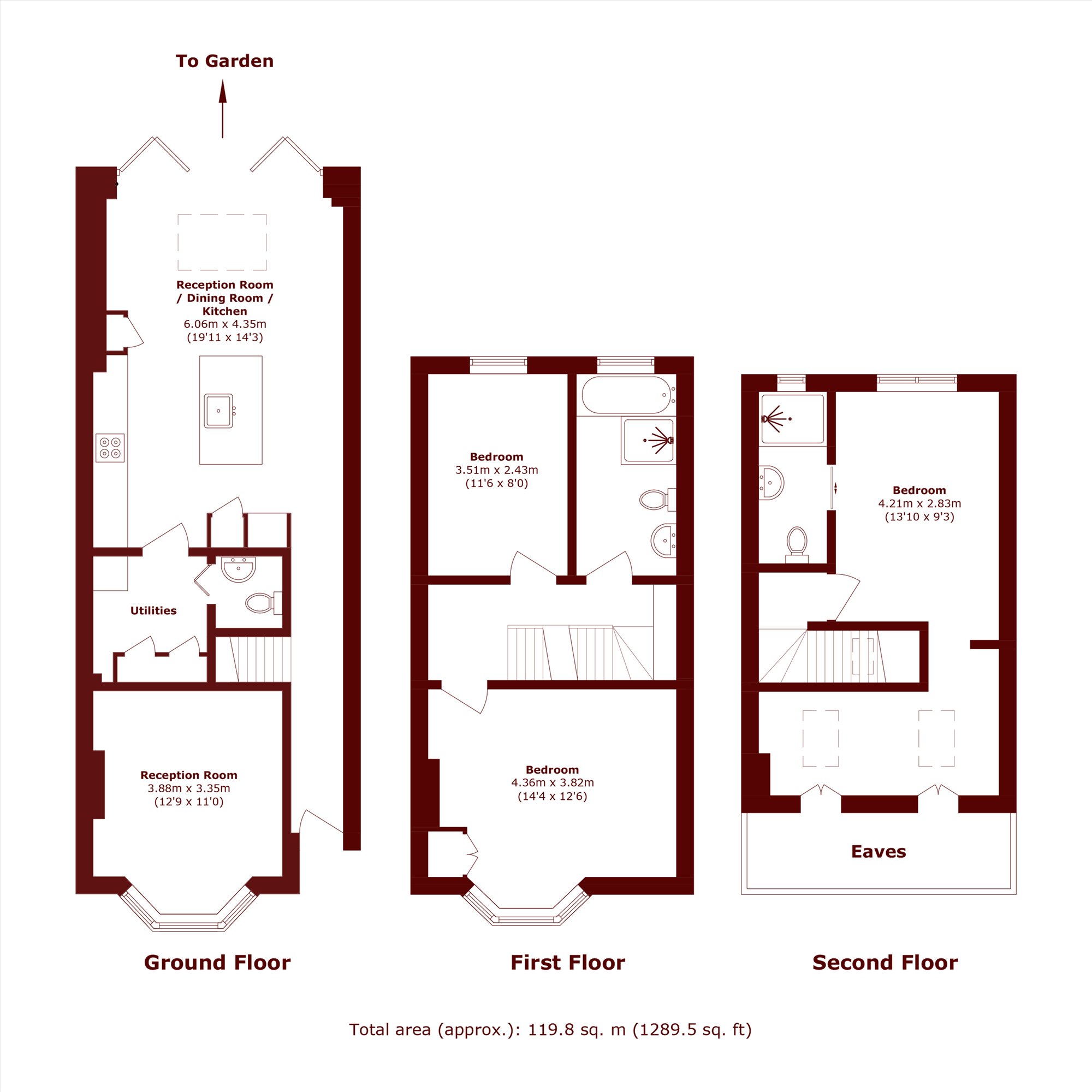 This property comes to the market in pristine condition, spread over three floors and with an ideal blend of period features and modern amenities. The ground floor creates the perfect living space with a reception room towards the front of the property which offers a bay window perfect for allowing natural light. Following this is the incredibly spacious kitchen/dining area which has a fully fitted modern kitchen, a kitchen island, and bi-fold doors leading towards the private garden. Another desirable feature of this property is the separate utility room on the ground floor. Two spacious double bedrooms and a contemporary family bathroom can be found on the first floor and the remaining bedroom occupies the entirety of the third floor alongside an en-suite bathroom.