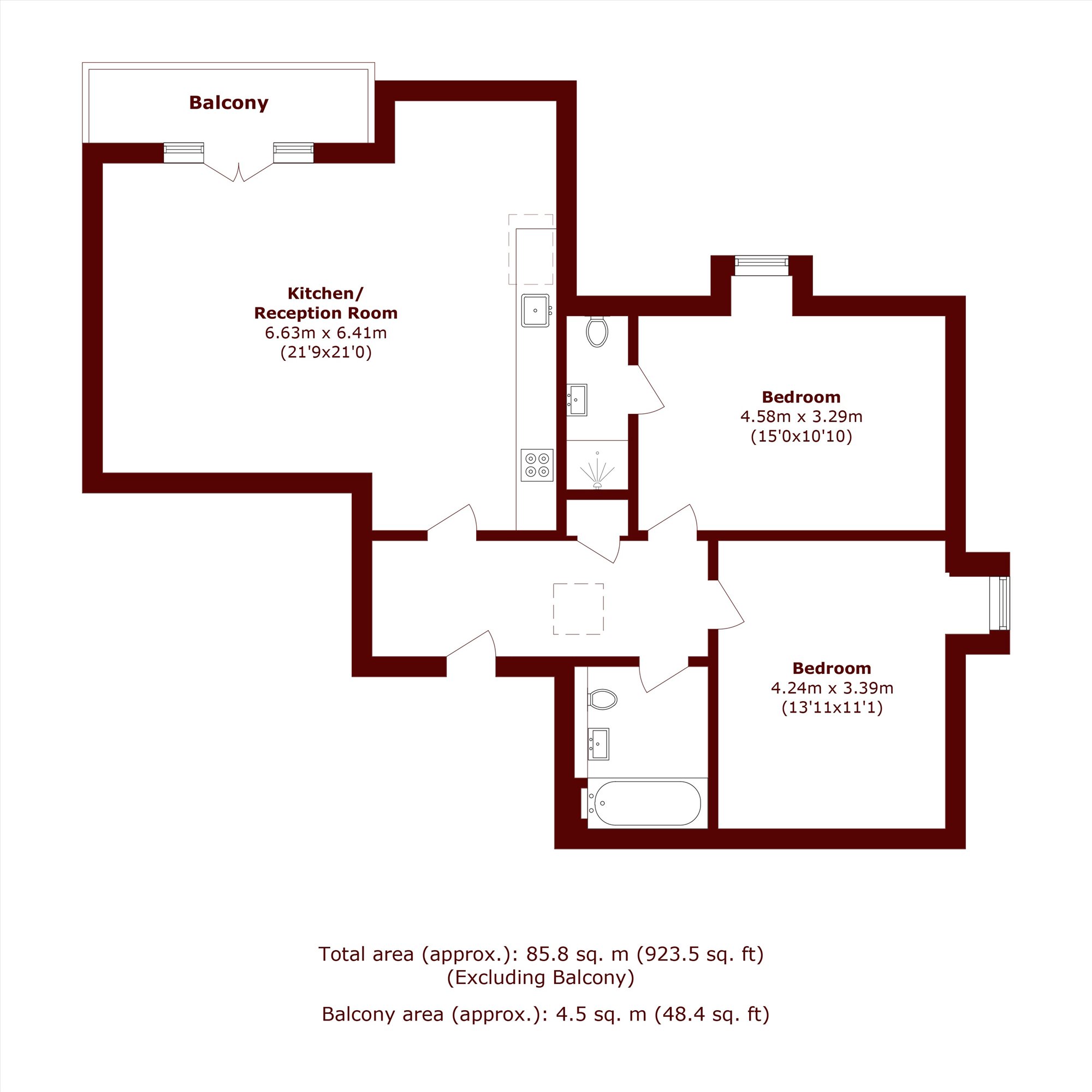 A stunning two bedroom, two bathroom property with it's own private balcony.