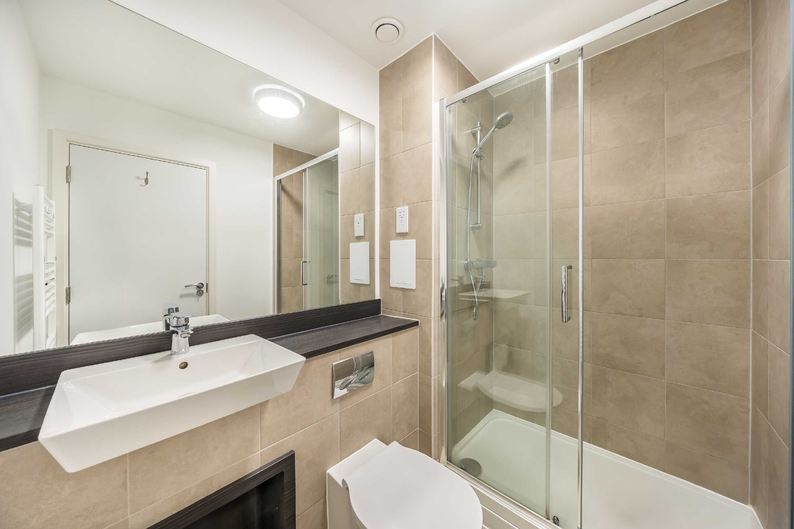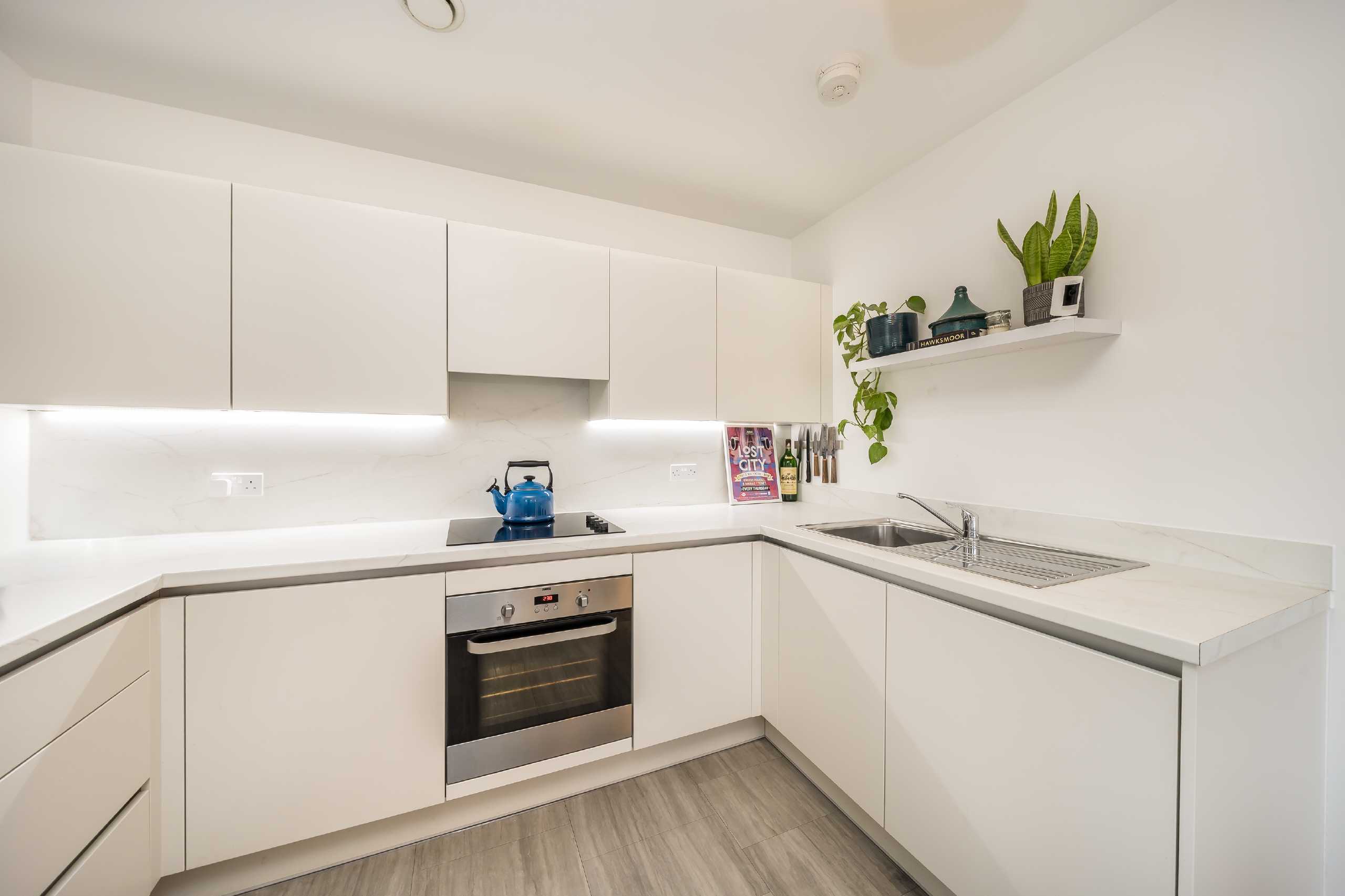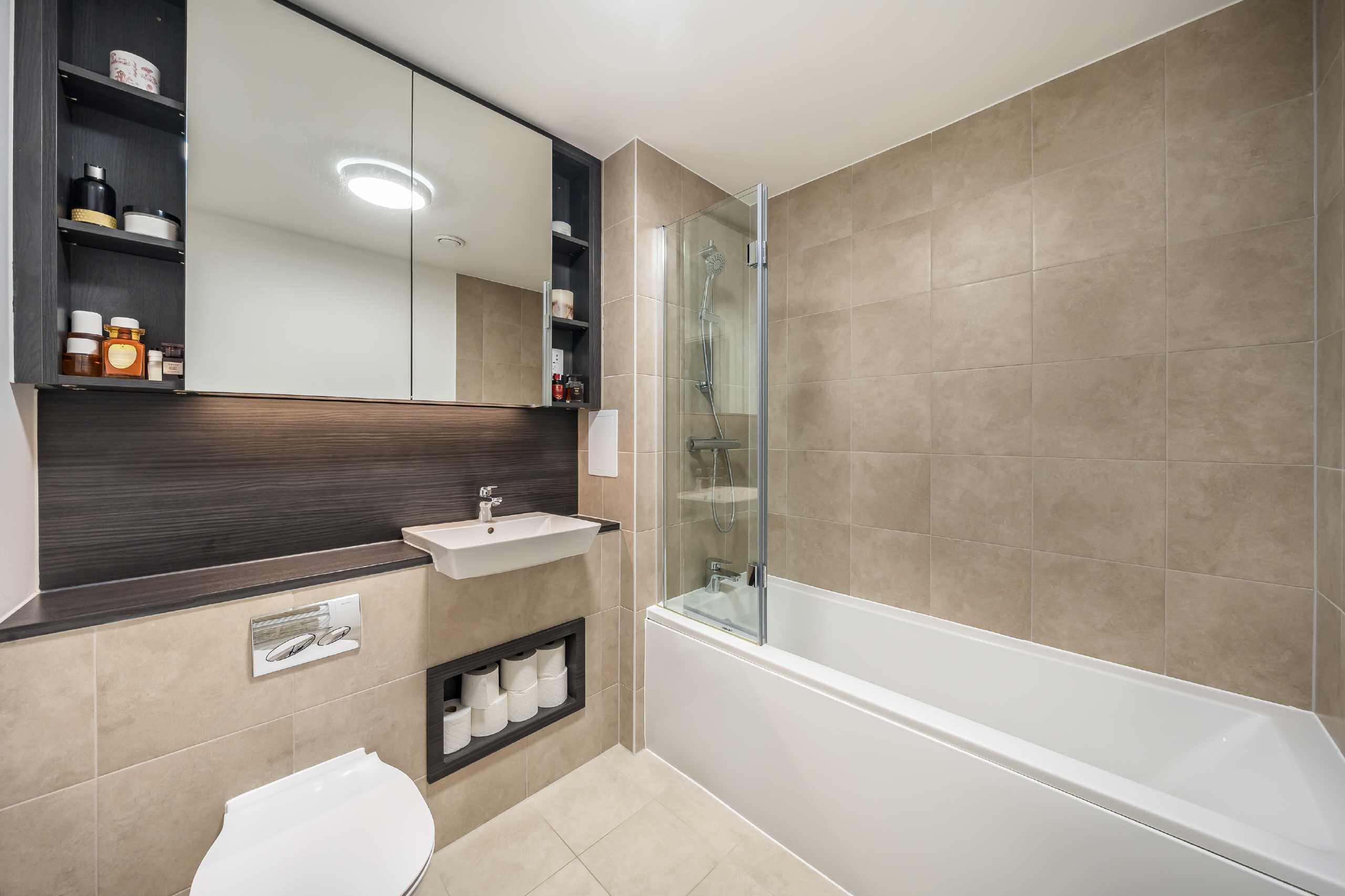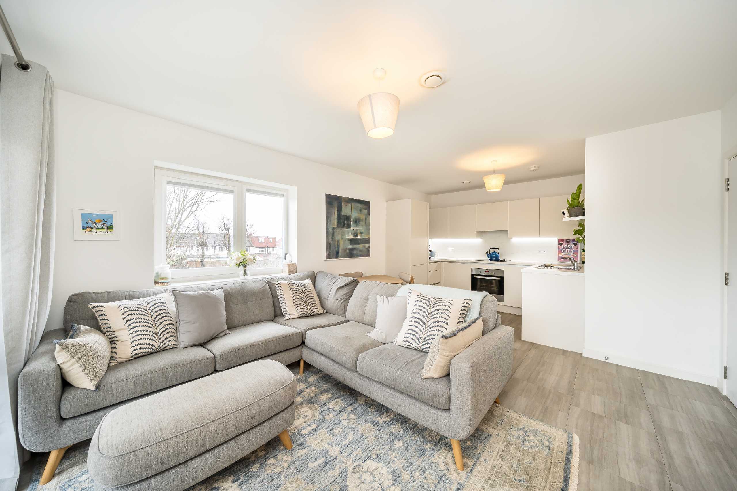 Coming to the market in pristine condition, this flat is in an ideal location and offers a modern interior. It is on the first floor of an apartment building in Tooting and has a spacious interior of 762 sq. Ft. The kitchen/reception area is open plan with the fully fitted kitchen neatly positioned in the corner offering partial separation while maintaining open plan living. A floor to ceiling glass door provides direct access to the private balcony. There are two large double bedrooms, one of which has an en suite bathroom and there is a further family style bathroom complete with a shower over the bath.