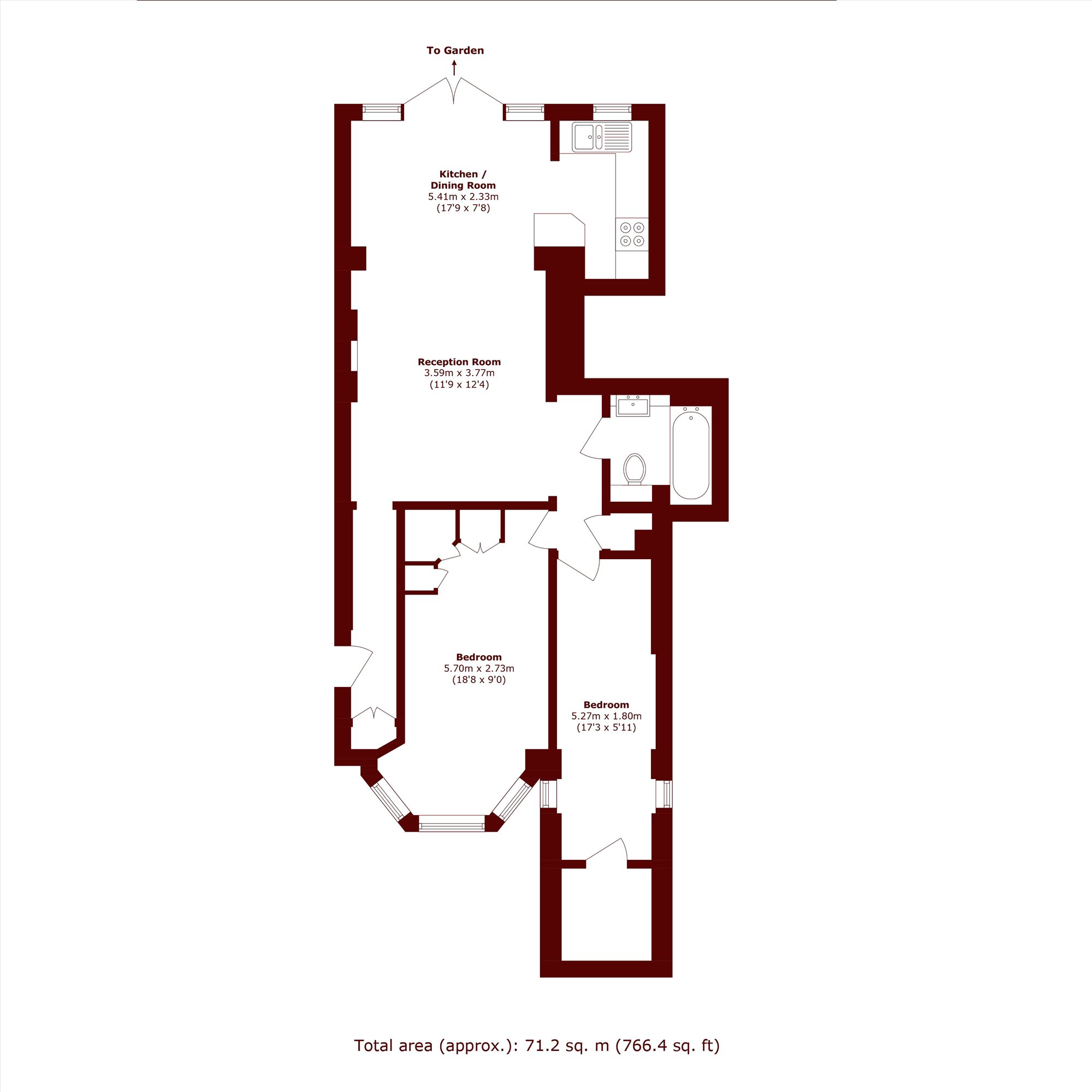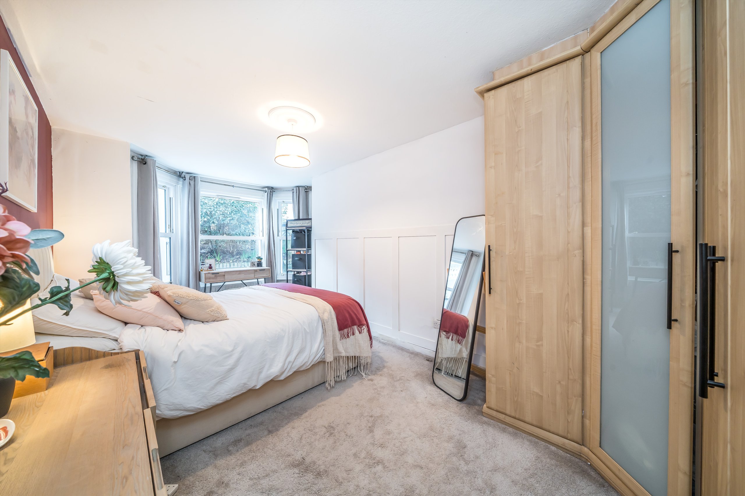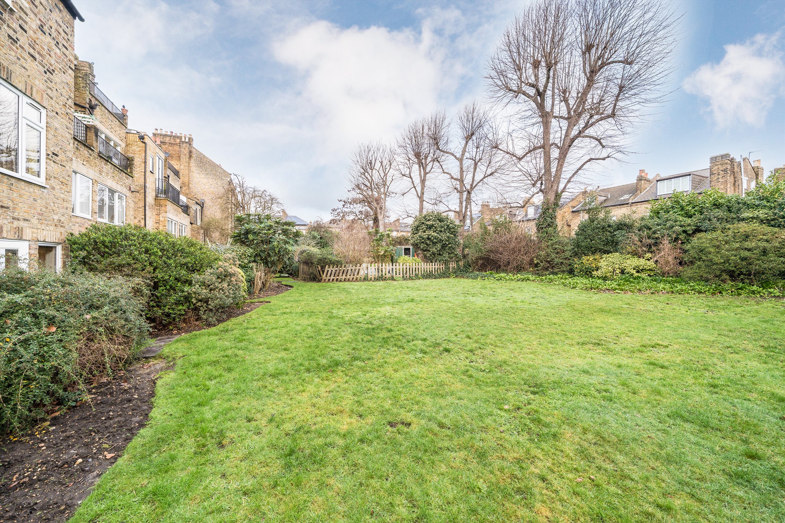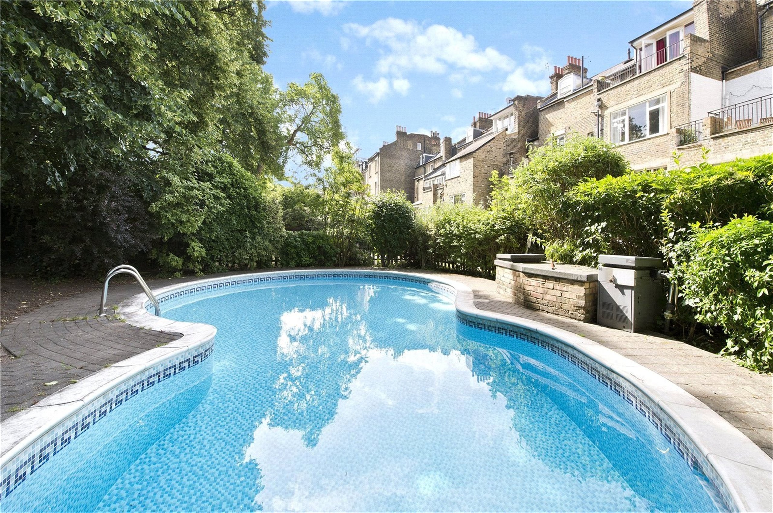 A delightful Victorian conversion flat with private entrance, two bedrooms and generous living space, direct access to residents' gardens with swimming pool and a 163-year lease remaining.